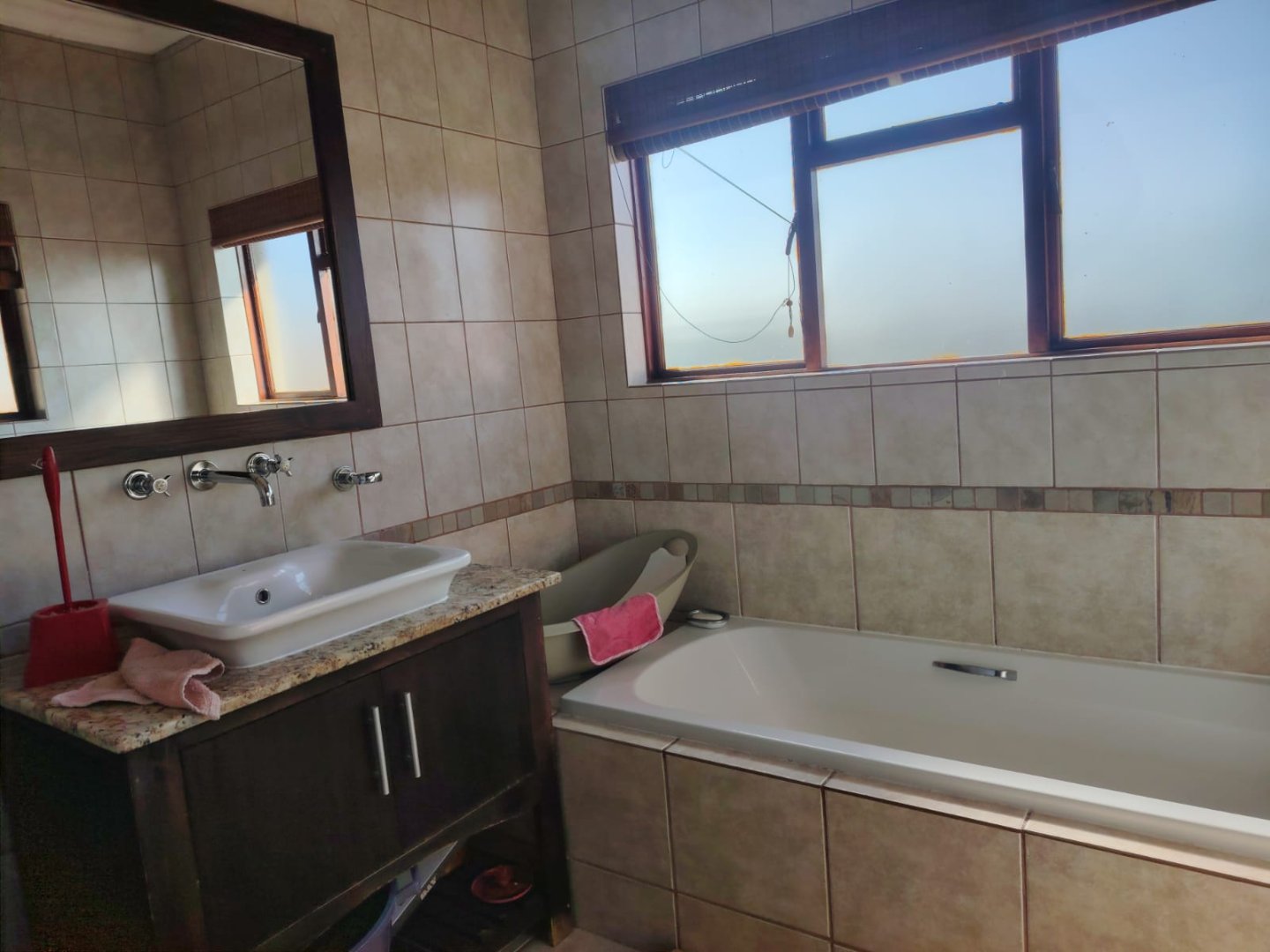 Outside, you’ll find a comfortable braai area leading directly from the living space, plus a large yard—perfect for pets and children to enjoy.