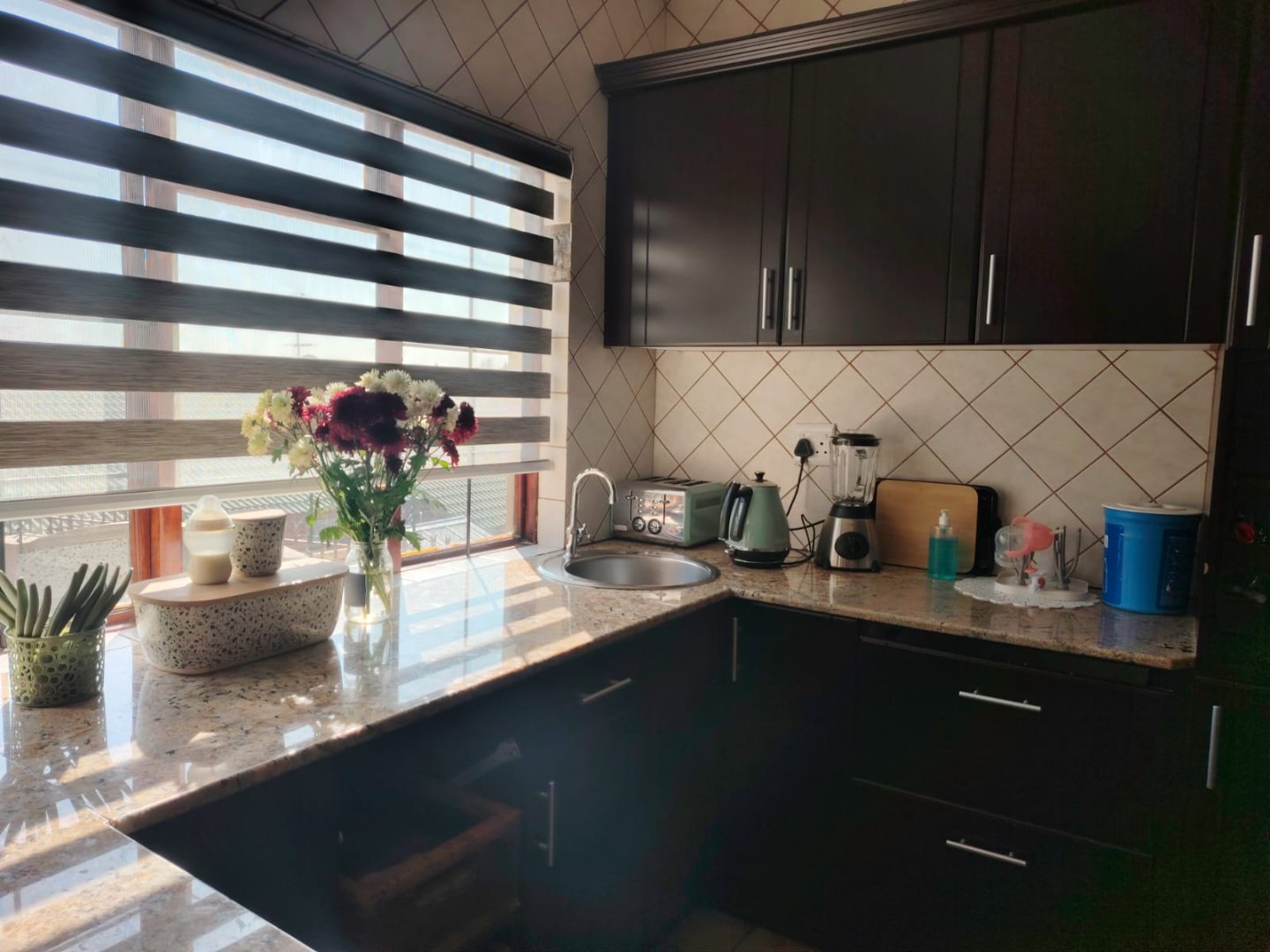 Step inside and you’re welcomed by a generous living and dining area that flows seamlessly into the stunning kitchen—my personal favorite feature. With granite countertops and ample cupboard space, this kitchen will steal your heart. An added bonus is the separate scullery, a rare find in a townhouse.