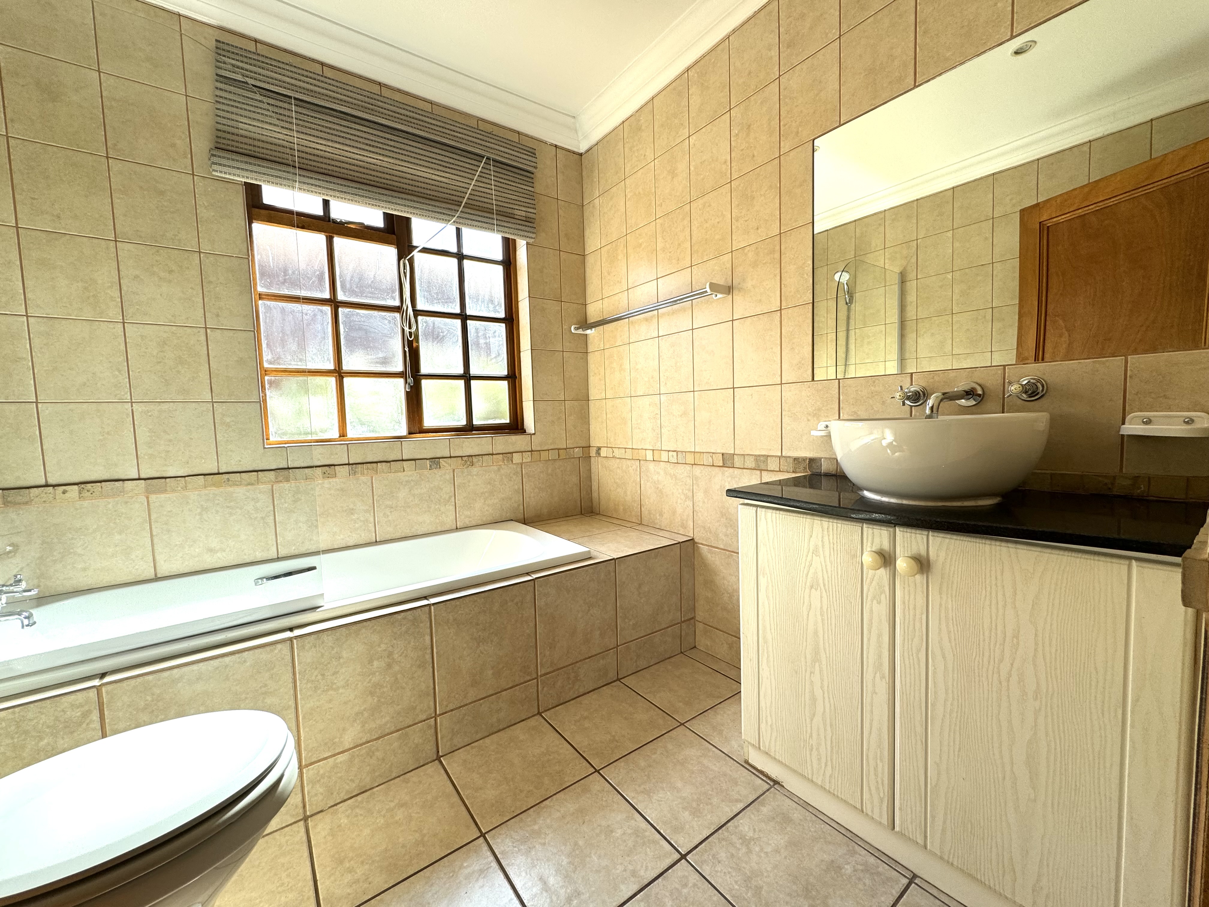 The living and dining area has an effortless flow to an outside patio with a louvre roof where you can have a braai or just enjoy a sundowner surrounded by high walls for privacy.