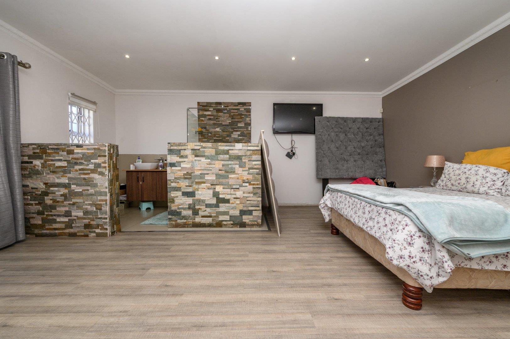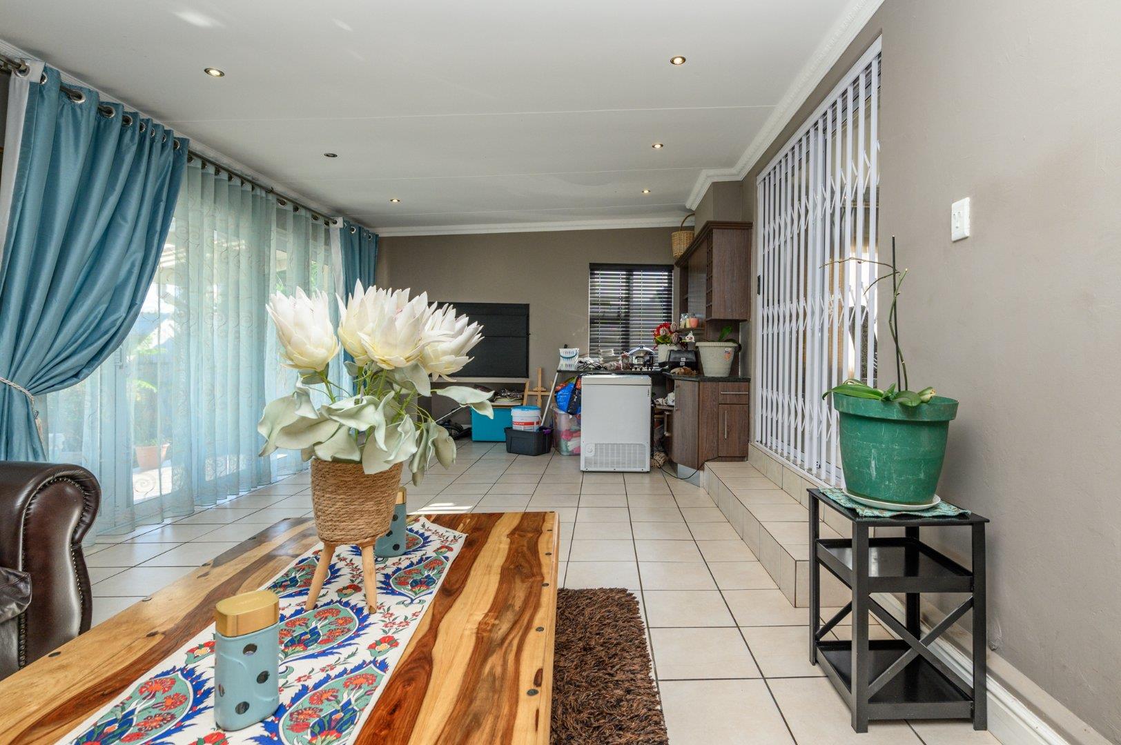 This charming 3-bedroom home offers a comfortable and modern living space, ideal for a family or those seeking extra space. The master bedroom features an en-suite bathroom for added privacy and convenience, while the other two bedrooms are generously sized and share a well-appointed second bathroom. The home includes a spacious kitchen, perfect for cooking and entertaining, which seamlessly flows into the lounge and dining areas, creating an open and inviting atmosphere. Outside, you'll find a refreshing pool, ideal for relaxing or hosting gatherings. A separate flatlet provides additional accommodation or space for guests. the property also boasts a double garage, water tanks for sustainable living, and a gas geyser for energy efficiency. This home combines comfort, functionality, and modern amenities, making it a perfect choice for anyone looking to upgrade their lifestyle.