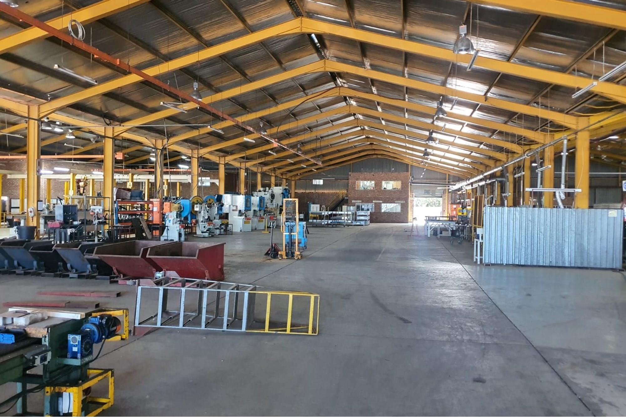 Strategically designed for efficiency and flexibility, the facility comprises four portal-style factory bays of ±1,400m2 each, plus an additional 800m2 finished goods warehouse. With an impressive production span of over 69 meters and internal heights ranging from 6 to 8 meters, this space easily accommodates a wide range of manufacturing and warehousing requirements.