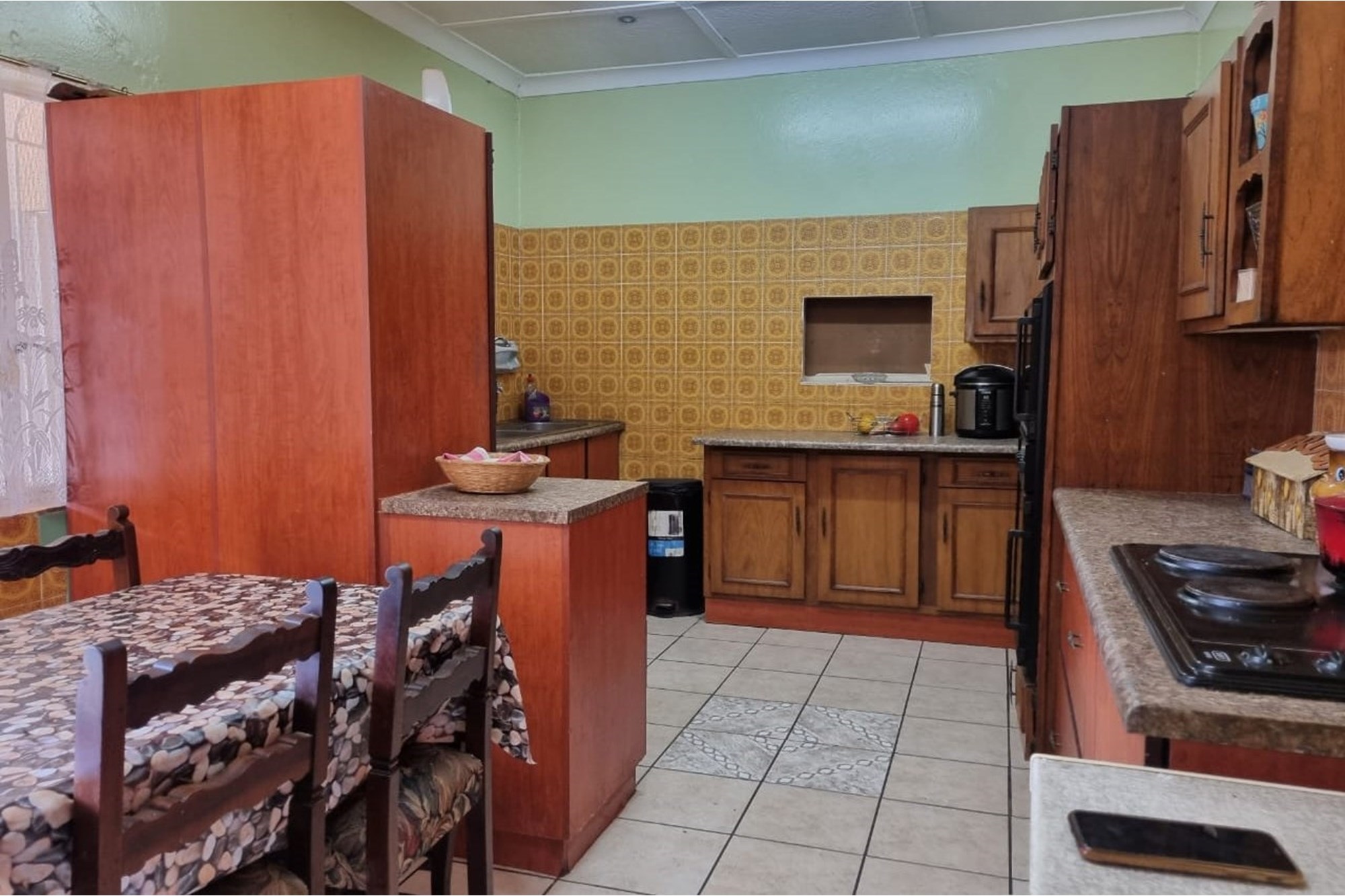 This stunning residence, built by its first owner, boasts exquisite brick and concrete craftsmanship. Step inside to discover a spacious, open-plan eat-in kitchen complete with built-in appliances, a gas stove, and a kitchen-dinette area. The home further includes an extra kitchen, maid’s bathroom, and convenient washing facilities both in the apartment and building.