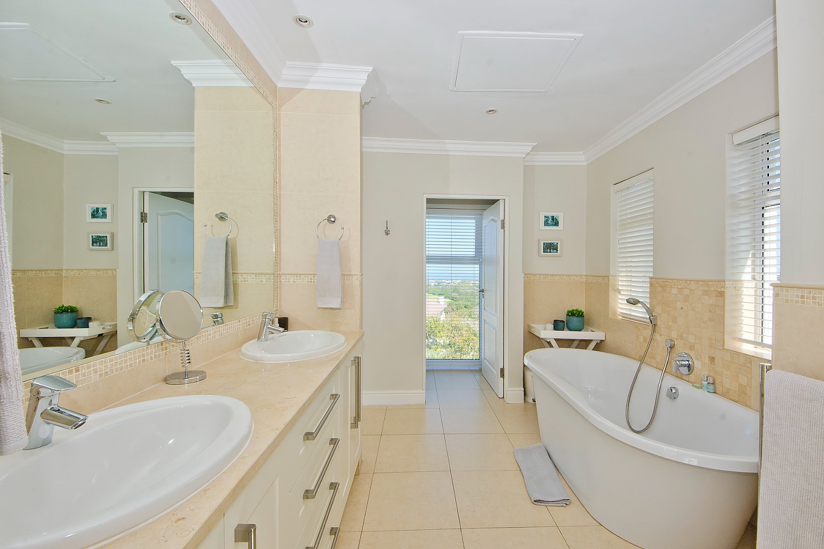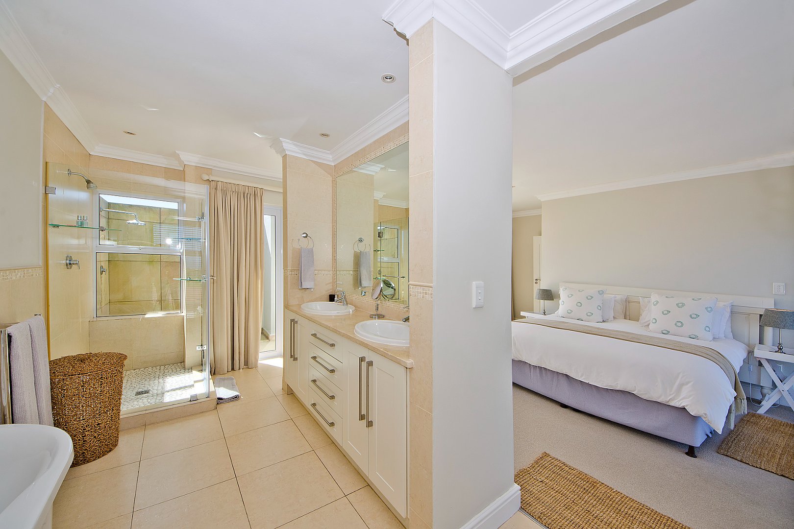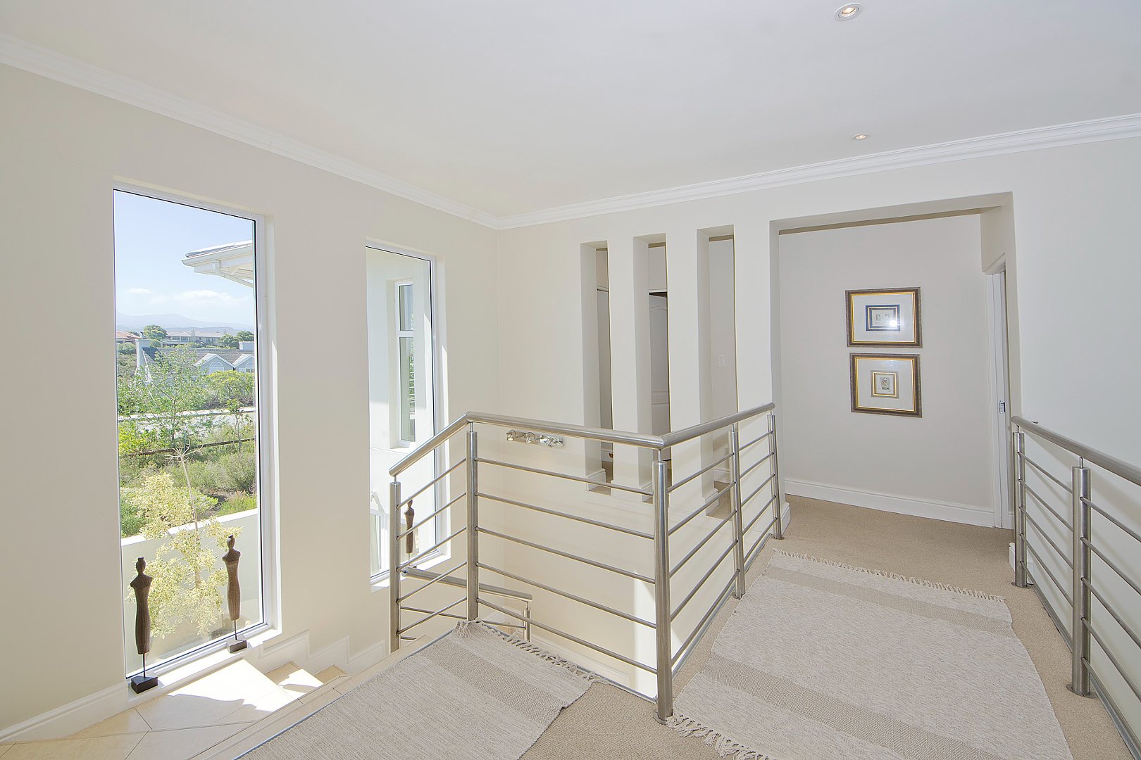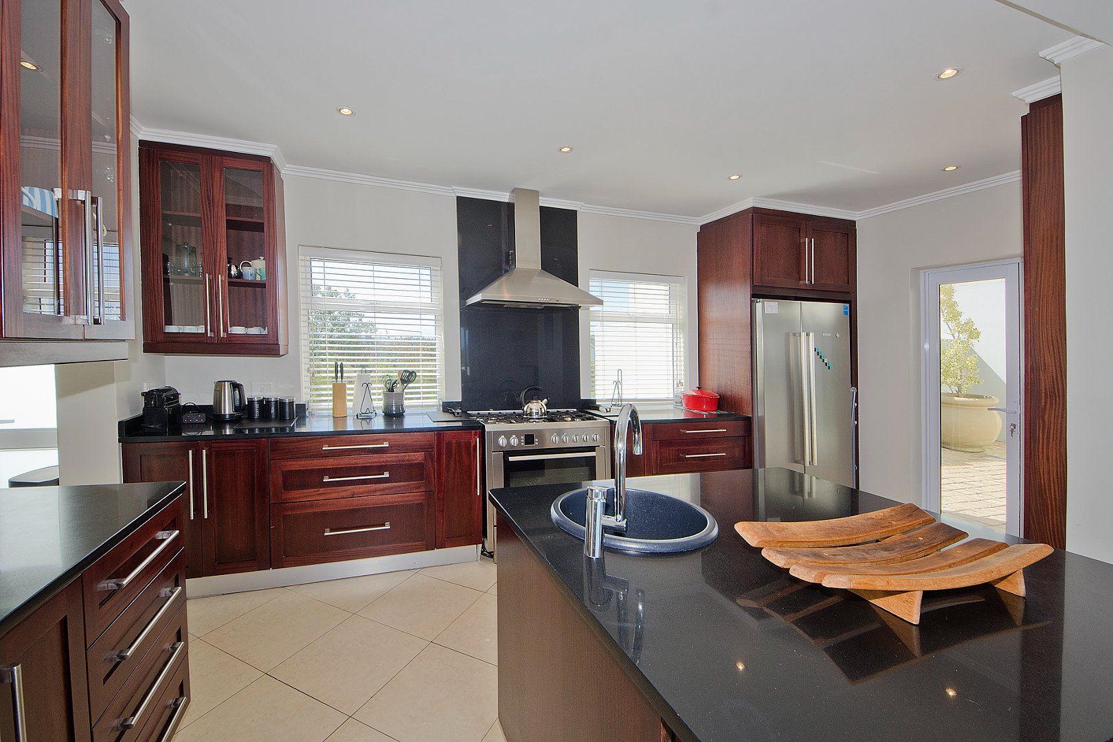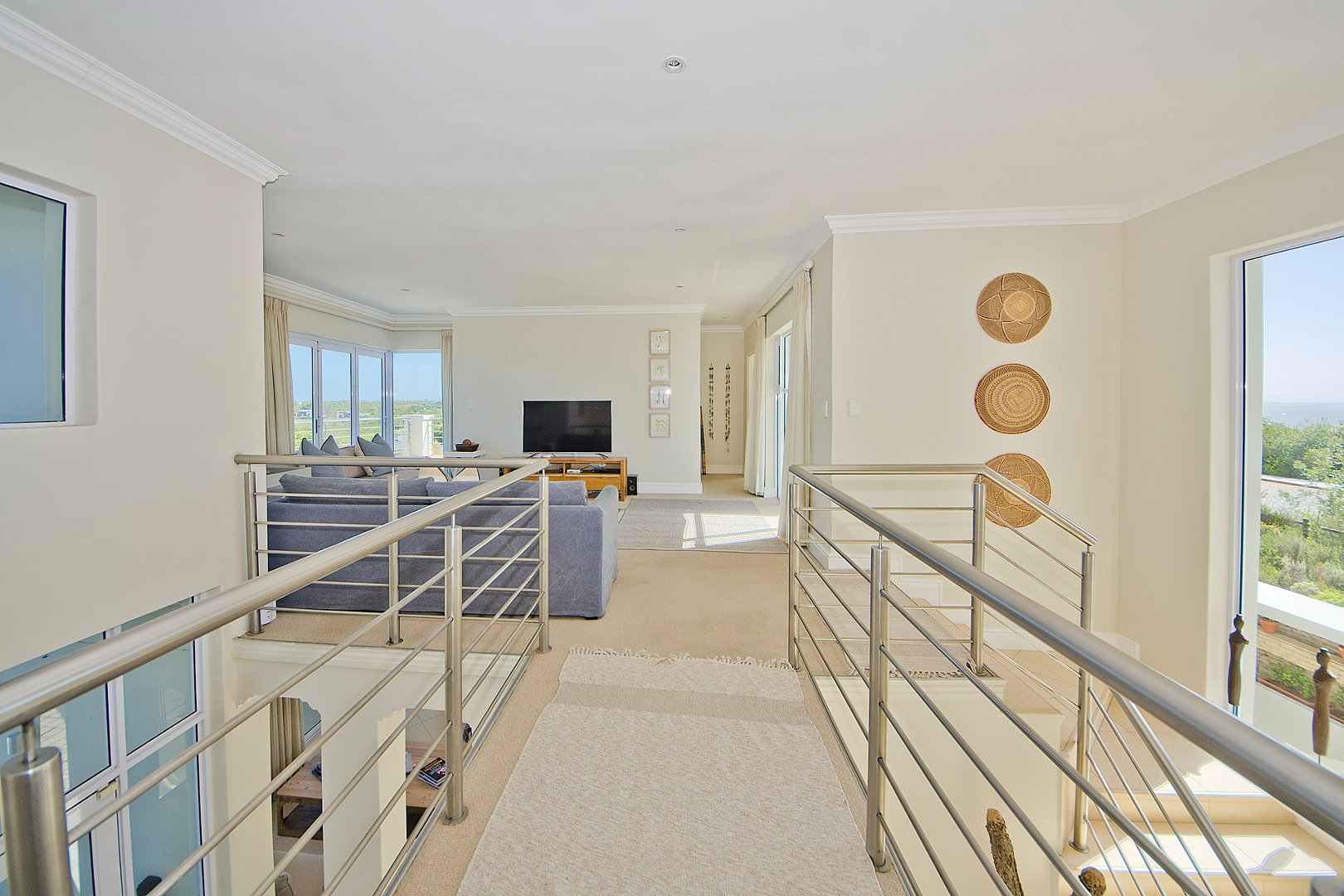 A serene northern courtyard just off the kitchen and lounge offers a sun-soaked retreat sheltered from winds complete with a built-in braai for alfresco dining. Downstairs, two spacious en-suite bedrooms provide privacy and comfort, while upstairs reveals a private slipper lounge and two additional bedrooms.