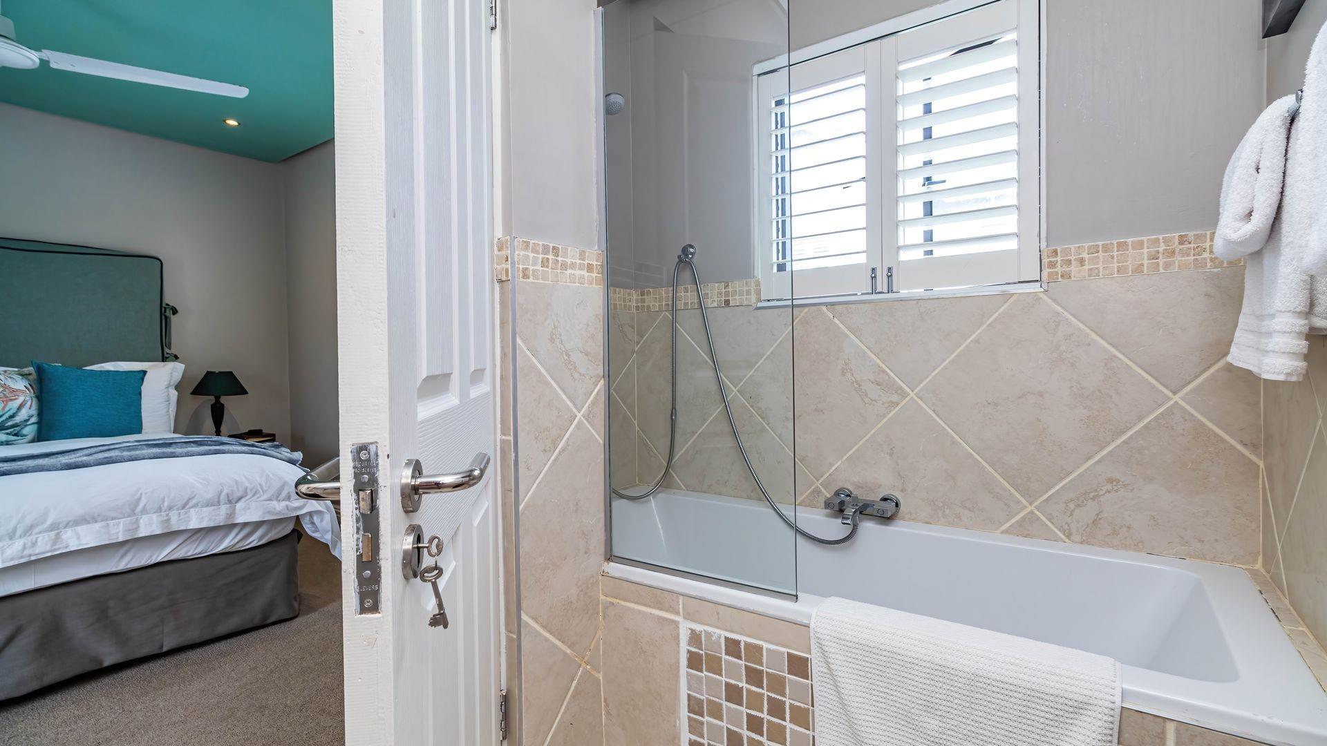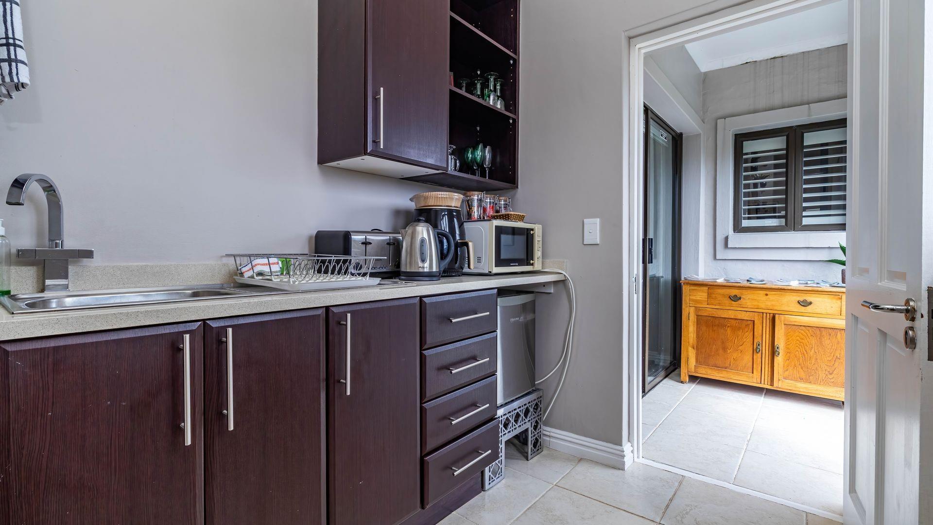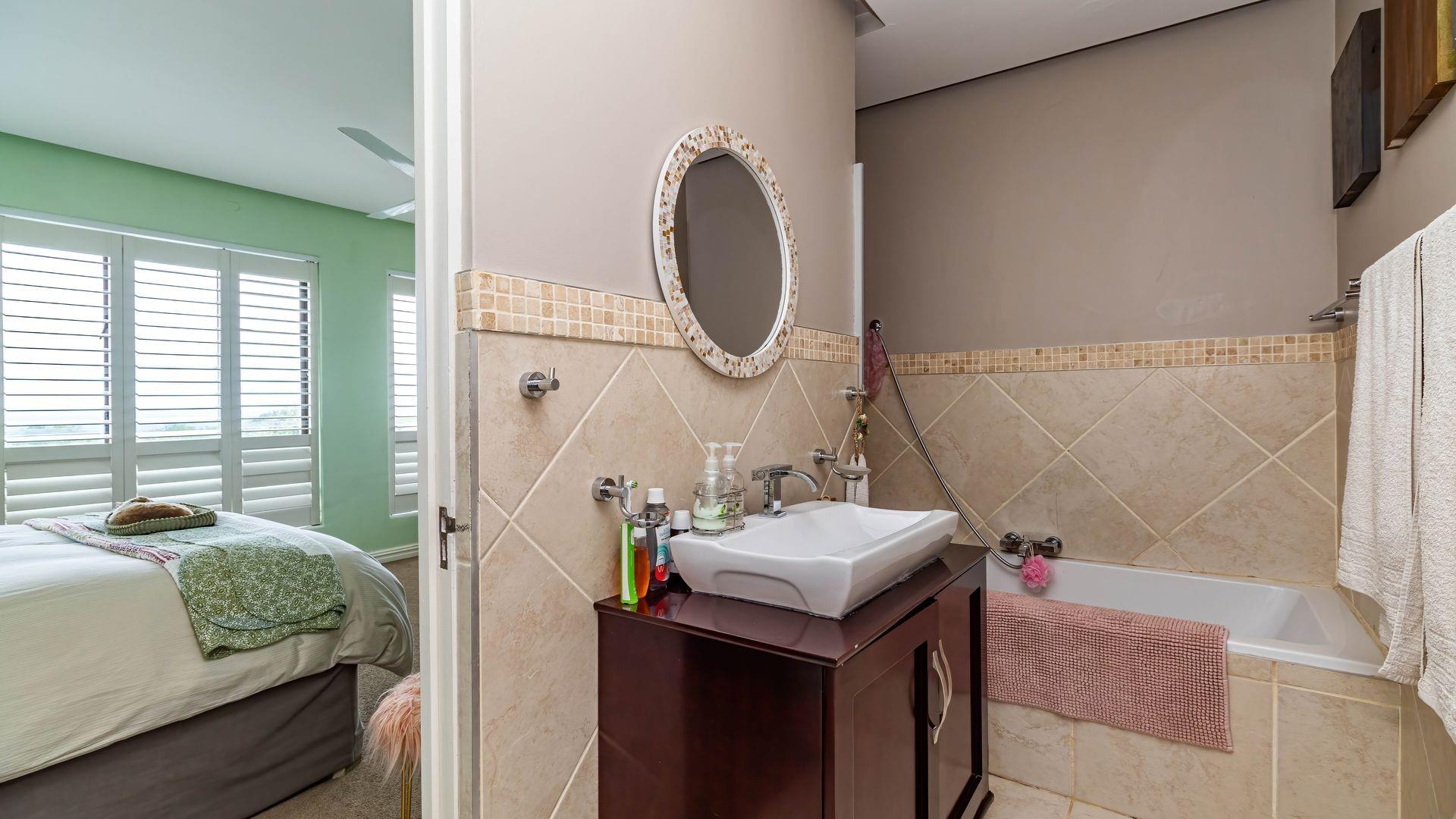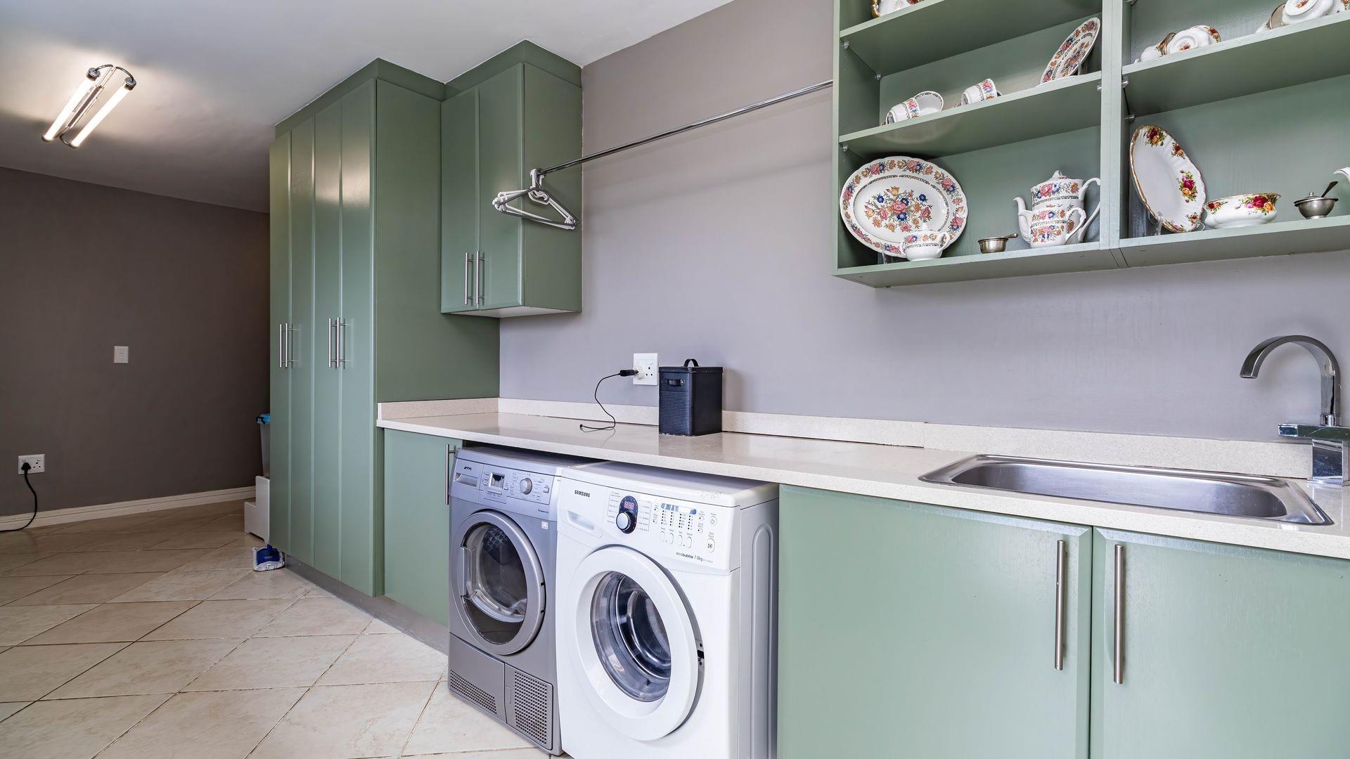 The ground floor is designed for effortless living and entertaining, featuring a seamless flow between multiple open-plan spaces. Two lounges – one with a cosy fireplace – anchor the living area, while an entertainment room with a built-in gas braai connects directly to the kitchen. A glass-doored room, fit for a cellar or study and a spacious scullery with abundant storage complete this level. The scullery has direct access to the double garage. All living spaces open onto a central outdoor deck, creating a private entertainment hub ideal for gatherings.