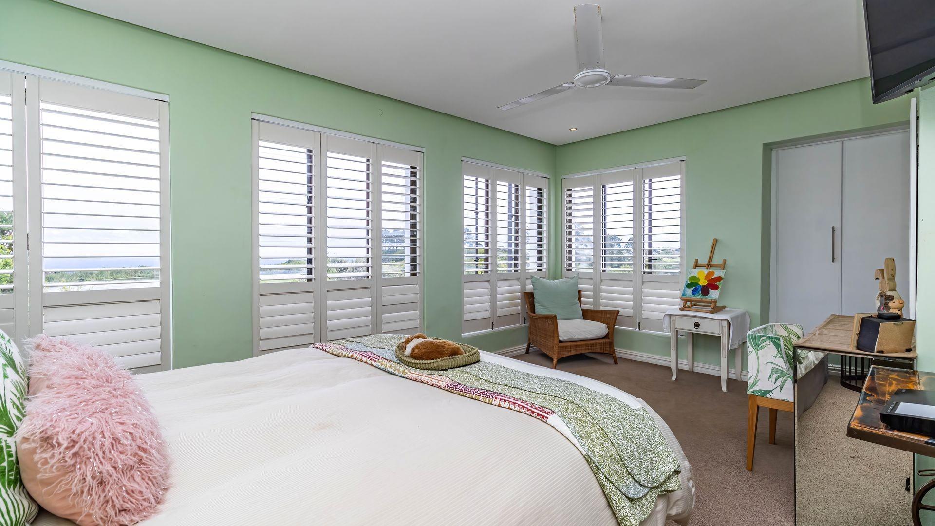 Upstairs, the master suite is truly impressive, offering generous proportions, a full en-suite bathroom, a dressing room, and views across the fairway towards the ocean. A separate lounge links the main suite to a second wing, where you’ll find two additional en-suite bedrooms.