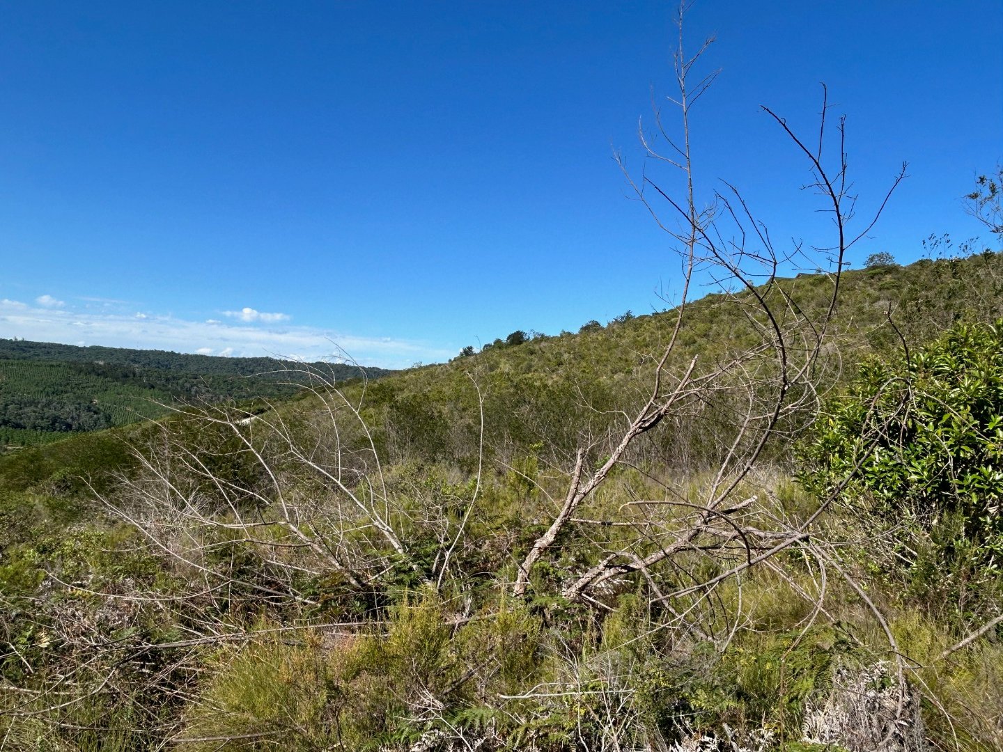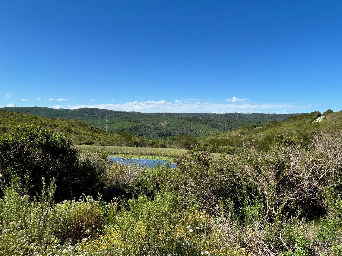 This north-facing elevated plot offers views over the serene earth dams below and accross to the forest planation and distant Outeniqua Mountains. An ideal location for privacy as there are no properties behind or below E63. A great buy at the price!