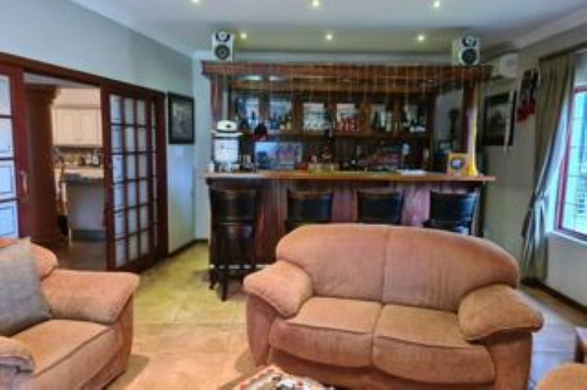 The house features a lovely entrance hall and a separate study. Lovely modern open plan kitchen with gas stove and electrical ovens separate scullery and laundry. Lounge and a separate bar area. The sliding door opens onto a covered patio with a built-in braai overlooking the established garden from the pool you can work towards a lapa, and boma.