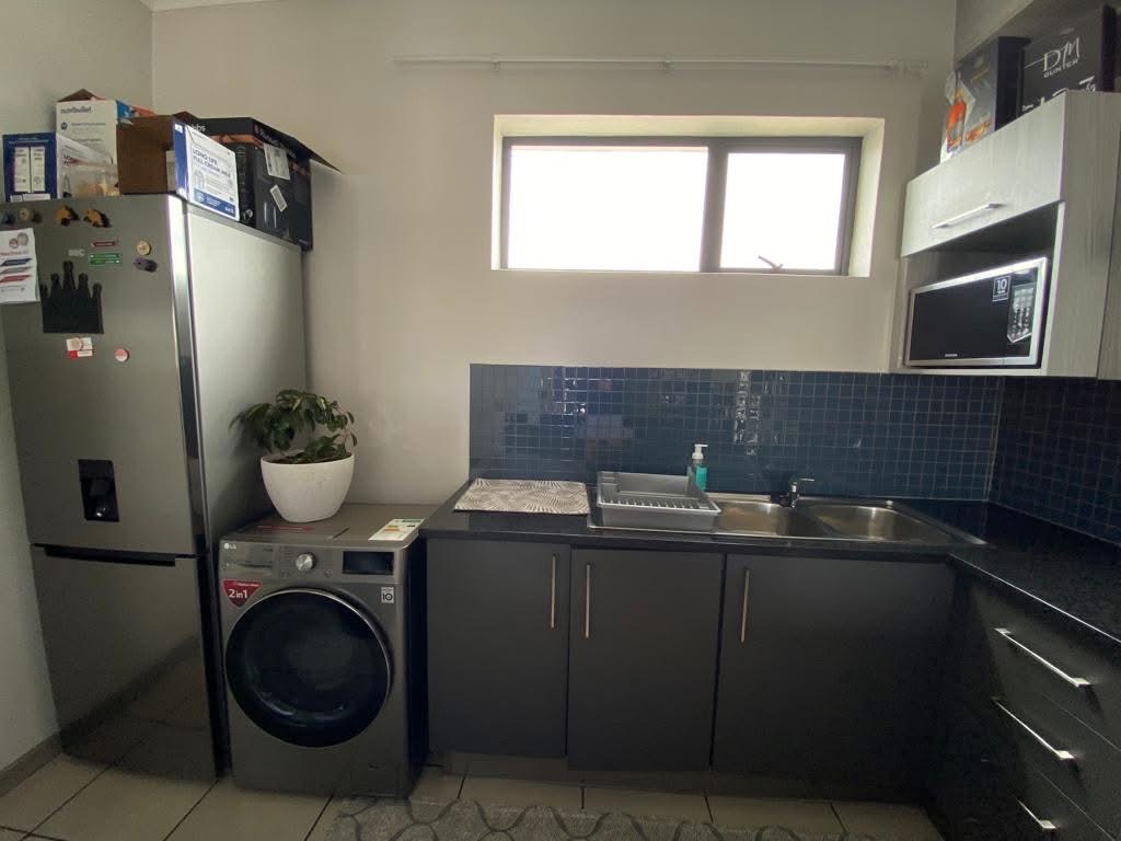 Discover modern living in this secure 2-bedroom, 2-bathroom apartment located within a sought-after security complex in Elarduspark, Pretoria East. The property boasts a contemporary aesthetic, evident from the moment you enter through the security gate, complete with a manned security booth and robust electric fencing, ensuring peace of mind with 24-hour security. The well-maintained paved entrance sets a welcoming tone. Inside, the 72 sqm floor plan features an inviting open-plan living area, seamlessly integrating the lounge and a stylish, modern kitchen. The kitchen is a highlight, equipped with sleek dark countertops, two-toned cabinetry, a striking marble-effect backsplash, and integrated appliances including an oven, hob, and extractor. A convenient breakfast bar and an in-kitchen washing machine add to its functionality. The lounge area is spacious enough for comfortable seating, perfect for relaxation or entertaining. Elarduspark offers a desirable suburban lifestyle in Pretoria East, known for its accessibility and community feel. This apartment presents an excellent opportunity for first-time buyers, young professionals, or those seeking a secure, low-maintenance lock-up-and-go home. Key Features: \* Secure Gated Community \* Modern Open-Plan Living Area \* Stylish Kitchen with Granite style Countertops and Integrated Appliances \* 2 Bedrooms, 2 Bathrooms (1 En-suite) \* Private Balcony with Built-in Braai \* Dedicated Parking Bay \* Fibre Ready \* 72 sqm Floor Size The complex is ideally situated near schools, shopping centers, medical facilities, and main roads, providing easy access to essential amenities. With its practical layout and prime location, this unit is an excellent choice for families or professionals.