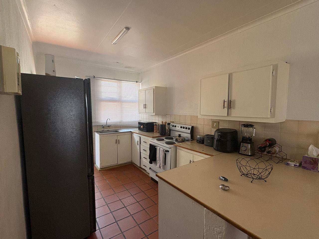 The flat features a bright, open-plan living and dining area that flows seamlessly to a private balcony/patio — ideal for enjoying your morning coffee or evening sundowners. The kitchen is well-equipped with built-in cupboards and ample counter space. The spacious bedroom includes built-in wardrobes, and the bathroom is modern and well-maintained.