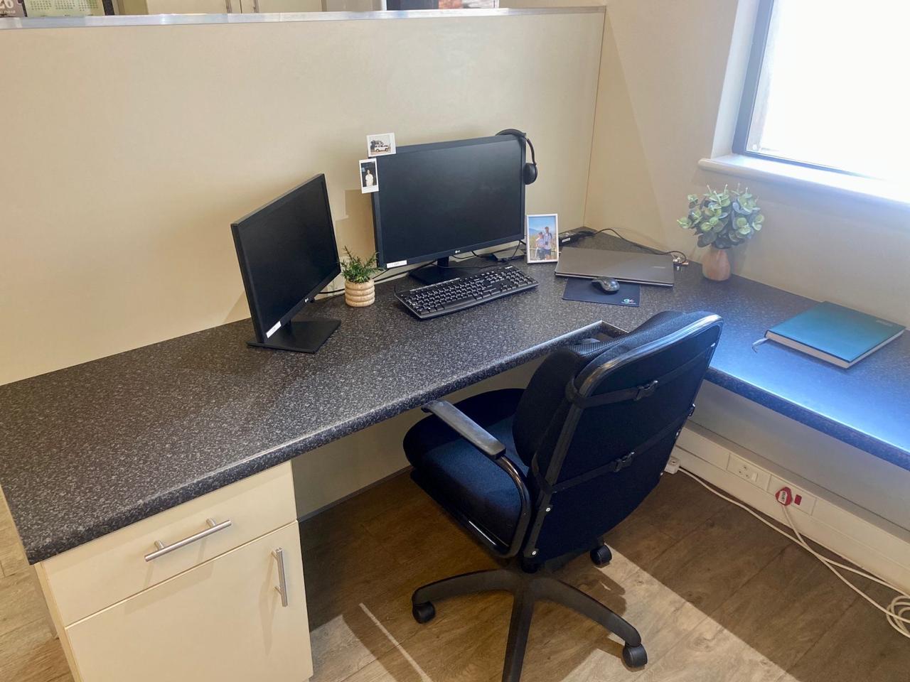 Step through a grand double-volume striking entrance into a space designed to impress — featuring 13 built-in workstations, consulting rooms, boardroom with coffee station, and a fully equipped kitchen.