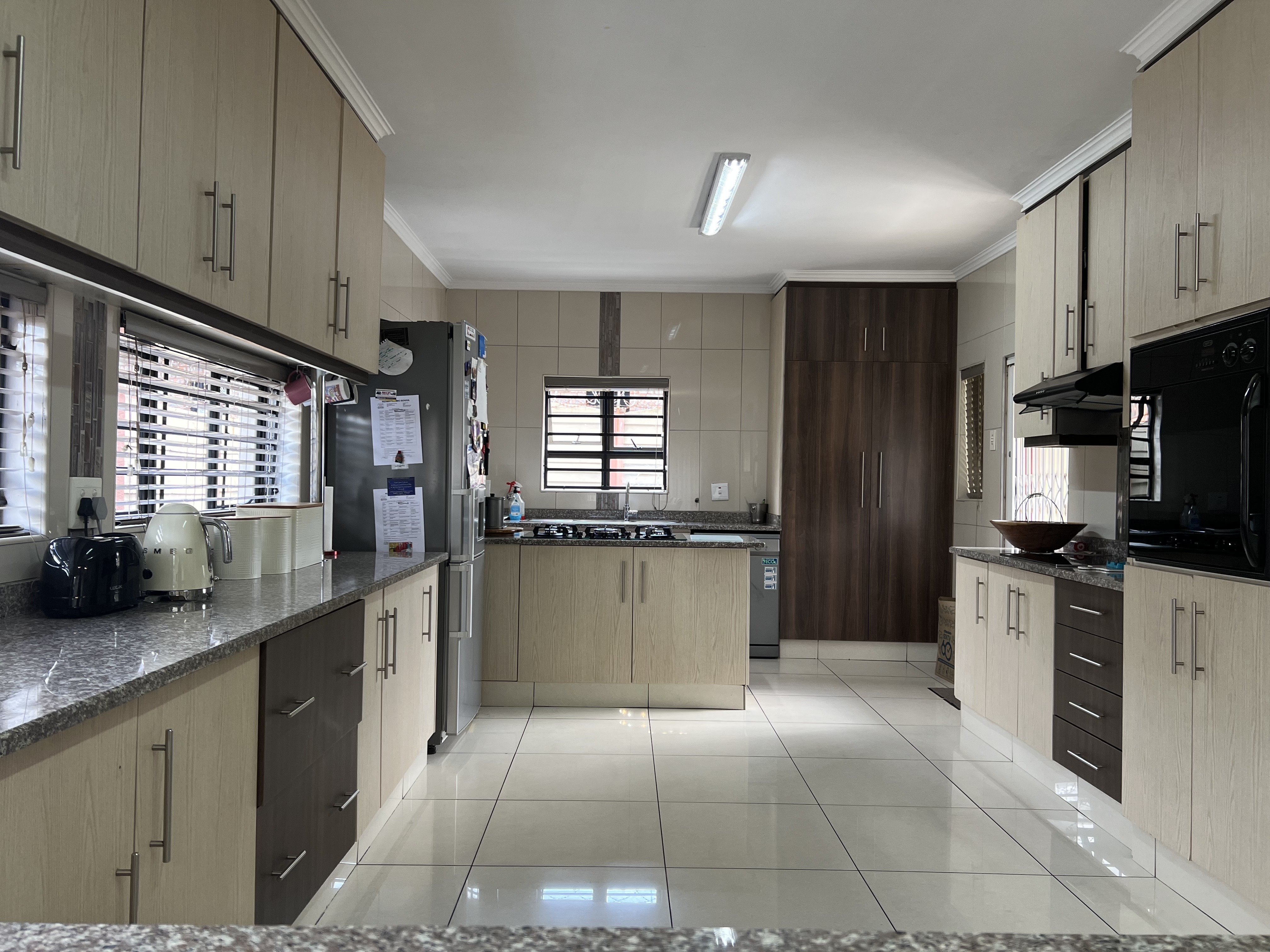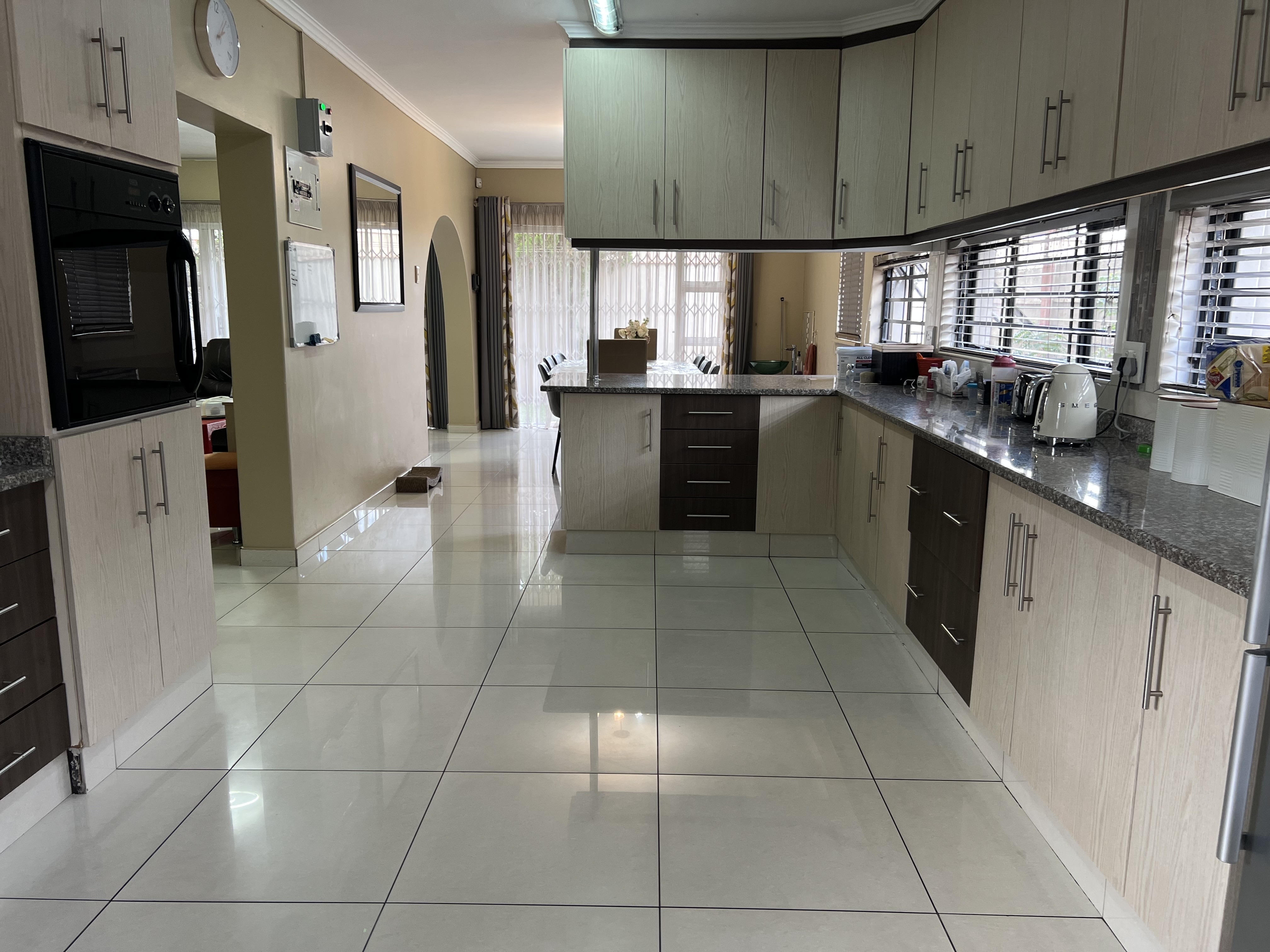 As you enter this beautifully designed home, you will be greeted by the warmth and charm that cannot be matched. The open-plan kitchen is a chef's delight, featuring elegant granite tops and a convenient pantry, making meal preparation a joy. The spacious living areas are adorned with sleek tiled floors, allowing for easy maintenance and a fresh, contemporary feel.