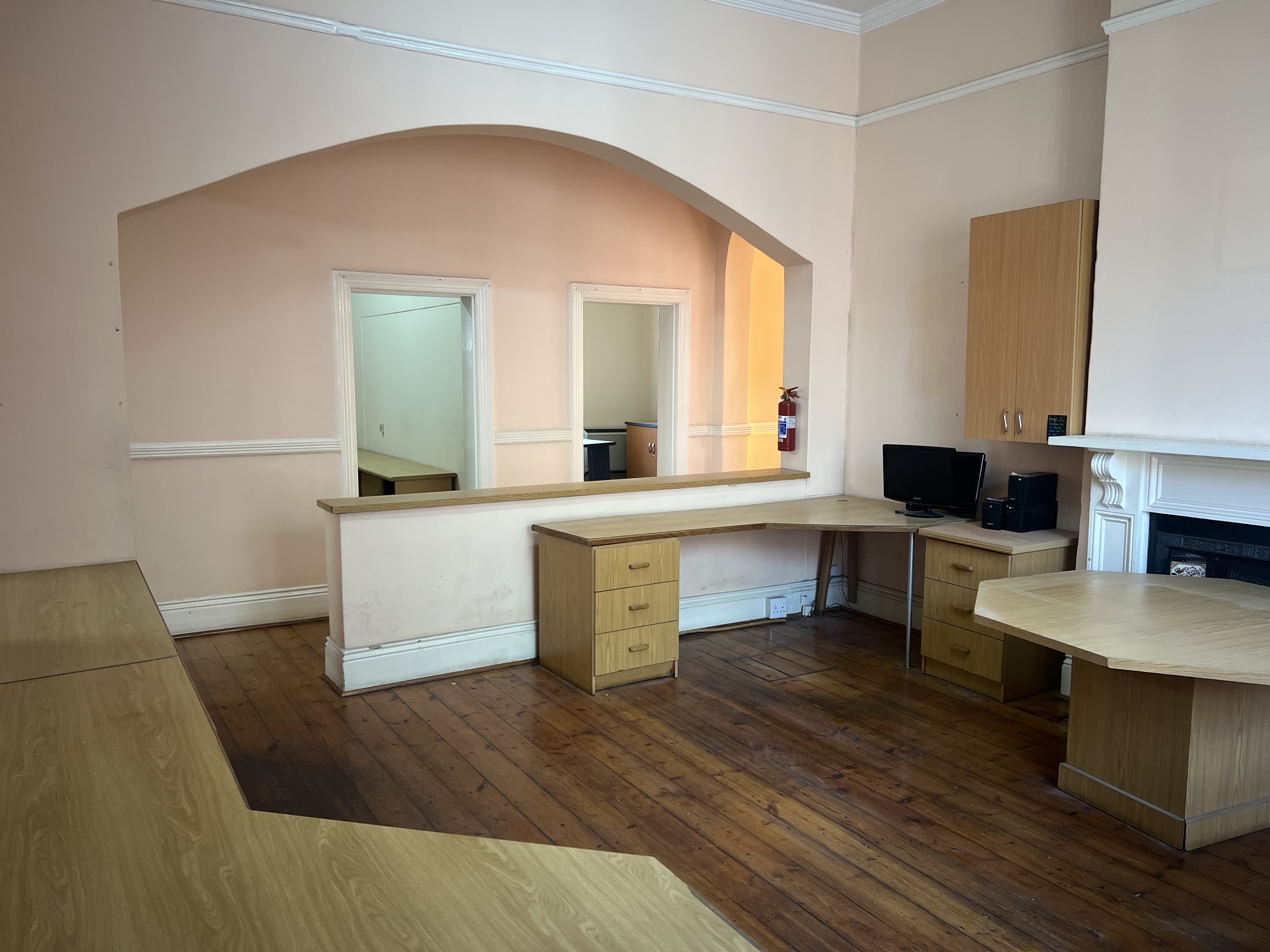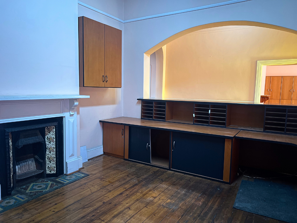 Behind its classic facade , the interior comprises a professional reception area, five private offices, two spacious open plan office areas, a well-proportioned boardroom, and a practical kitchen. Wood framed windows and flooring lend warmth and natural light throughout the workspace.