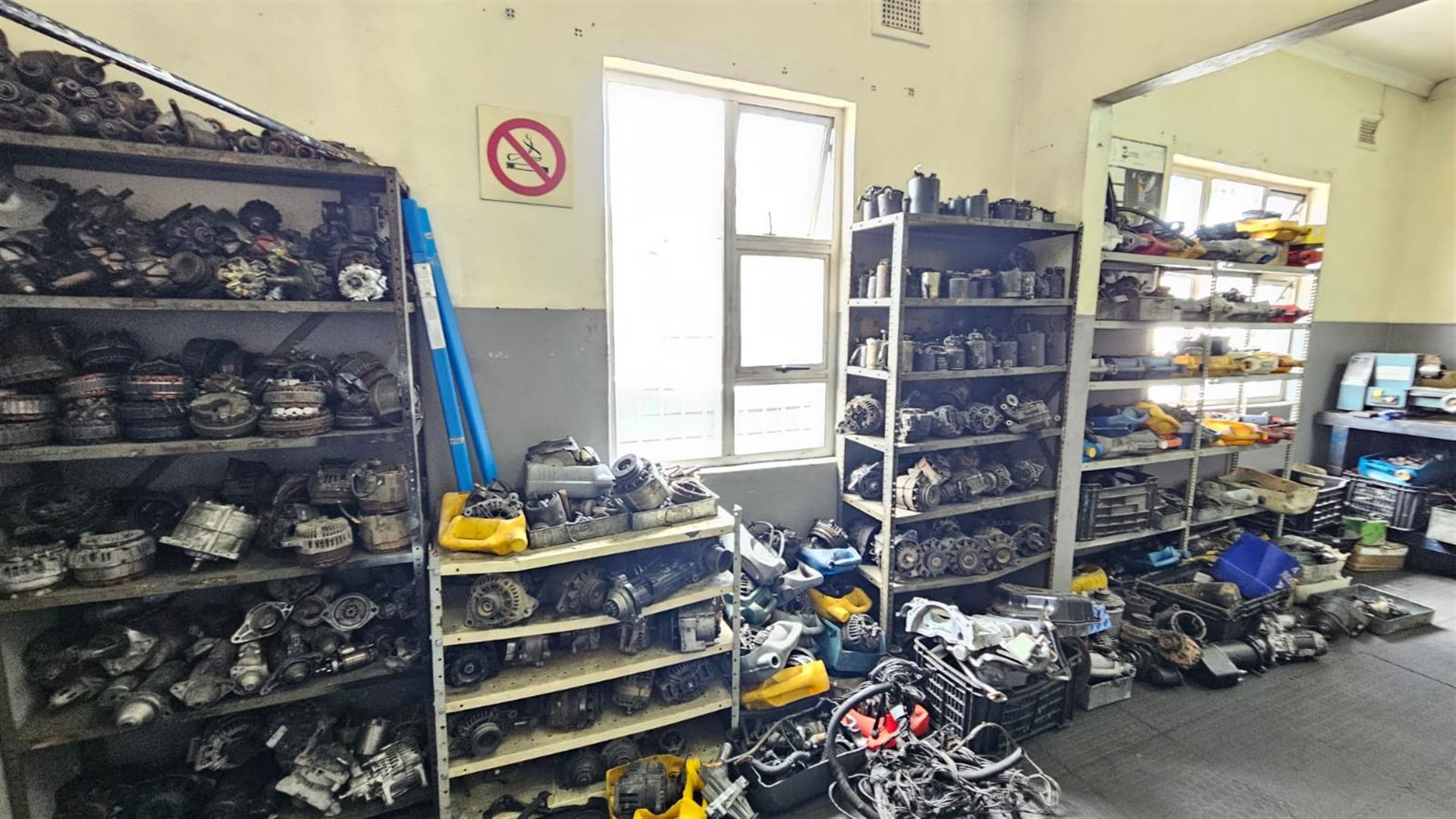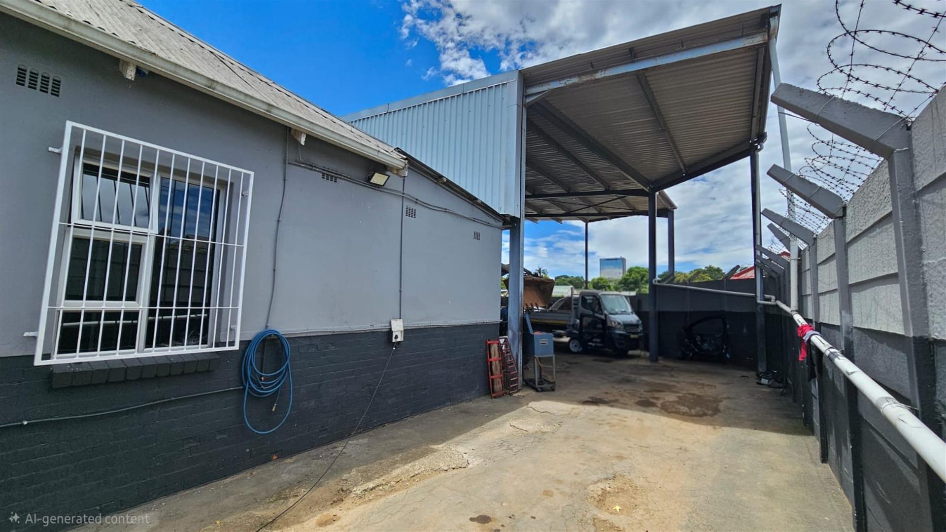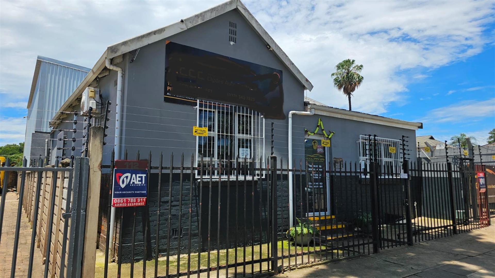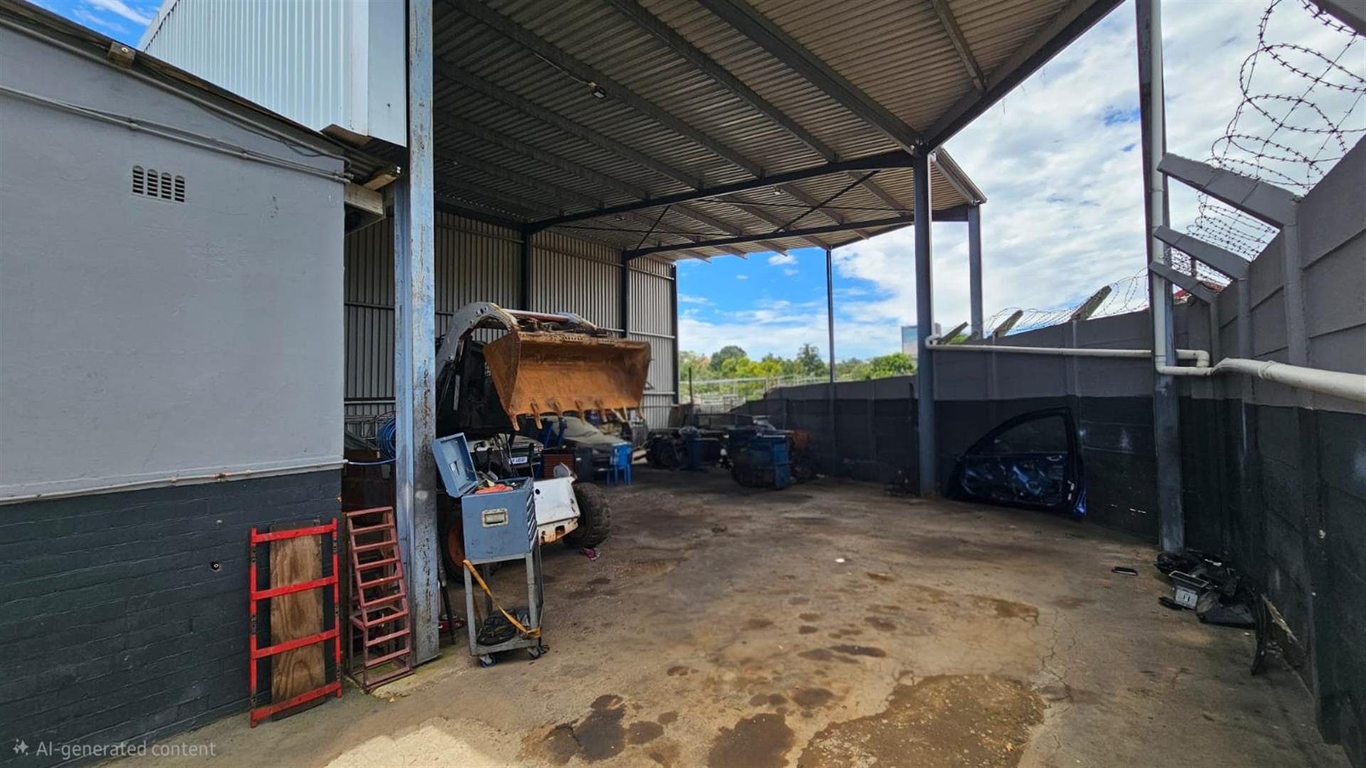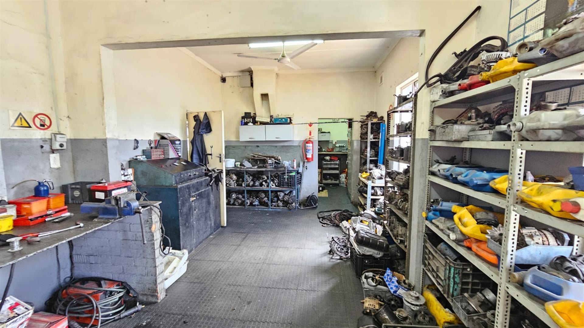 At the rear, the property opens into a spacious workshop area with covered working bays, a concrete yard, secure high boundary walls and gated vehicle access. The configuration allows for smooth workflow and is well suited to auto-electrical work, mechanical services, light industrial use or trade-based operations.