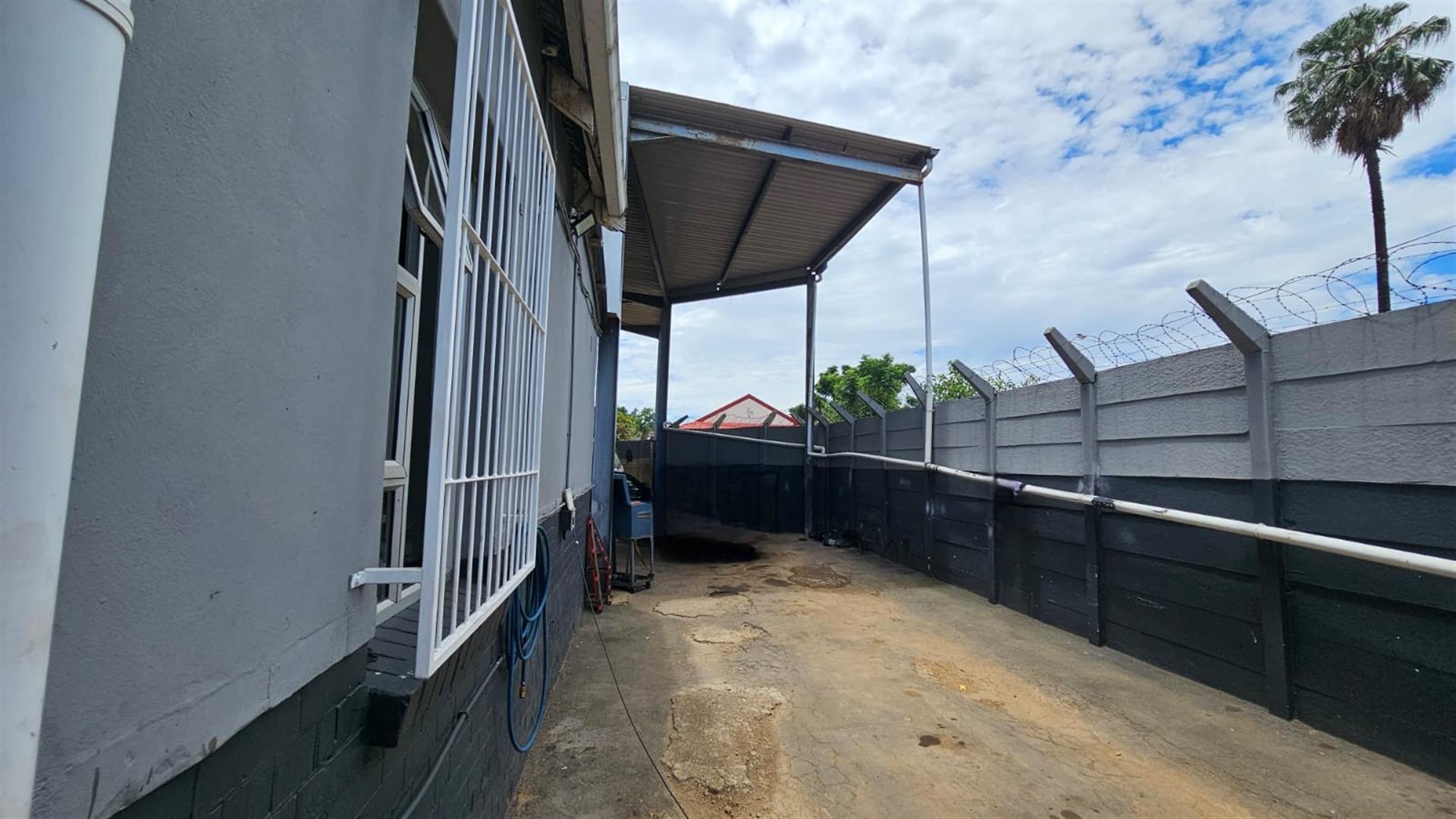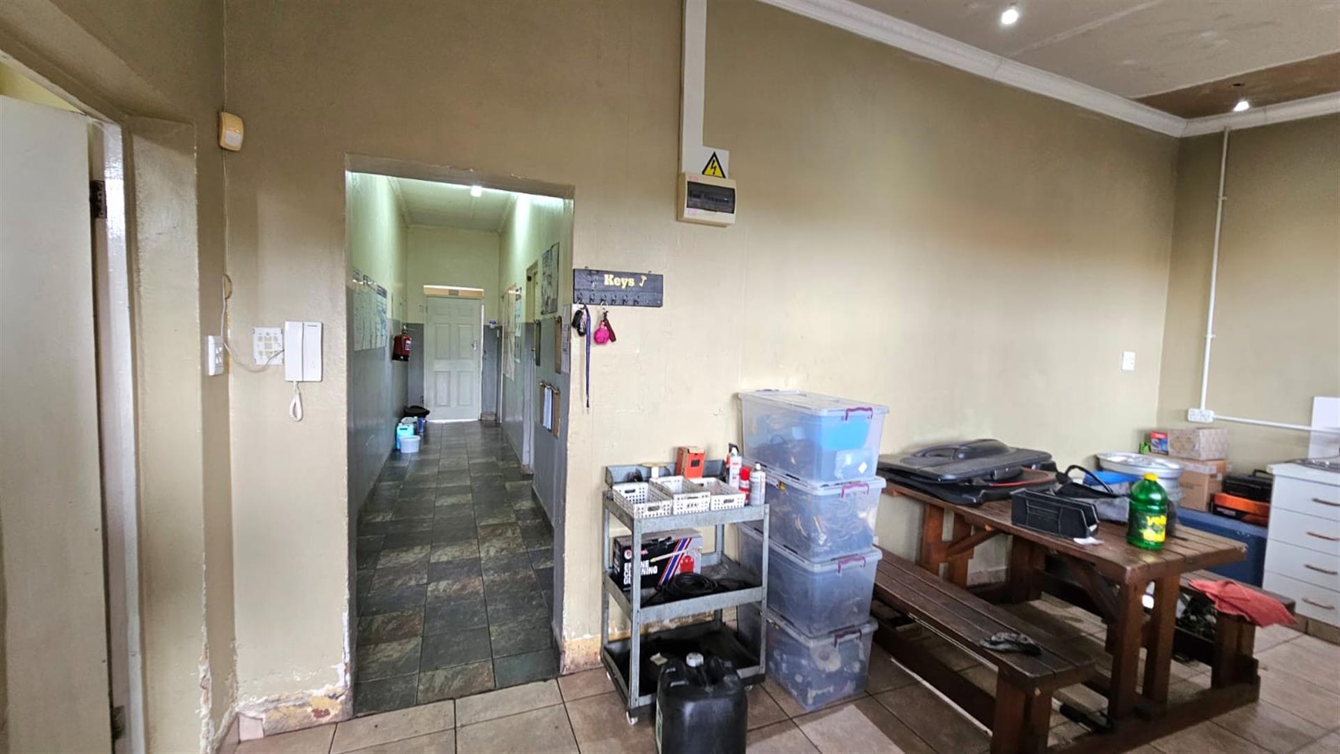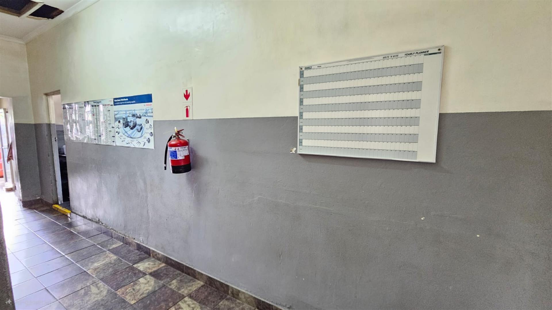 The front section of the building provides a practical business layout, including a reception or client waiting area, administrative space, storage and ablution facilities—ideal for day-to-day operations and customer interaction.