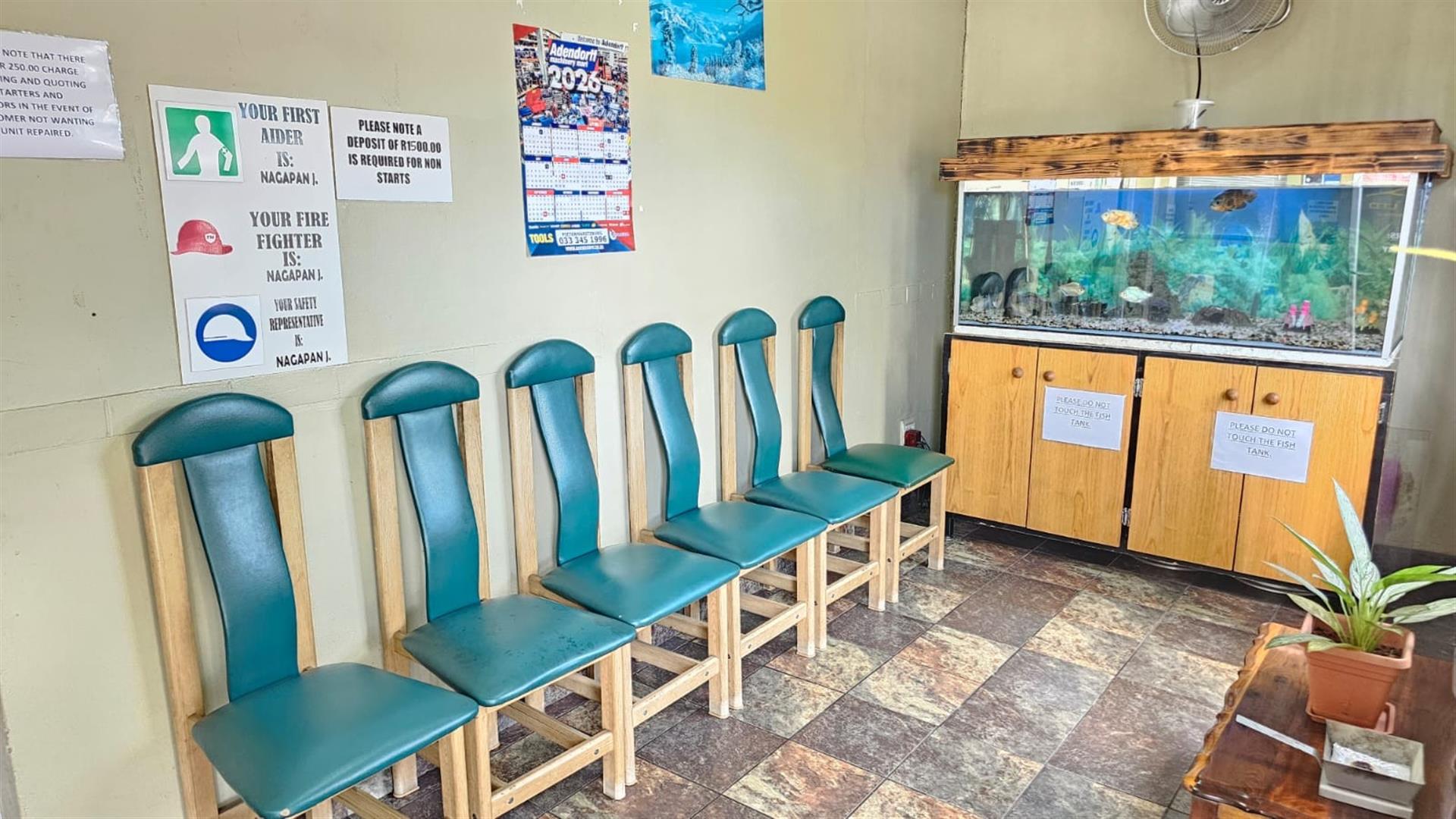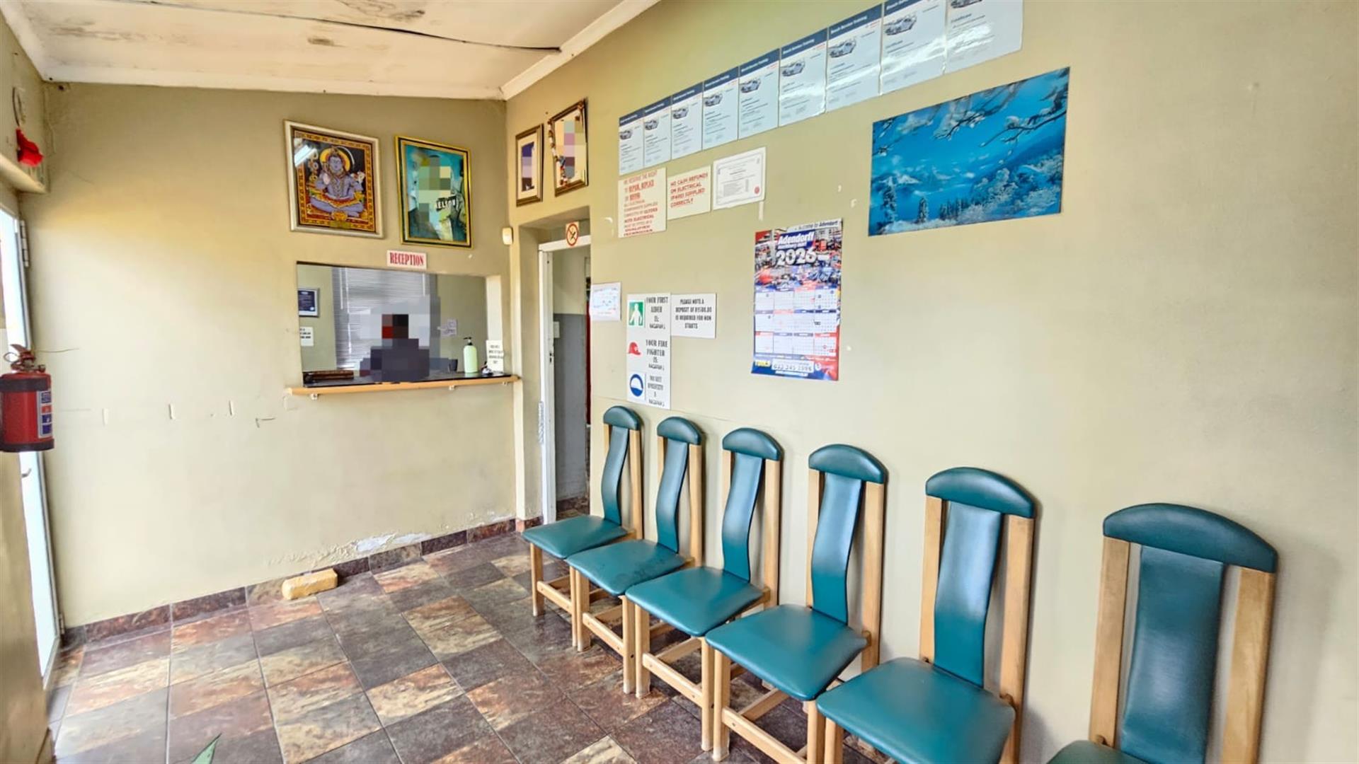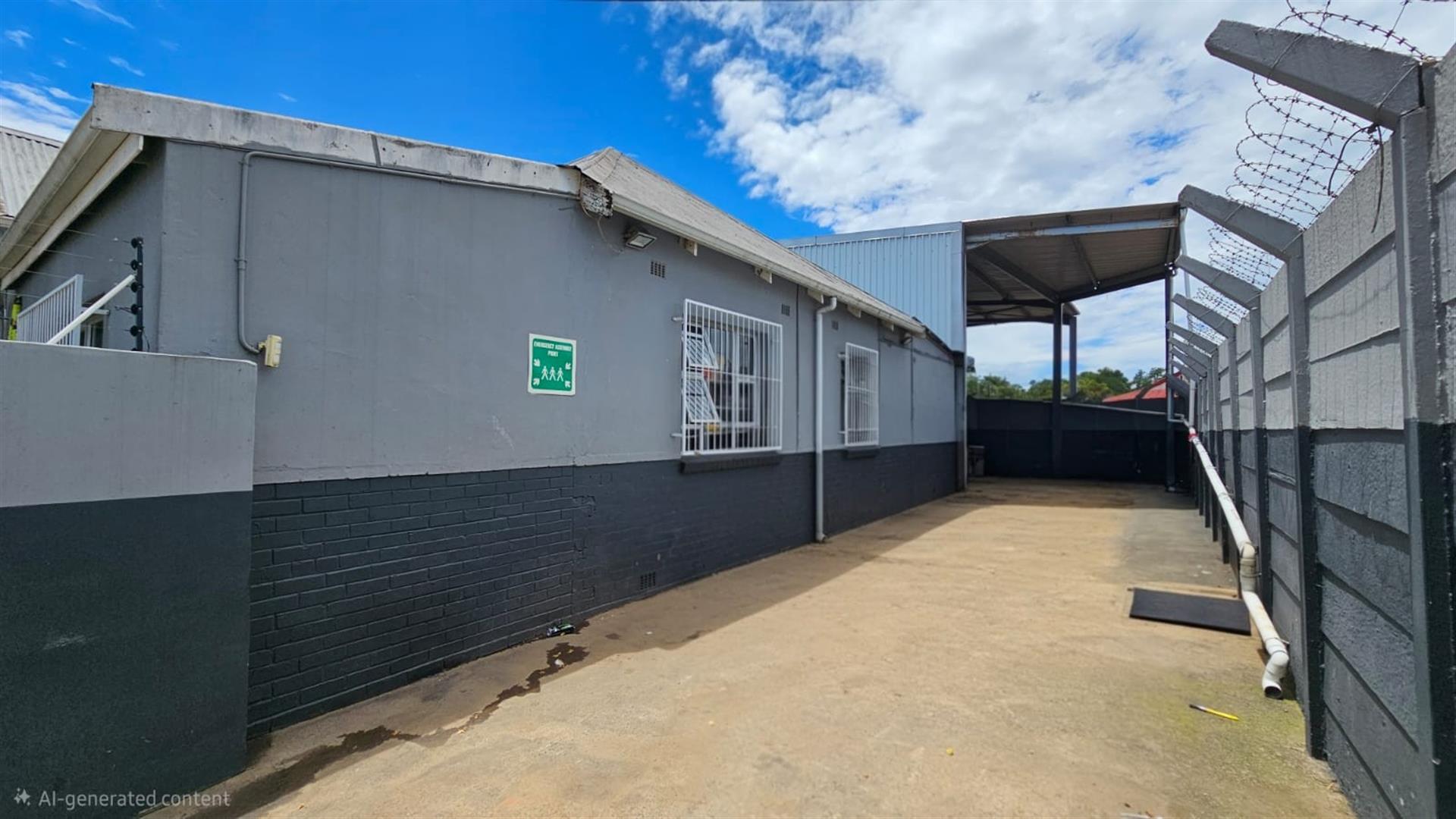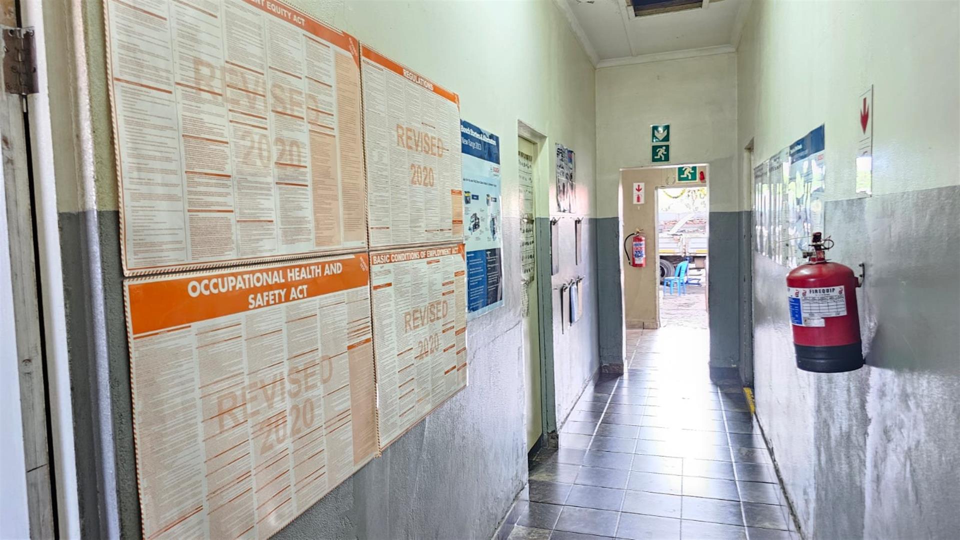The front section of the building provides a practical business layout, including a reception or client waiting area, administrative space, storage and ablution facilities—ideal for day-to-day operations and customer interaction.