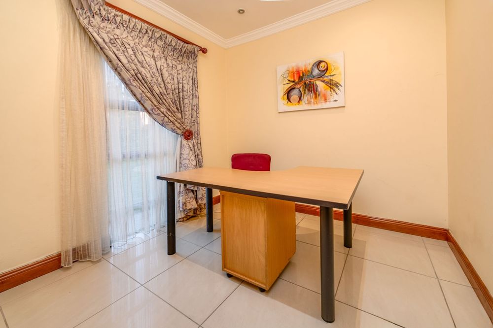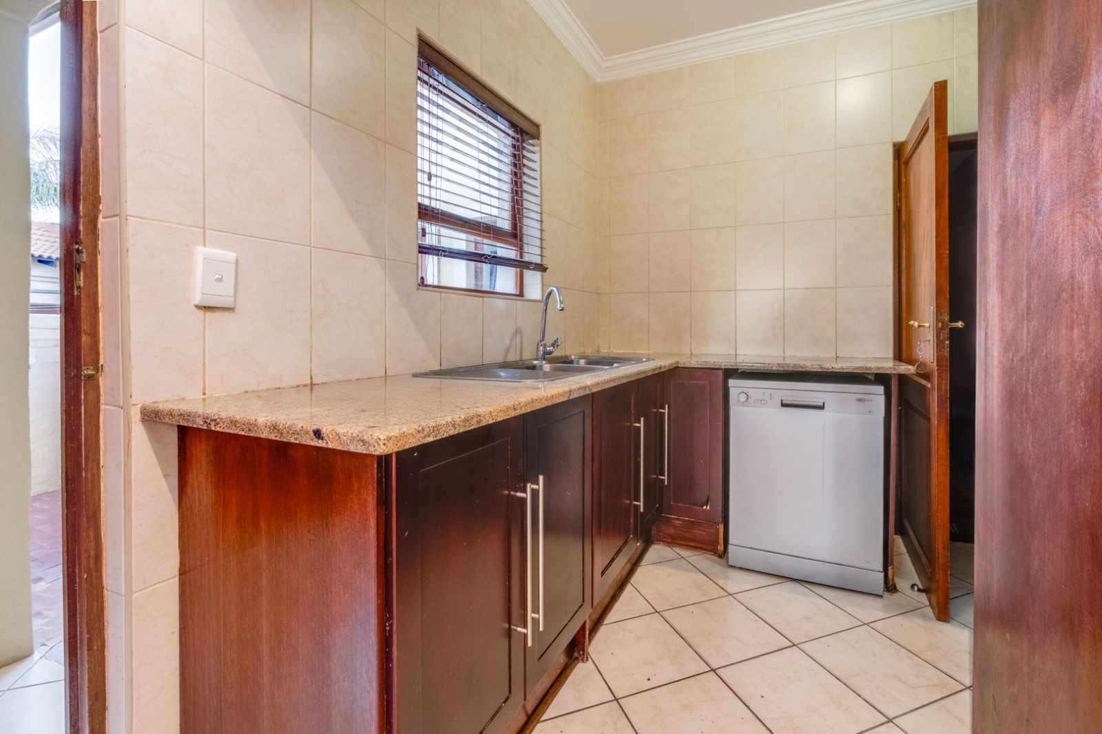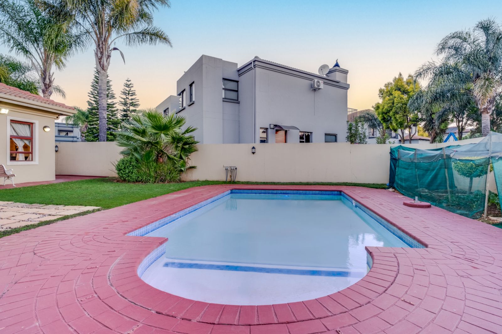 Designed for seamless entertaining and relaxed living, the spacious lounge and dining area flow effortlessly onto a covered patio with a built-in braai. Picture weekends spent here, overlooking your sparkling pool and soaking up the estate’s tranquil ambiance. The modern kitchen, finished with elegant granite counters, is as functional as it is stylish—ready for family meals and festive gatherings alike.