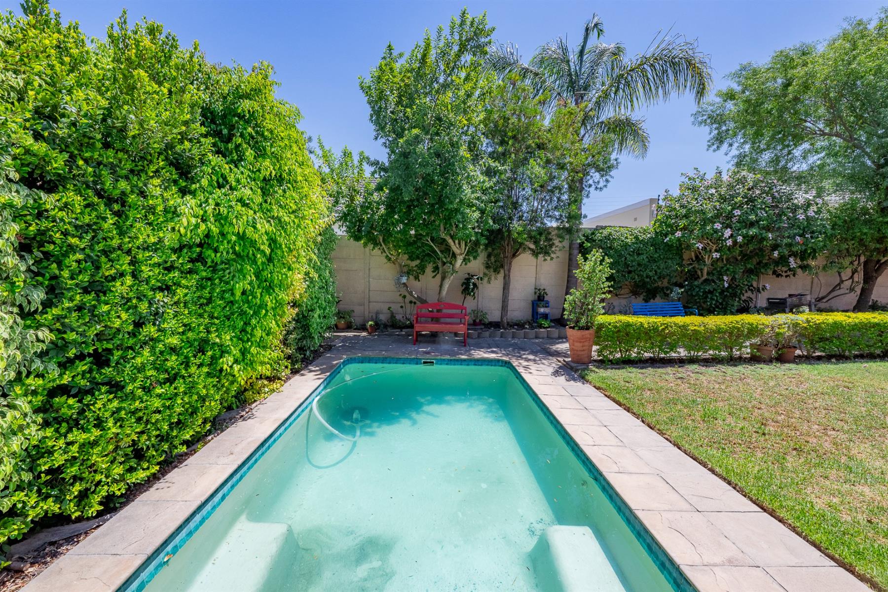 ·Swimming pool with pool cover and salt chlorinator