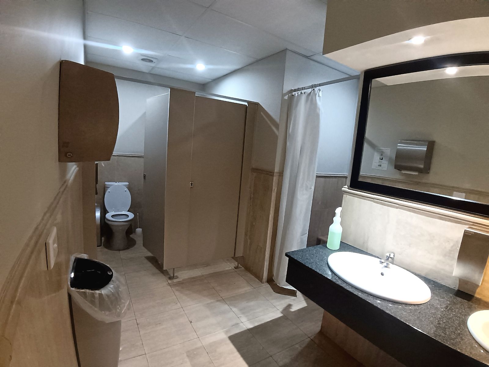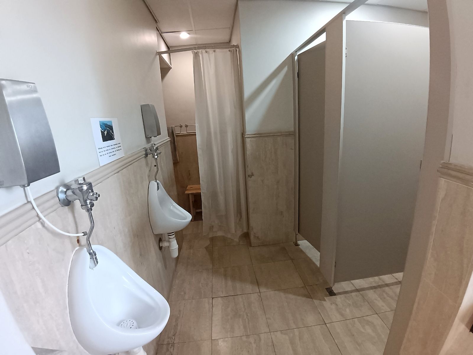 Male & female restrooms with showers, toilets & urinals
