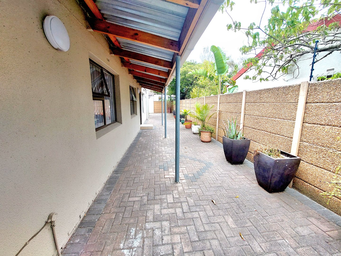 The property features strong security measures, including high walls, electric fencing, security beams, and an alarm system, ensuring maximum privacy and safety. An automated gate leads to a large yard with additional parking for a second vehicle. The entrance opens into a paved, open-plan area that is ideal for entertaining guests.