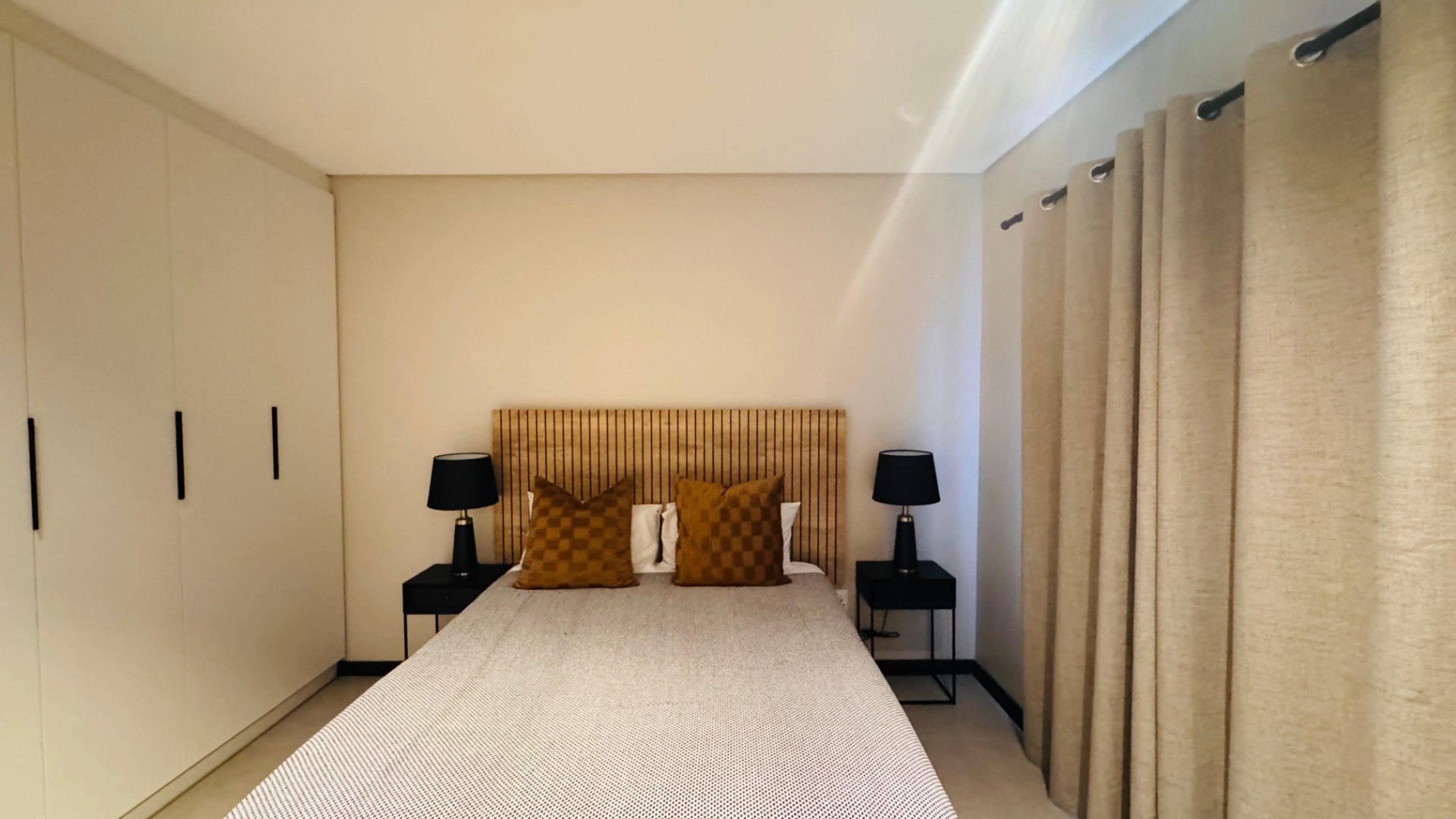 Second bedroom with generous storage and access to a stylish guest bathroom.