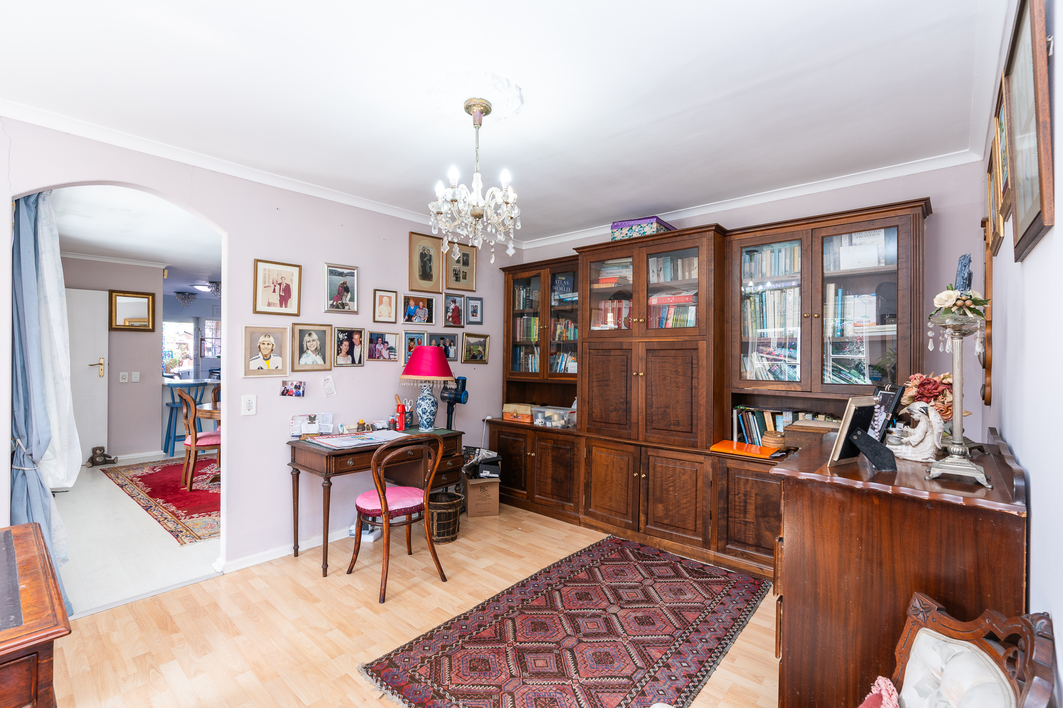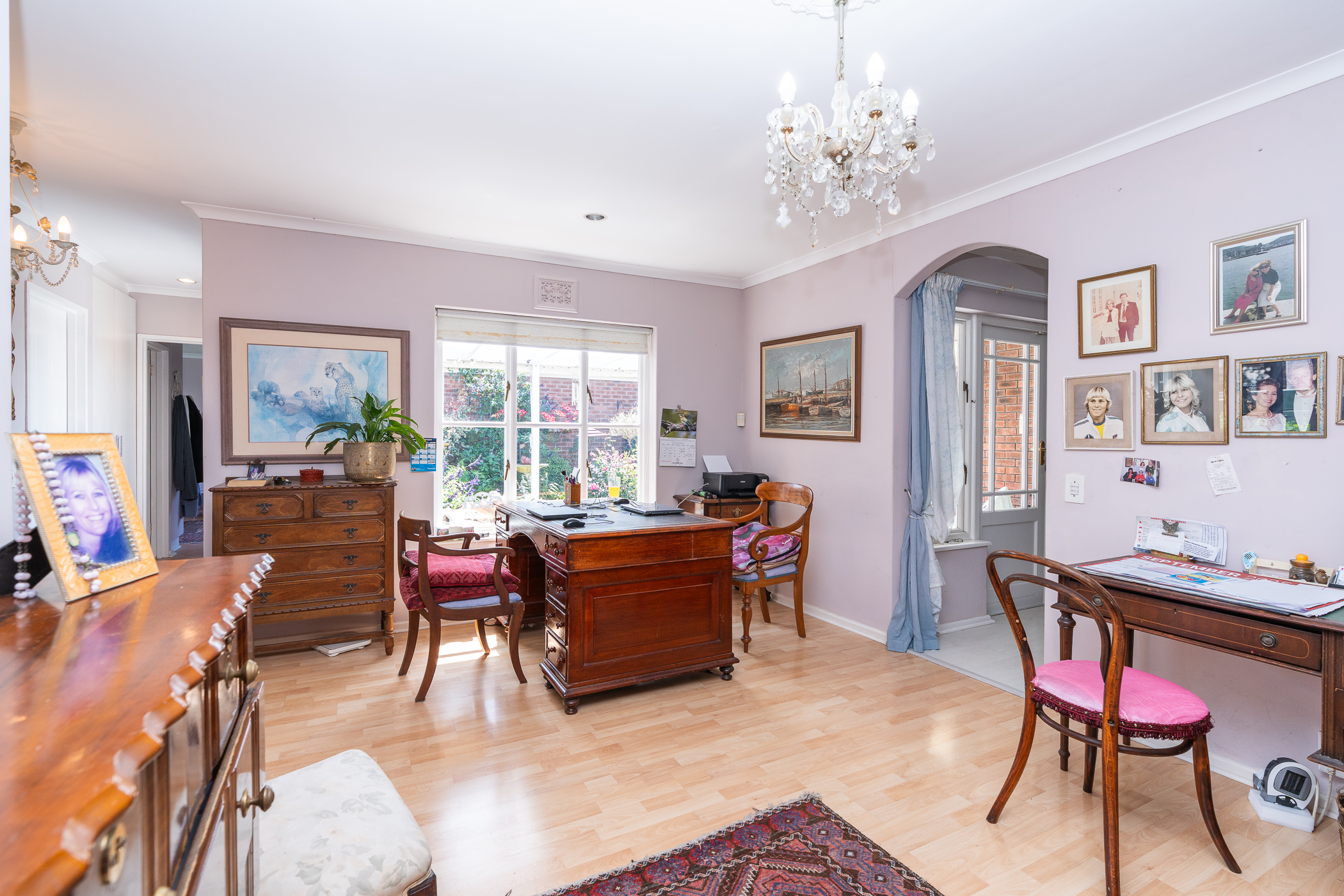 The open-plan dining and family rooms flow effortlessly through French doors to a covered patio and beautifully maintained garden — ideal for relaxed entertaining.