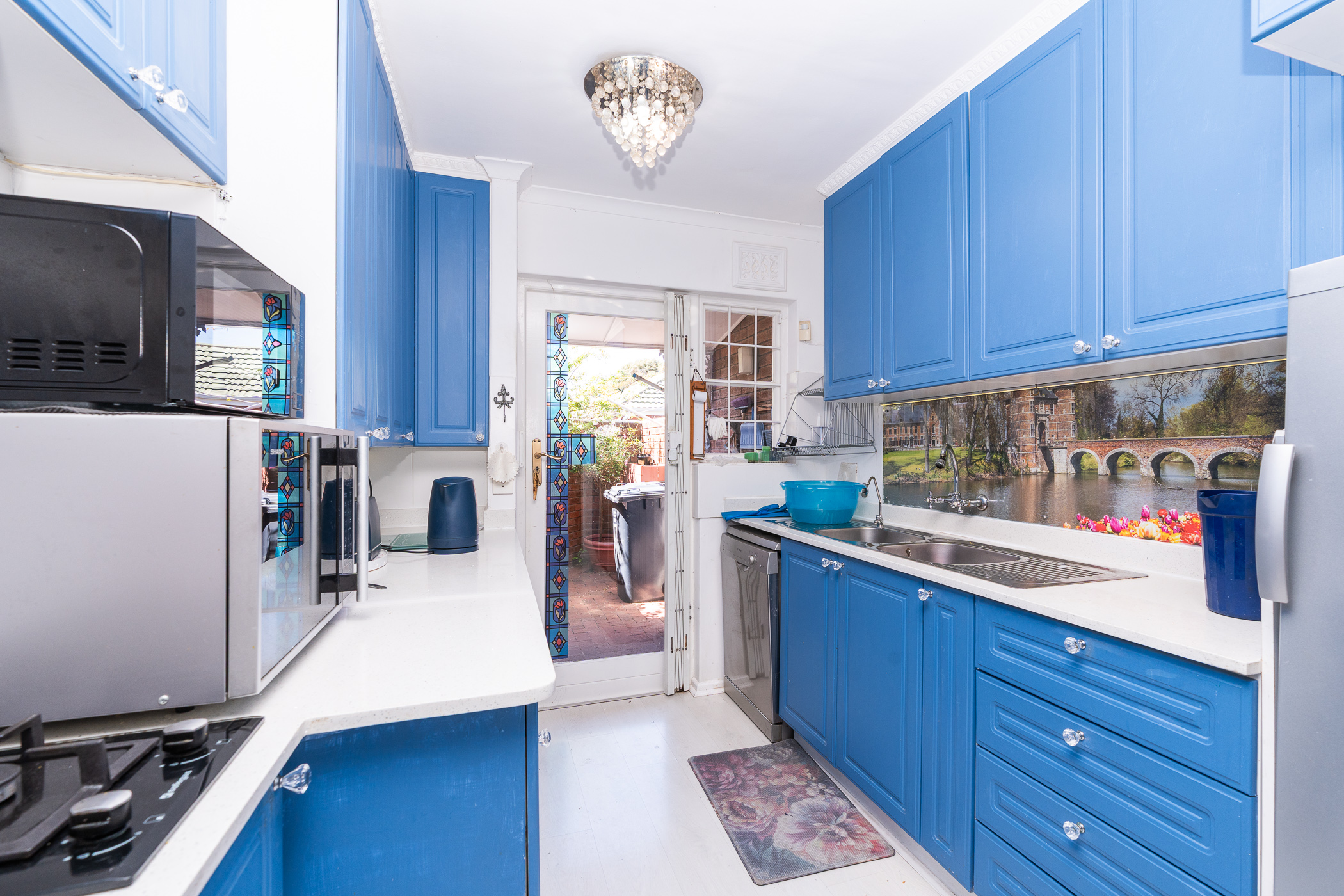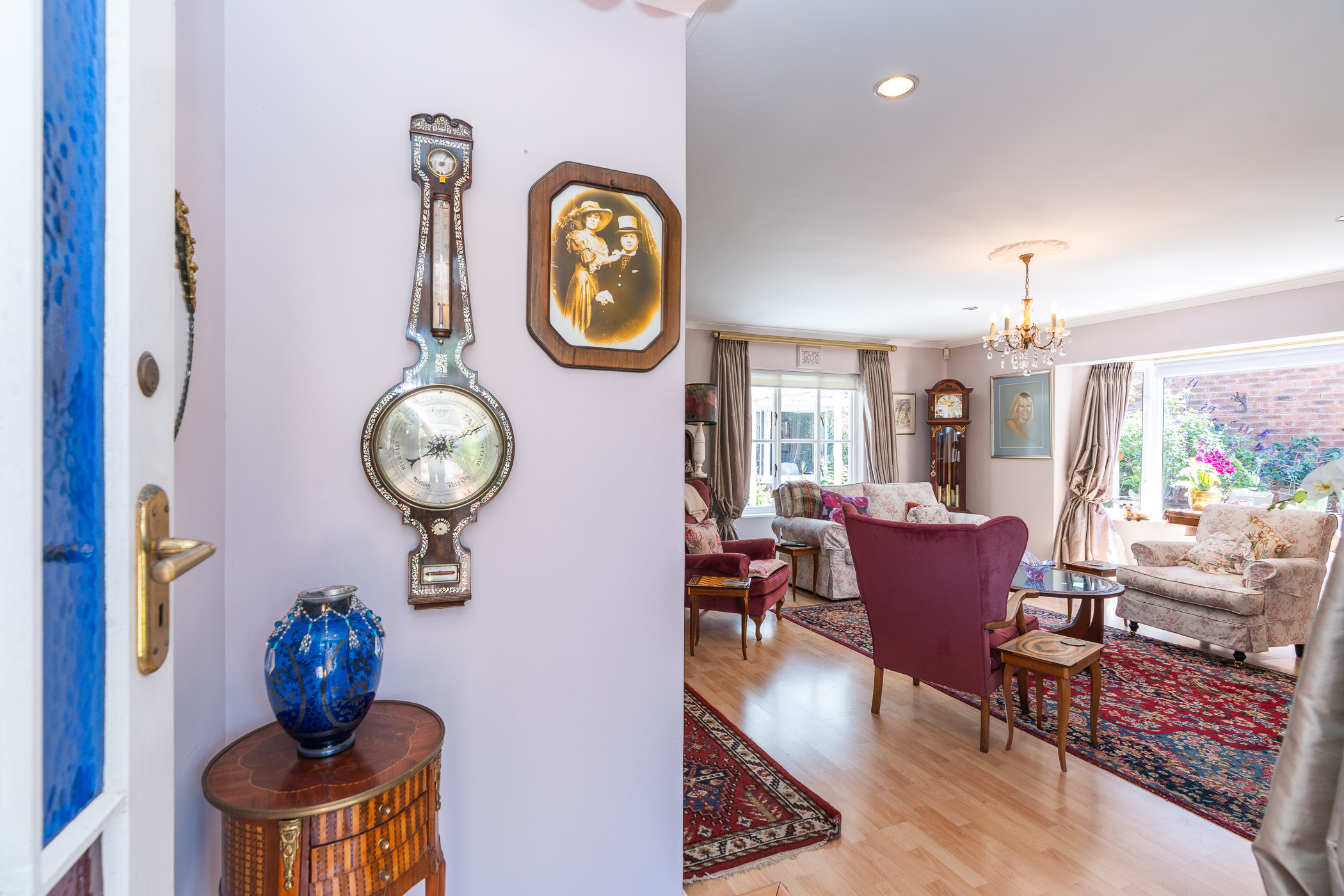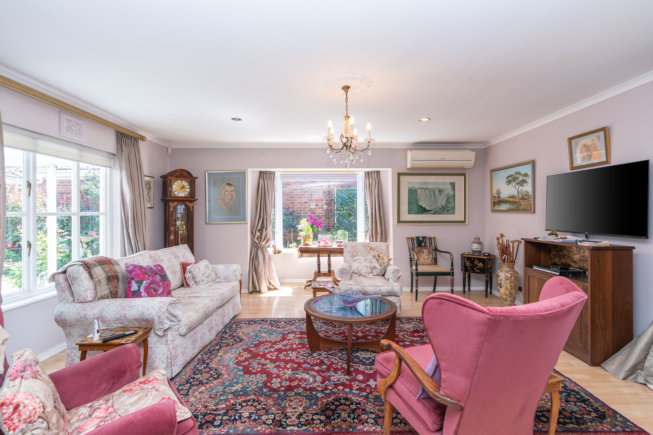 Accommodation includes three generous bedrooms and two bathrooms (main en-suite). The spacious main bedroom offers plenty of cupboard space and French doors opening to the private garden.