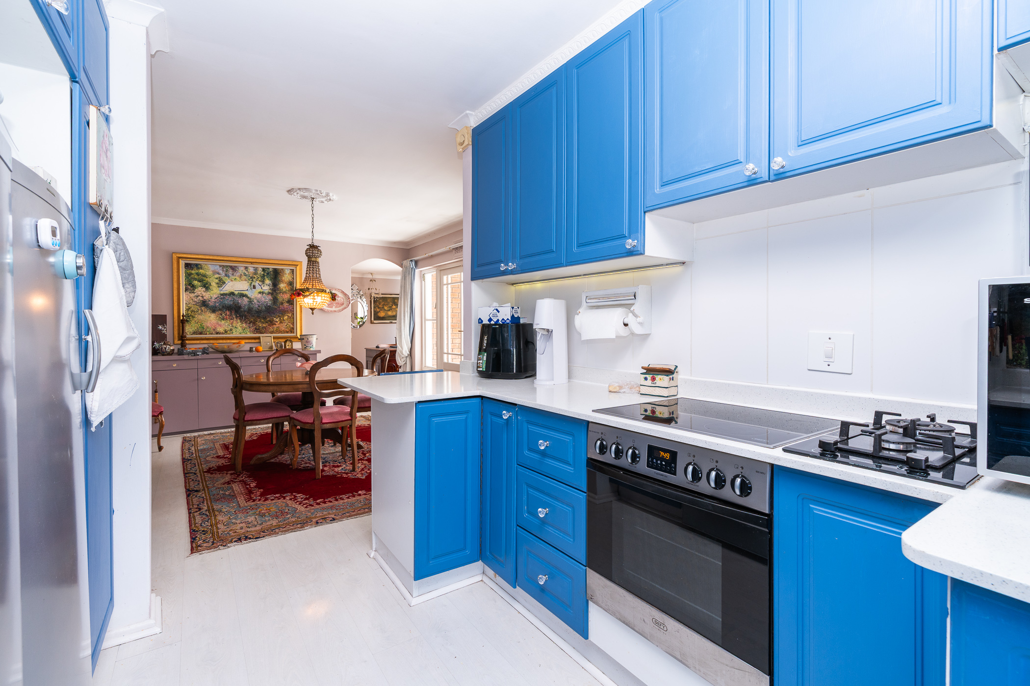 The entrance opens to a light-filled lounge with large windows overlooking a tranquil central courtyard. A well-appointed galley kitchen features ample built-in cupboards, is plumbed for a dishwasher, and leads out to a neat walled courtyard.
