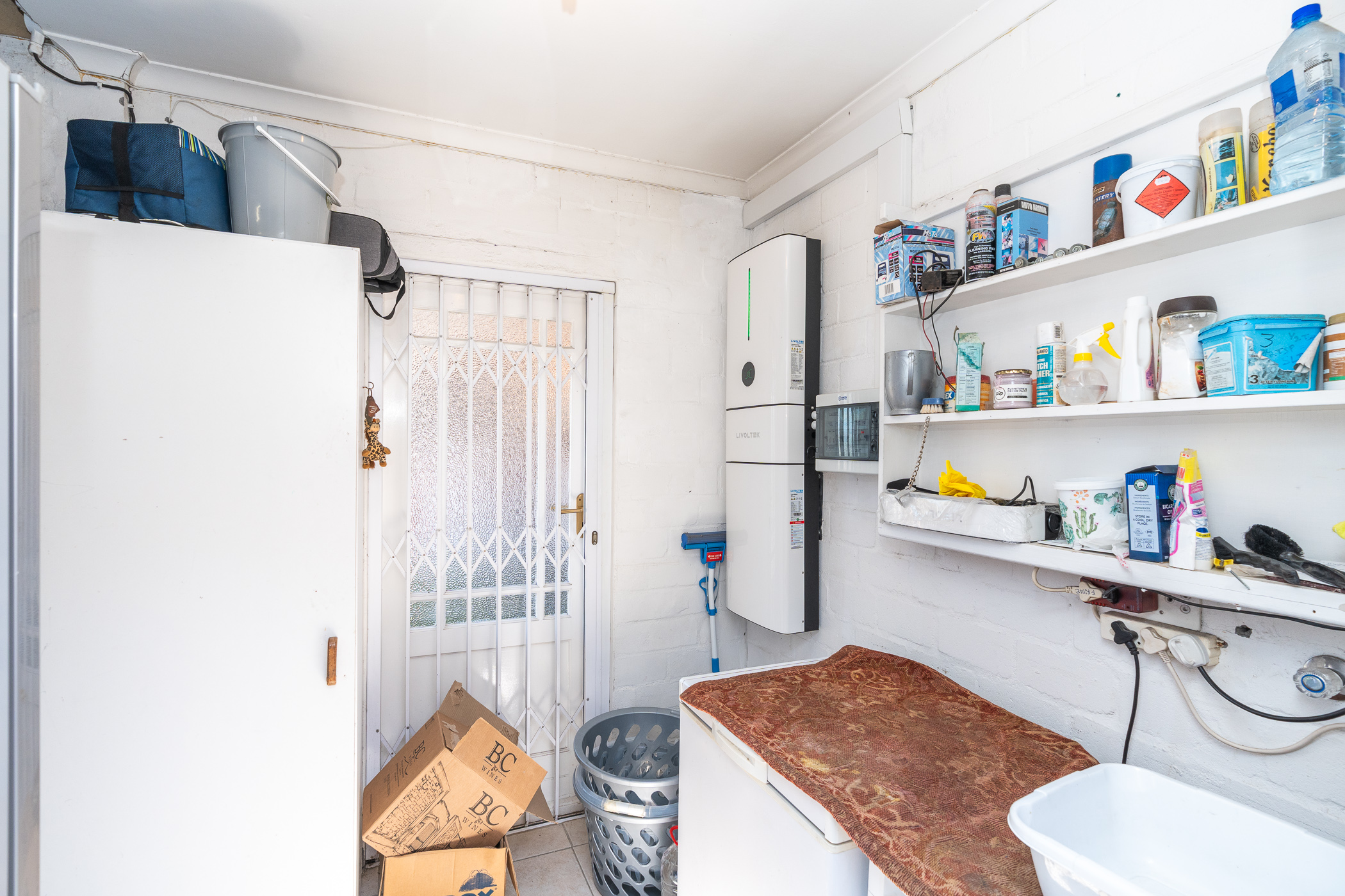 The double garage offers a separate laundry area which is plumbed for a washing machine, with additional off-street parking for two vehicles in front.