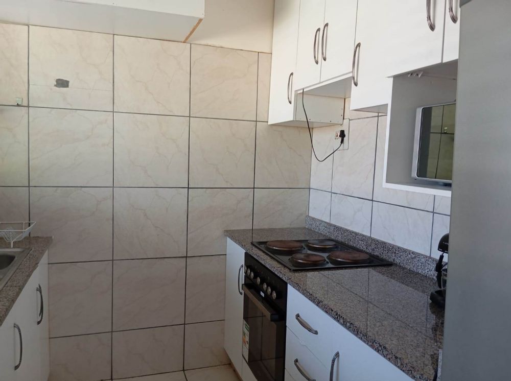This convenient first floor flat offers a comfortable and spacious living space with two airy bedrooms with built-in cupboards and DSTV connections and one modern bathroom with a bath, toilet, basin and shower.