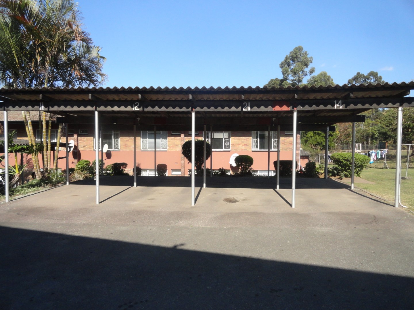 Undercover parking for one vehicle and open parking for second vehicle and visitors.