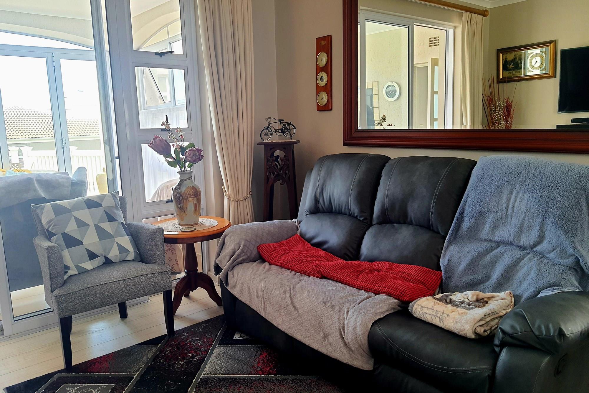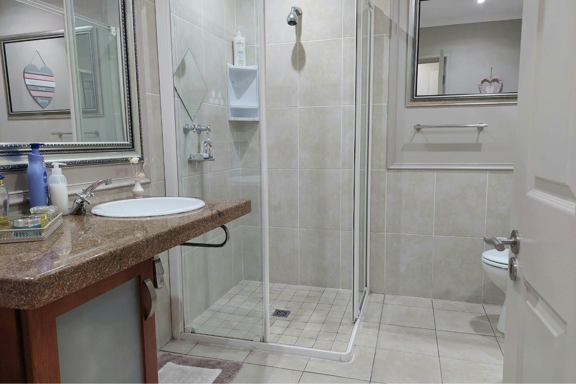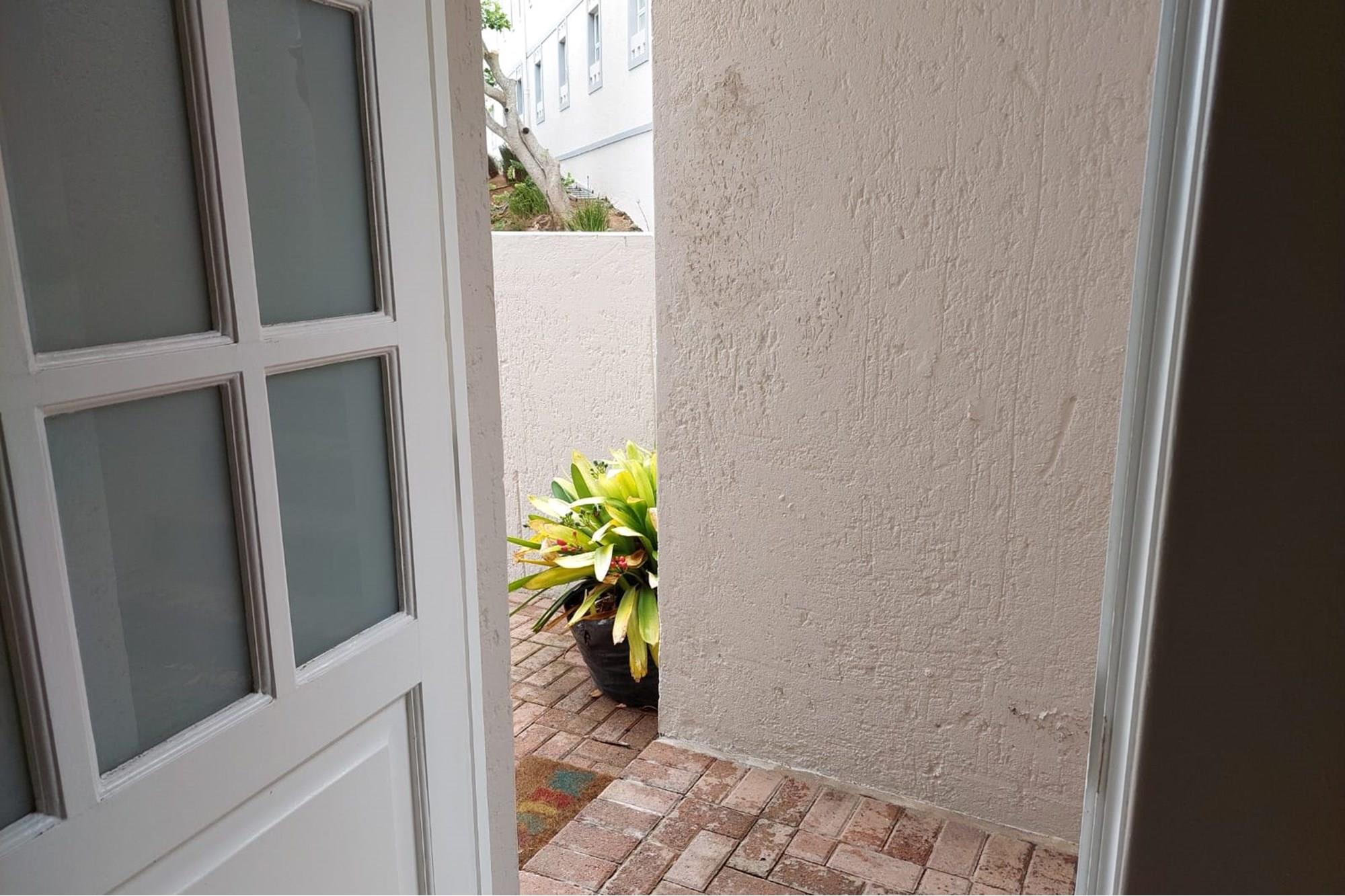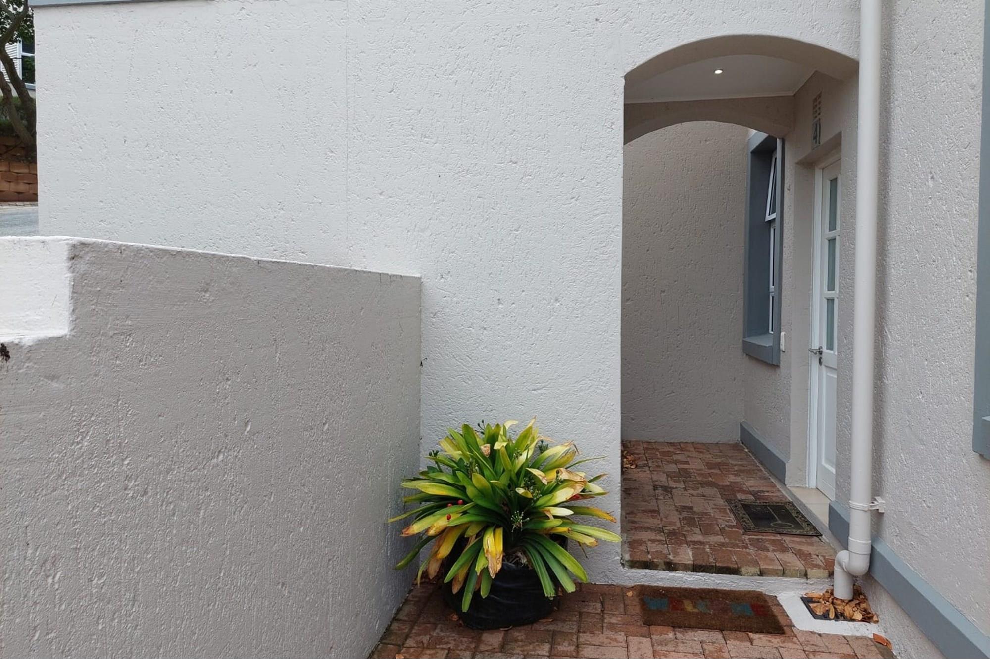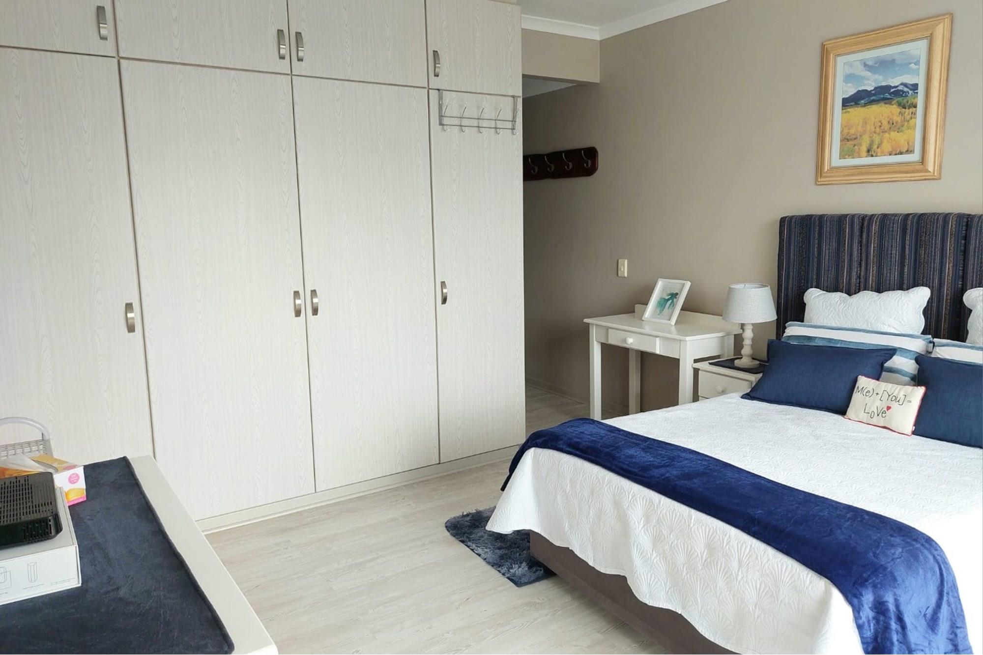 The open-plan dining room and lounge are bathed in natural light, seamlessly connecting to a braai room with a built-in braai and expansive glass doors that can be closed for an intimate indoor braai experience. Exiting the braai room, you`ll discover an open patio, ensuring complete privacy without any walk-throughs, an idyllic area for relaxation. A most enjoyable feature is the communal garden that one has access to, fostering a feeling of space. Small pets are warmly welcomed while on a leash, adding to the cozy and welcoming atmosphere.