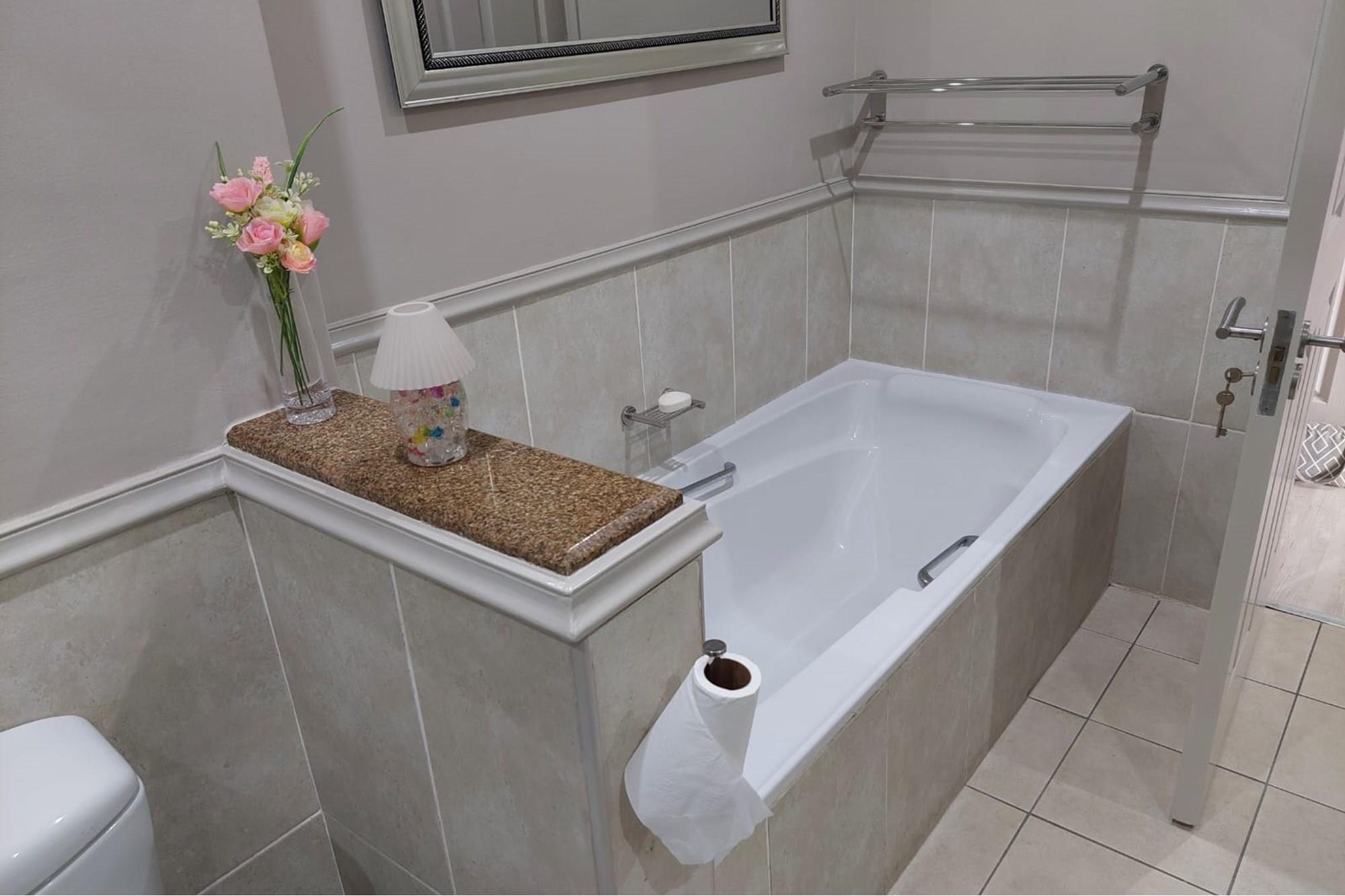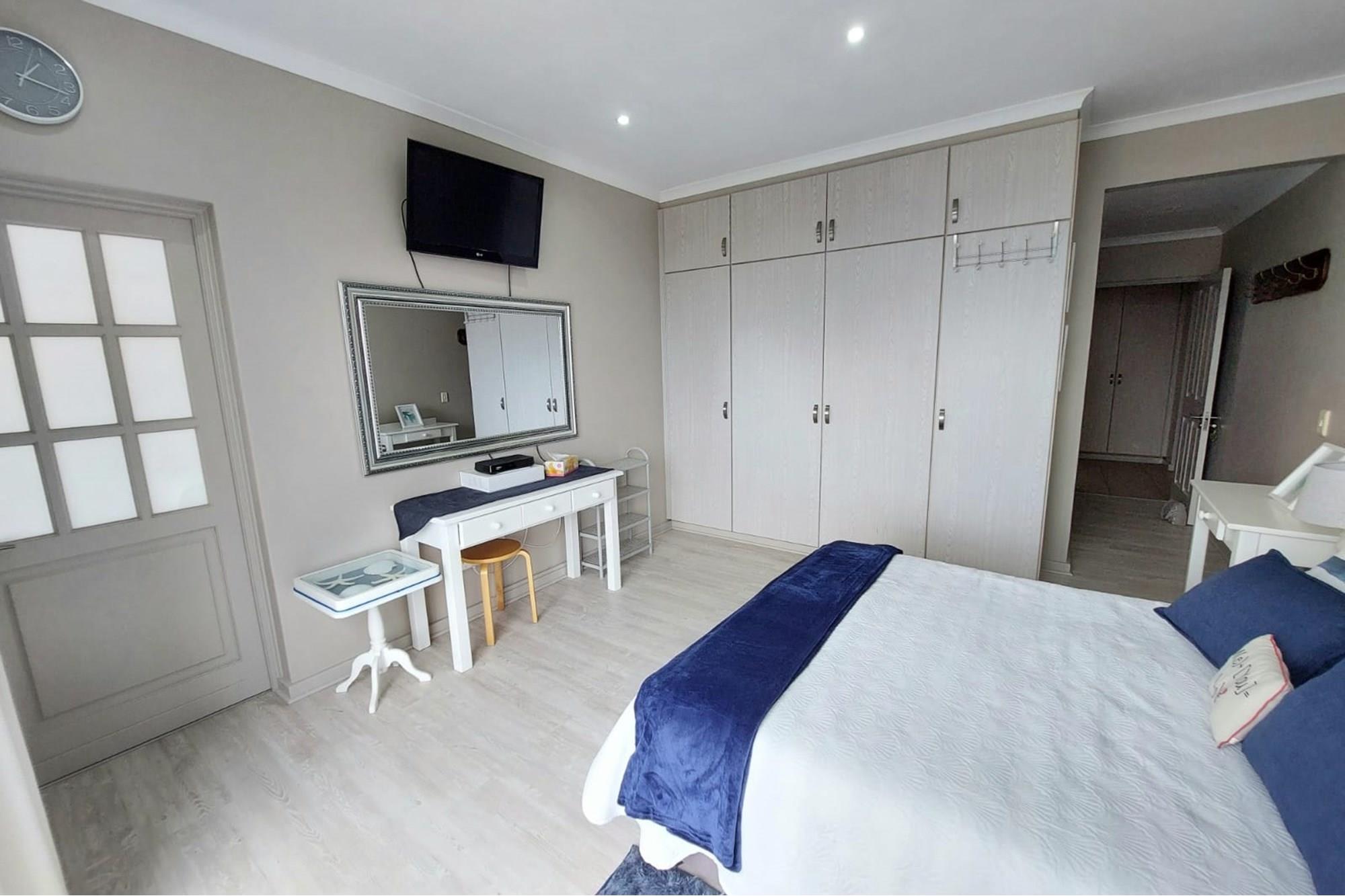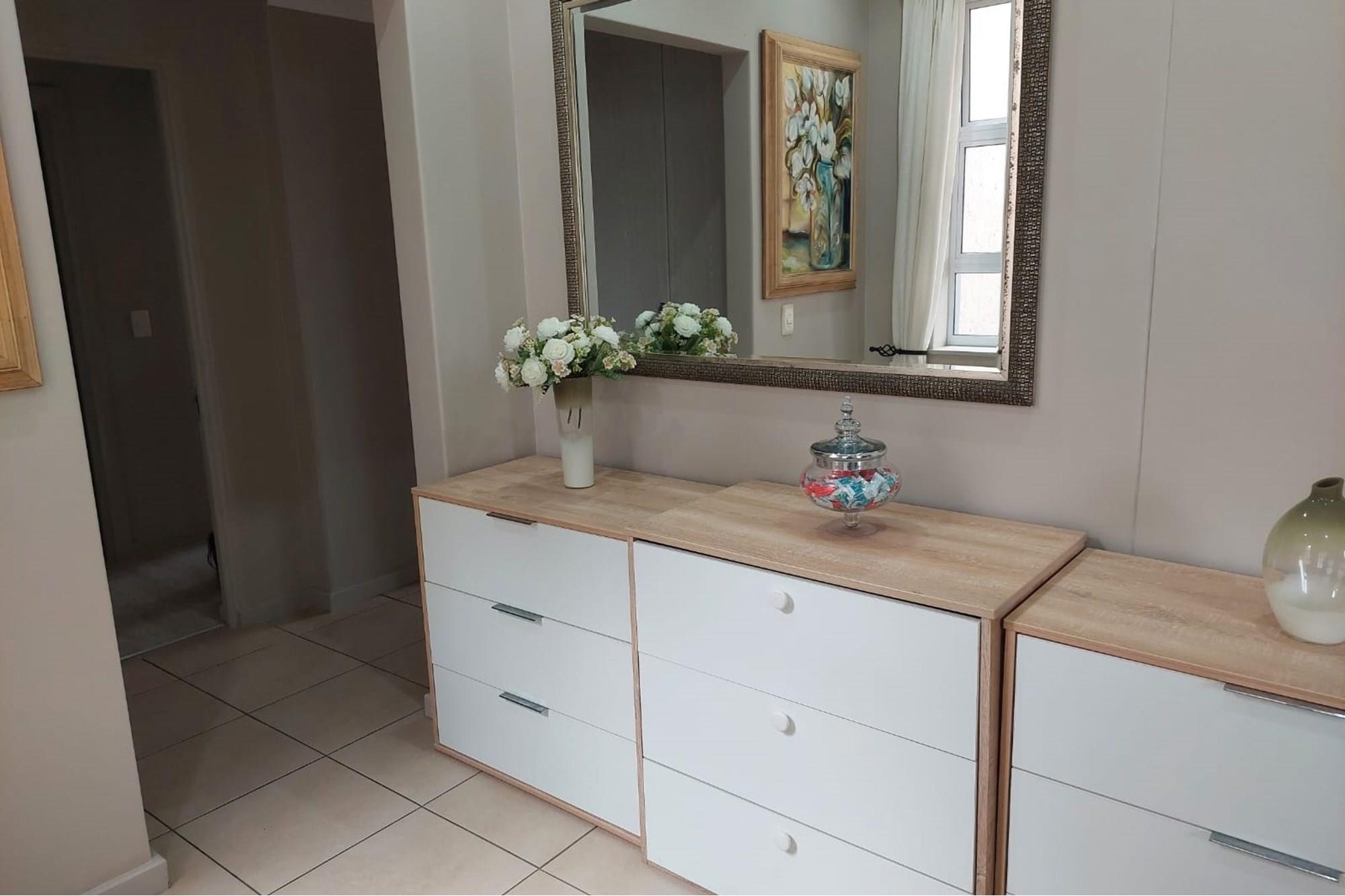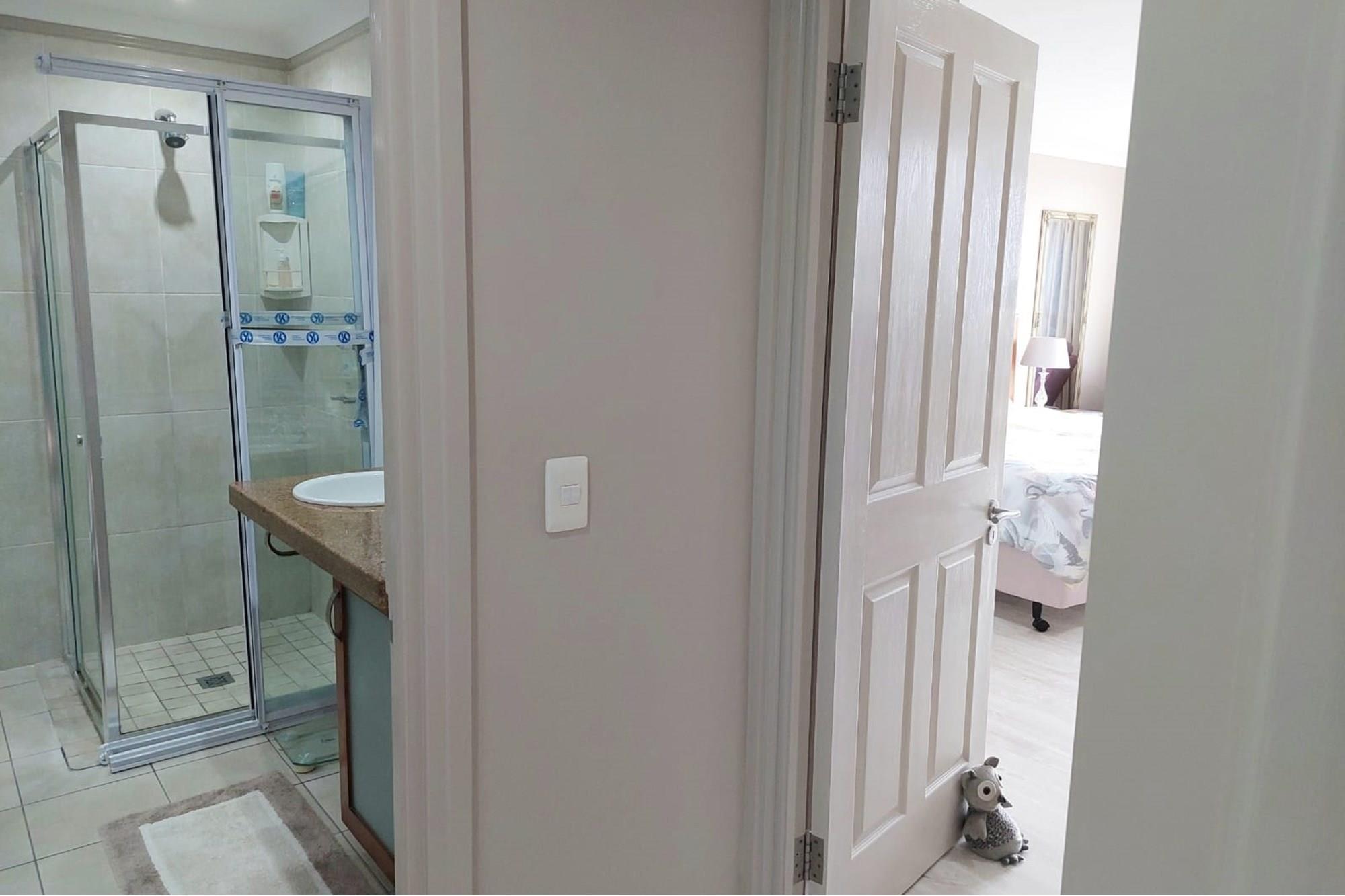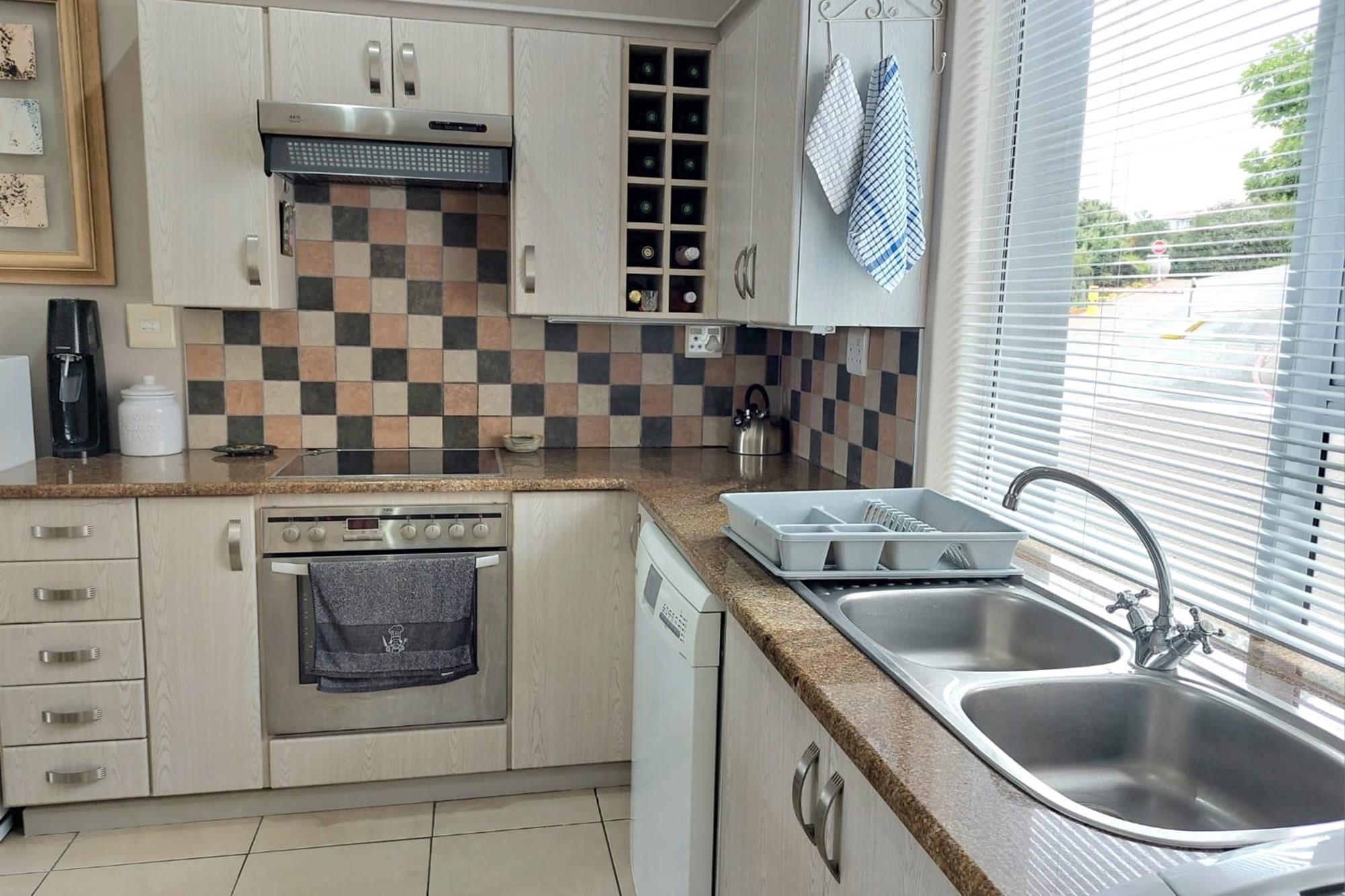 The open-plan dining room and lounge are bathed in natural light, seamlessly connecting to a braai room with a built-in braai and expansive glass doors that can be closed for an intimate indoor braai experience. Exiting the braai room, you`ll discover an open patio, ensuring complete privacy without any walk-throughs, an idyllic area for relaxation. A most enjoyable feature is the communal garden that one has access to, fostering a feeling of space. Small pets are warmly welcomed while on a leash, adding to the cozy and welcoming atmosphere.