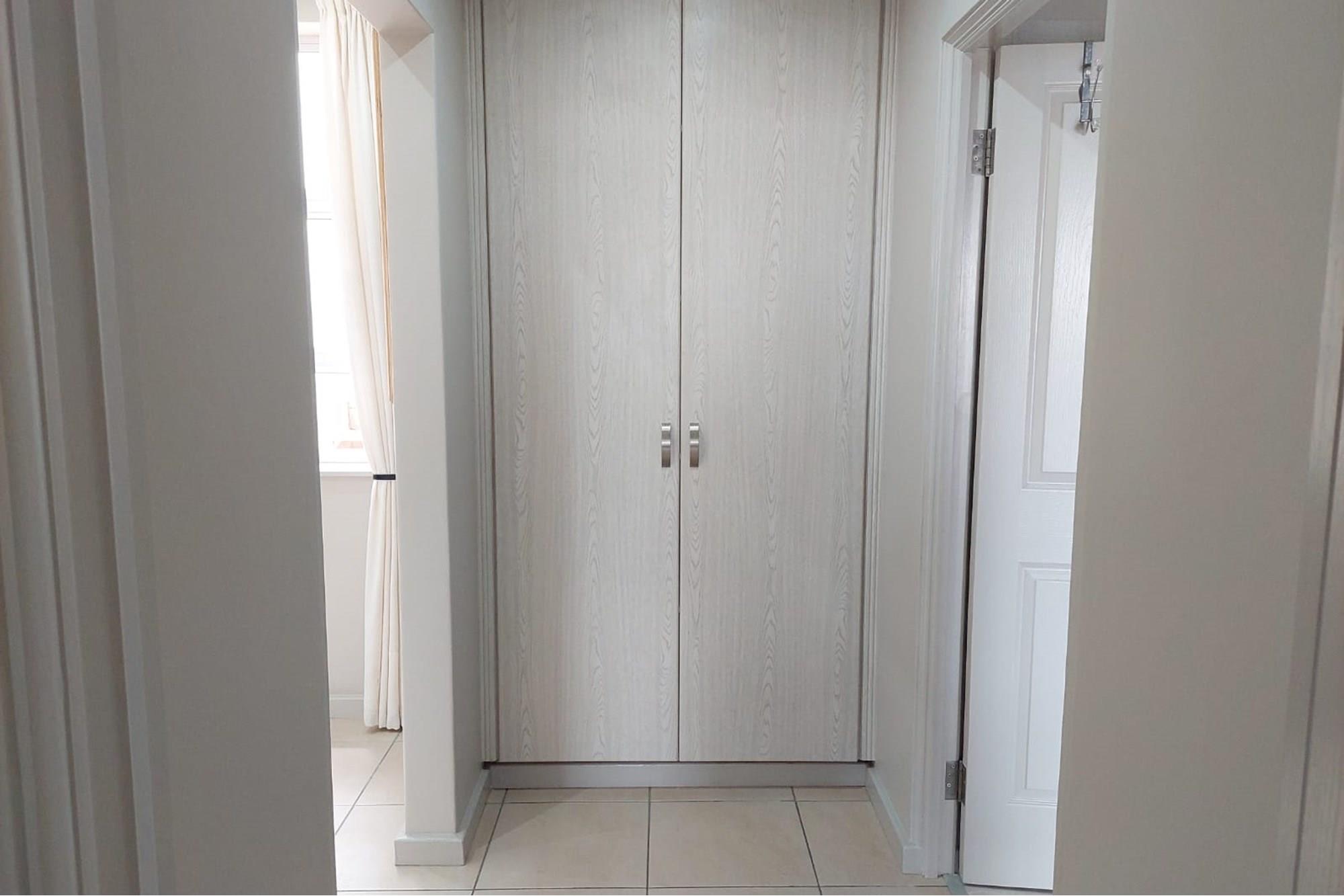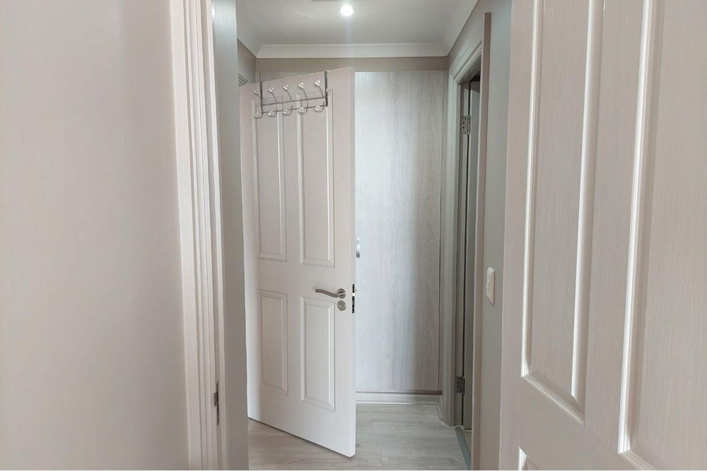 A welcoming entrance hall sets the stage for what lies ahead, leading you to a contemporary kitchen equipped with top-tier appliances, including an electric stove, oven, extractor fan, and dishwasher—turning culinary endeavors into a seamless and enjoyable experience.