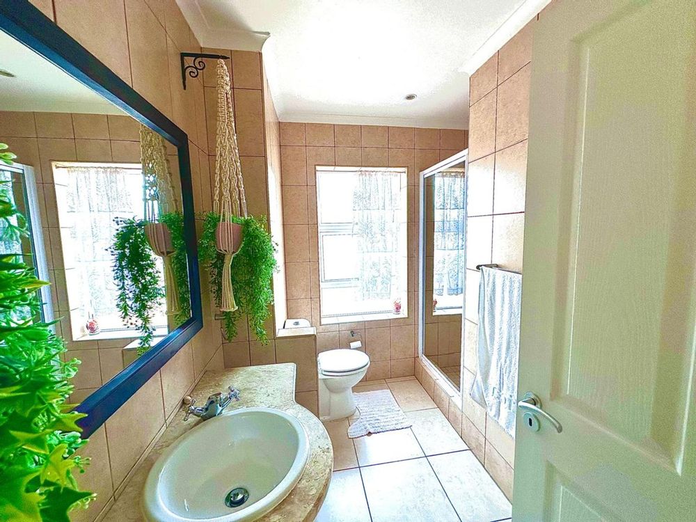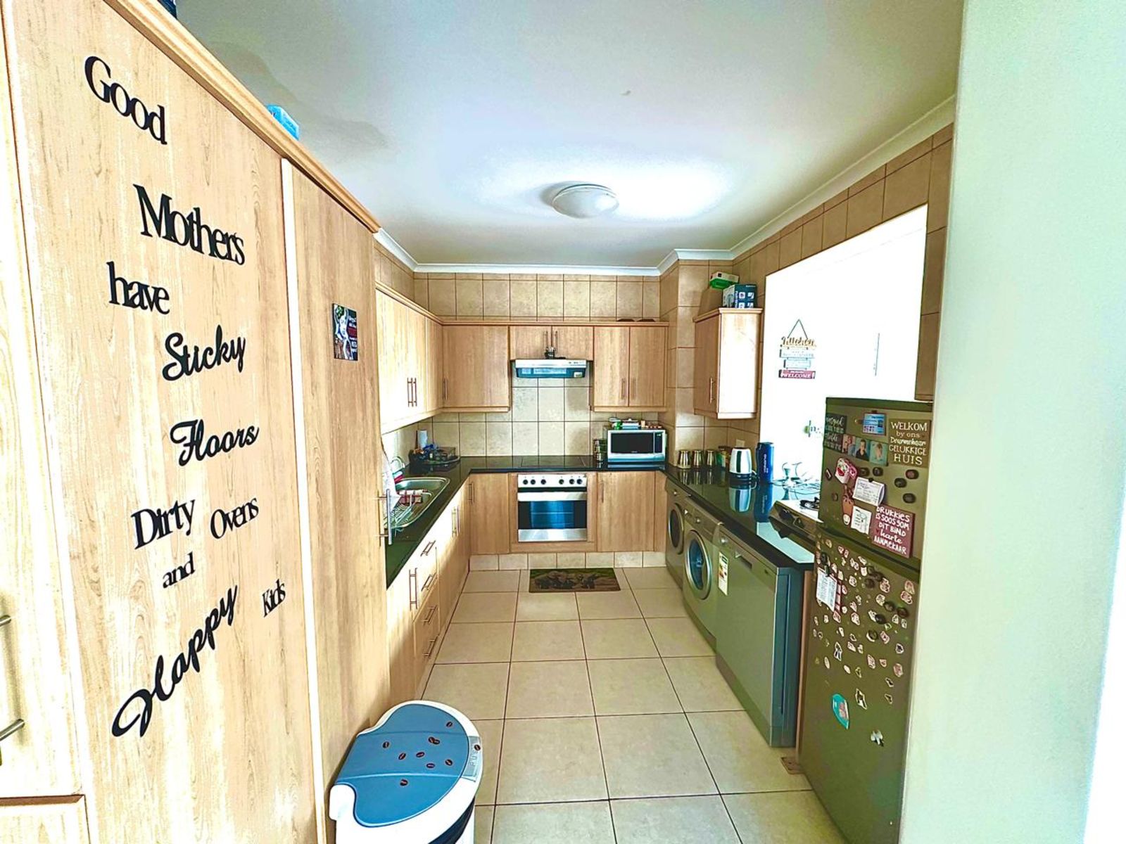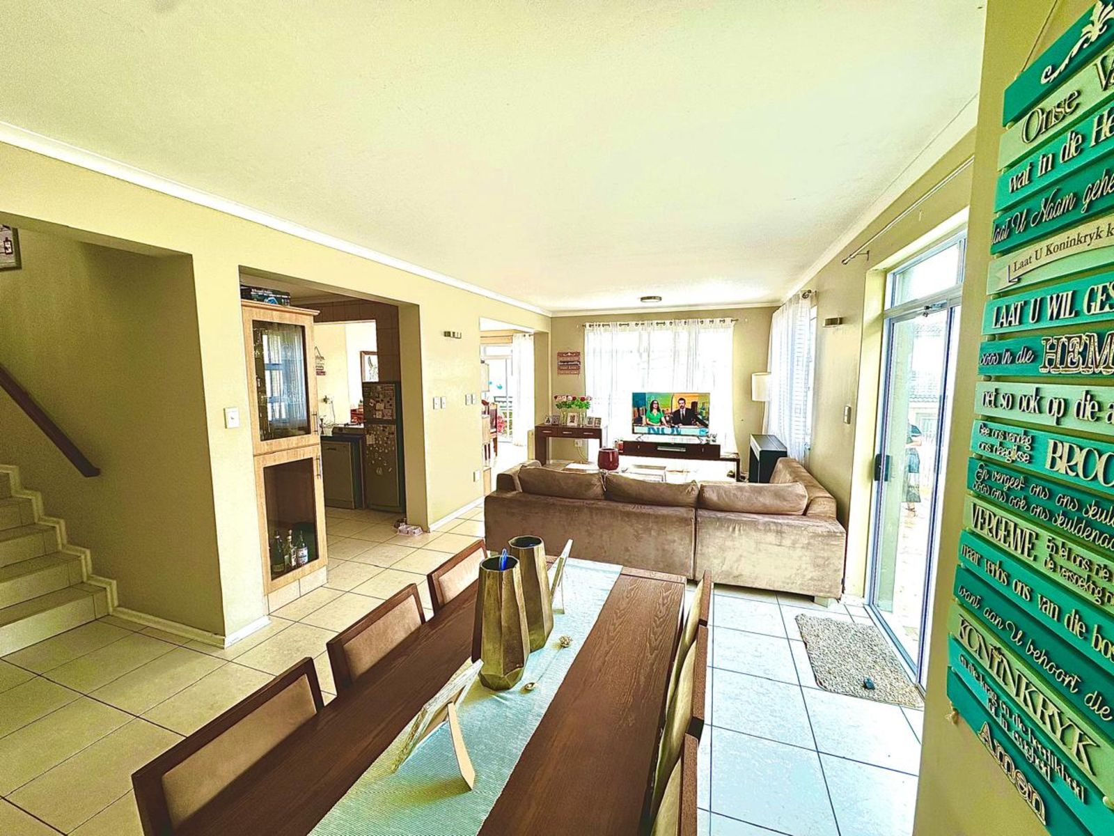 Inside, the property features four well-sized bedrooms. Three of the bedrooms have en-suite bathrooms, while an additional guest toilet is available. The open-plan living area seamlessly combines the TV/lounge and dining spaces. The built-in braai (barbecue) area enhances the open layout, perfect for hosting guests, with sliding doors that lead to the patio for a true indoor-outdoor living experience. The modern kitchen, complete with granite countertops, flows into the dining and lounge areas, adding both style and functionality to the home.