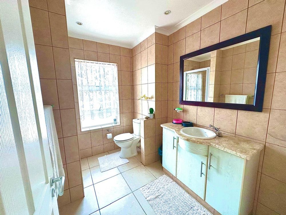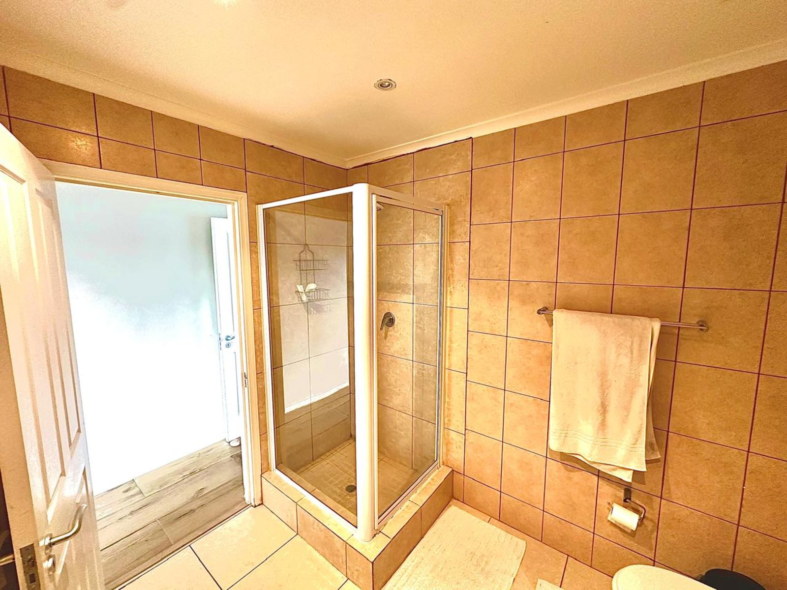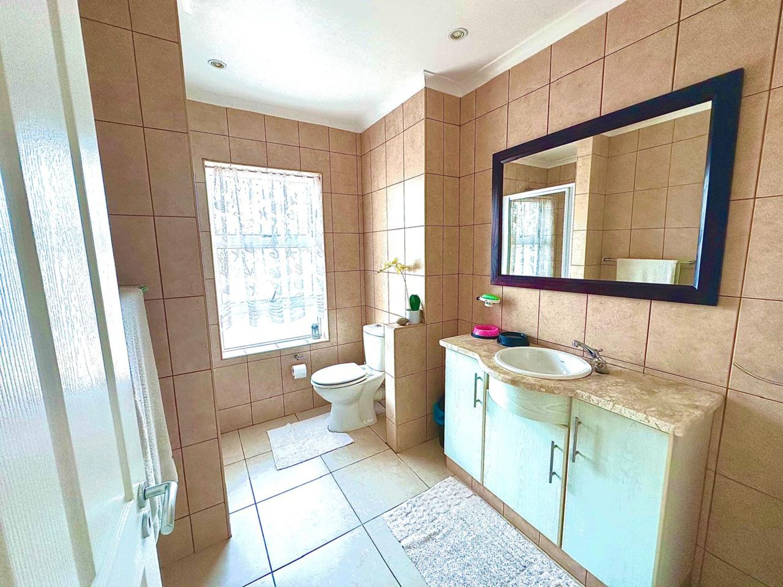 Inside, the property features four well-sized bedrooms. Three of the bedrooms have en-suite bathrooms, while an additional guest toilet is available. The open-plan living area seamlessly combines the TV/lounge and dining spaces. The built-in braai (barbecue) area enhances the open layout, perfect for hosting guests, with sliding doors that lead to the patio for a true indoor-outdoor living experience. The modern kitchen, complete with granite countertops, flows into the dining and lounge areas, adding both style and functionality to the home.