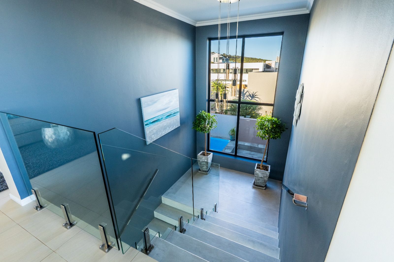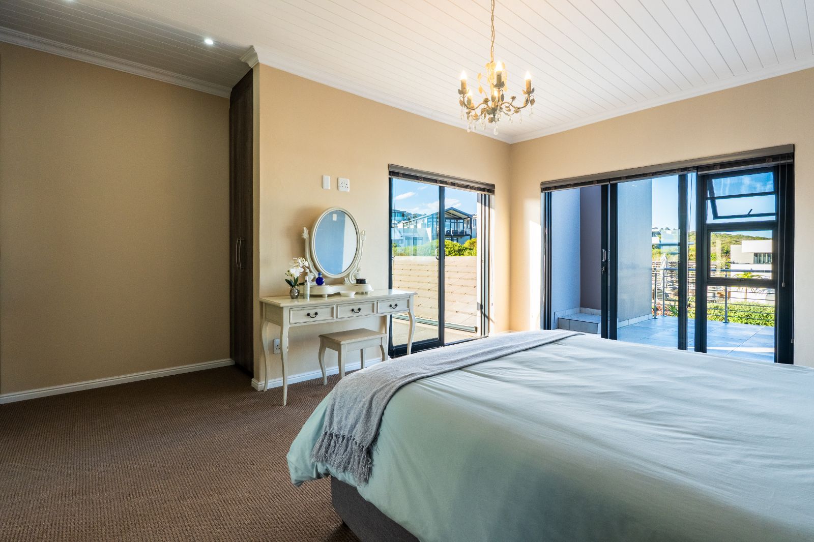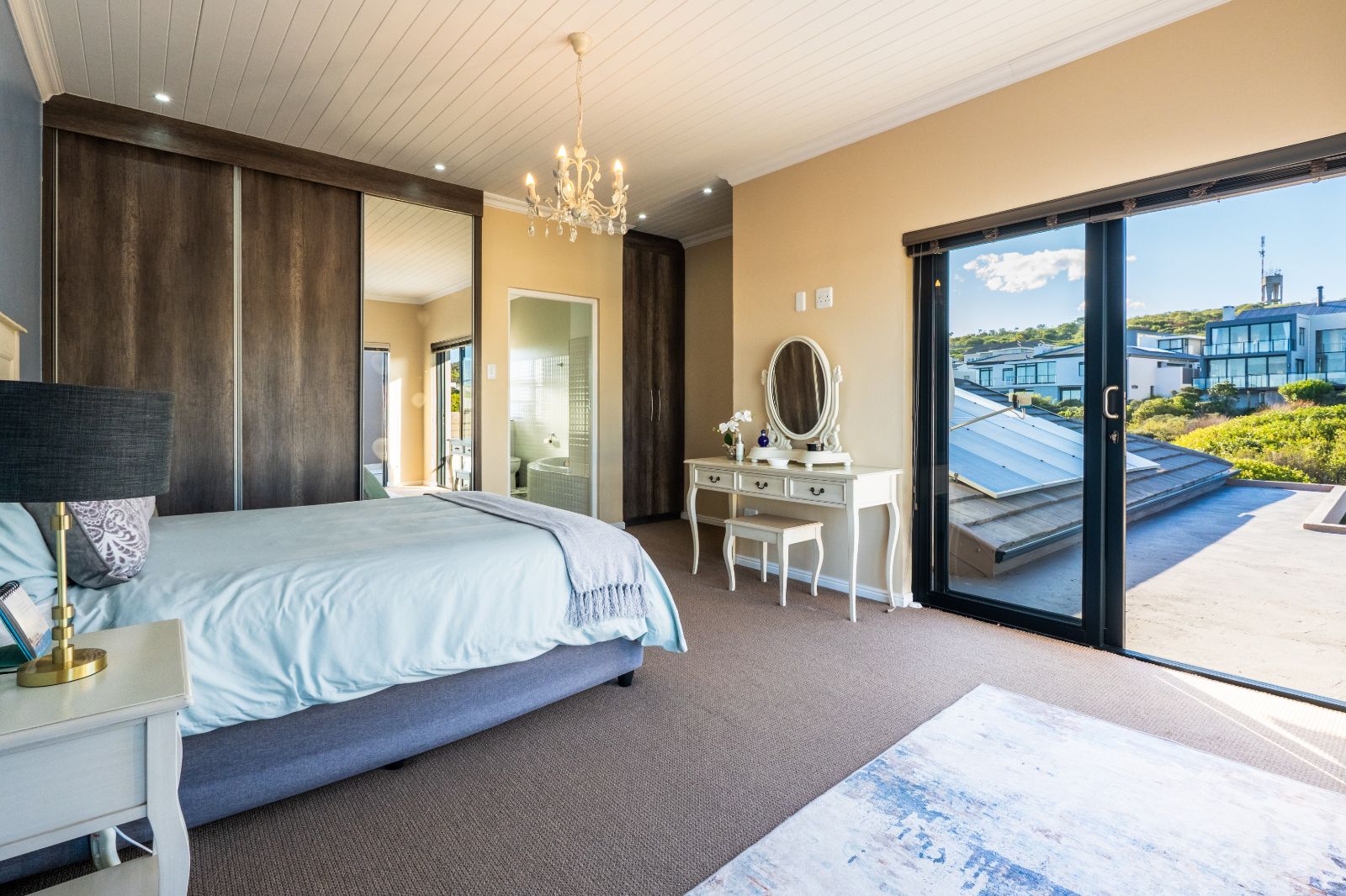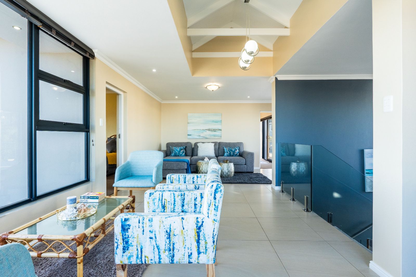 Two spacious en-suite bedrooms with built-in cupboards are conveniently located on the ground floor. Upstairs, a second lounge leads onto a large balcony, where sweeping ocean views set the stage for unforgettable sunsets or al fresco dining. The upper level also includes two more bedrooms, each with its own en-suite bathroom.