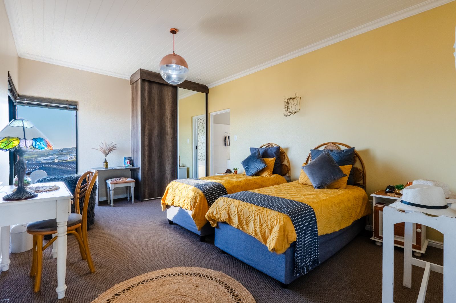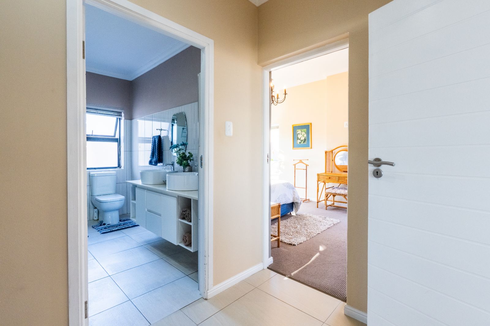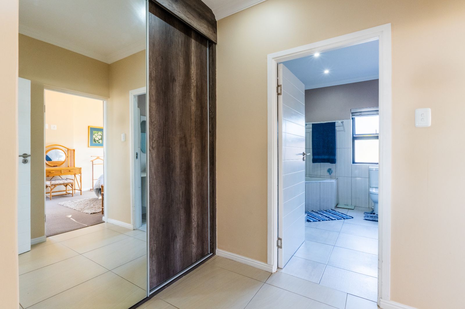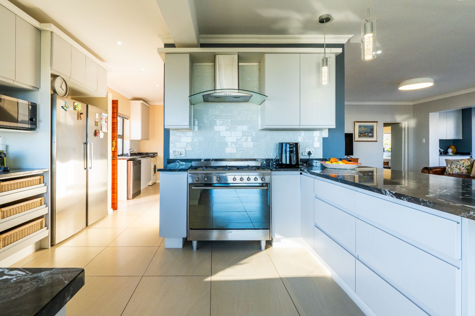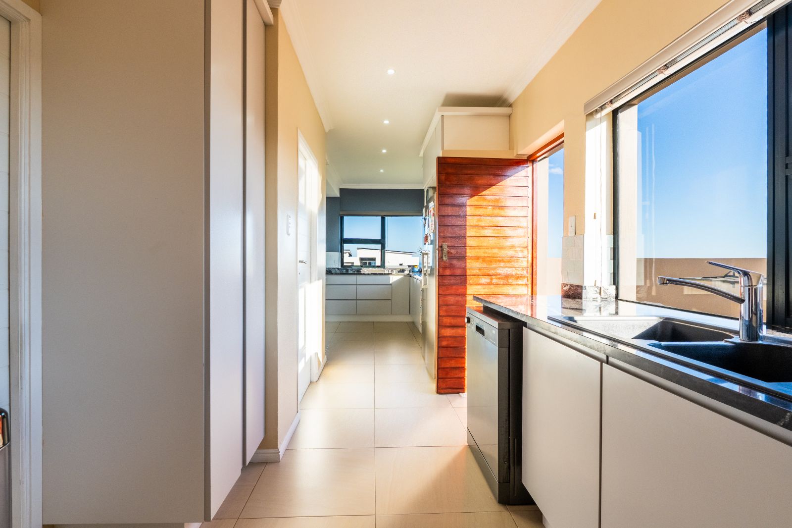 Two spacious en-suite bedrooms with built-in cupboards are conveniently located on the ground floor. Upstairs, a second lounge leads onto a large balcony, where sweeping ocean views set the stage for unforgettable sunsets or al fresco dining. The upper level also includes two more bedrooms, each with its own en-suite bathroom.