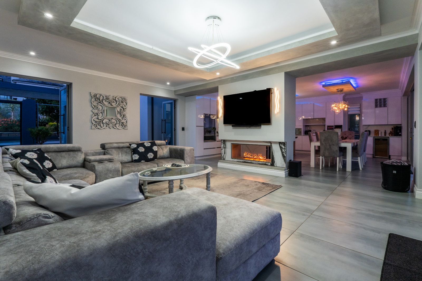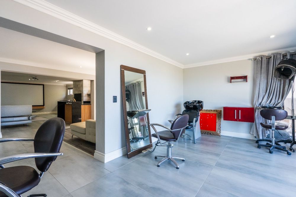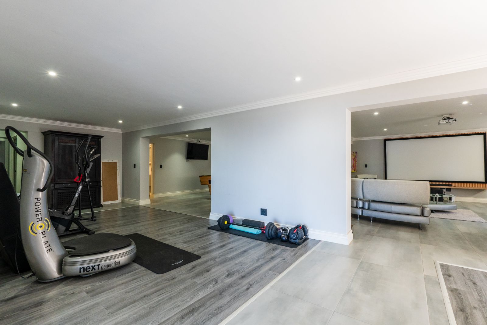 Ground Level – Ultimate Entertainment & Wellness Designed for leisure and entertainment, the ground floor features a private cinema, a large entertainment lounge with a bar, pool table, built-in braai, and dining area with a projector setup. There’s also a fully equipped gym, sauna, salon space, and butler’s quarters. Step outside to a manicured lawn with a boma area — ideal for evening gatherings under the stars.