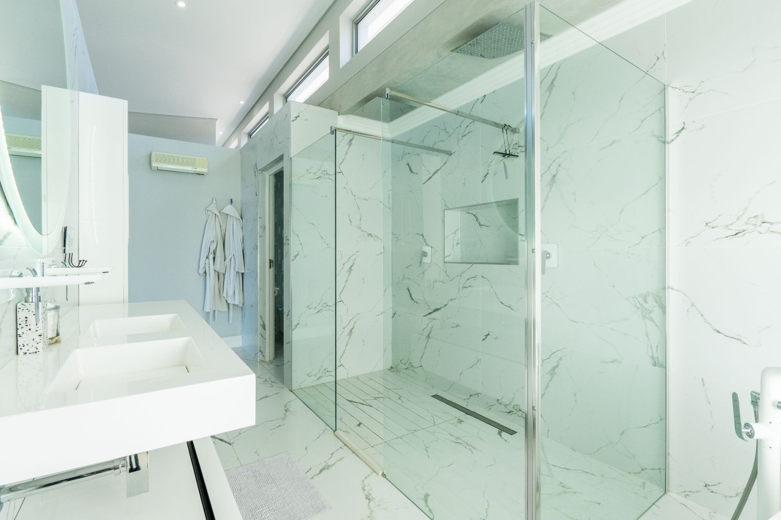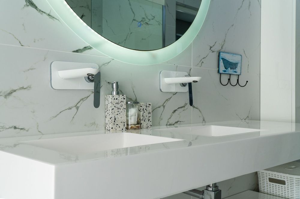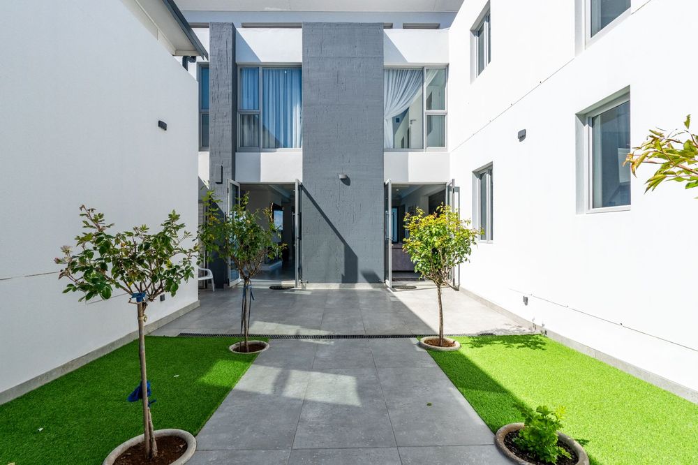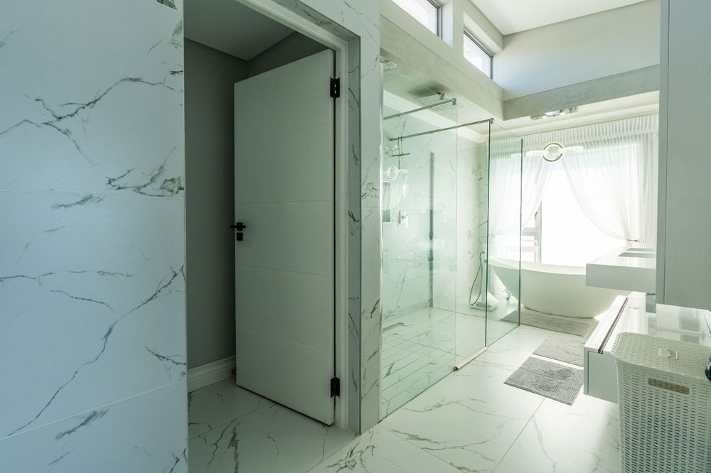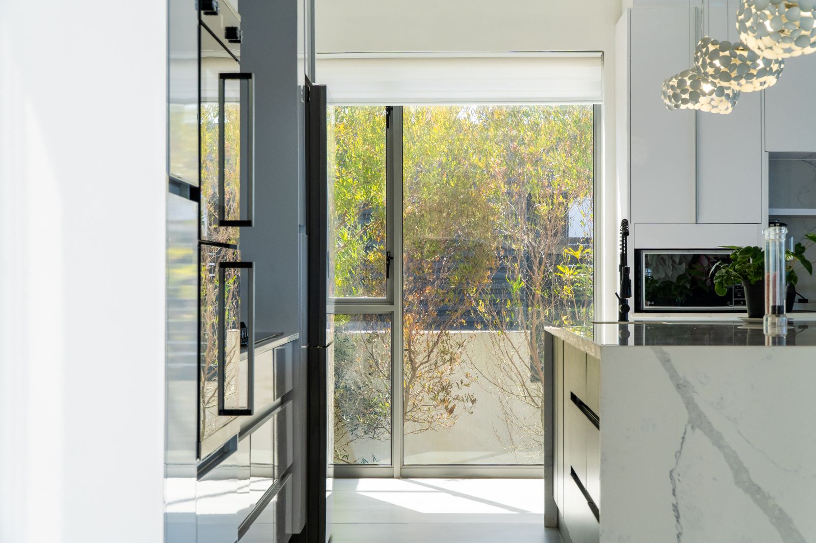 First Level – Elegant Everyday Living Arriving at the home, you’re welcomed by two double garages on either side and a stylish entrance leading through a serene courtyard to the front door. Inside, the open-plan living, dining, and kitchen areas exude calm elegance. The kitchen features a large marble-topped island, sleek cabinetry, a generous scullery, and a walk-in pantry — perfect for effortless entertaining.