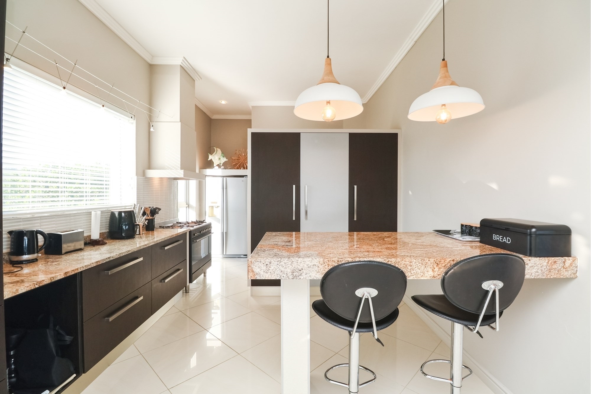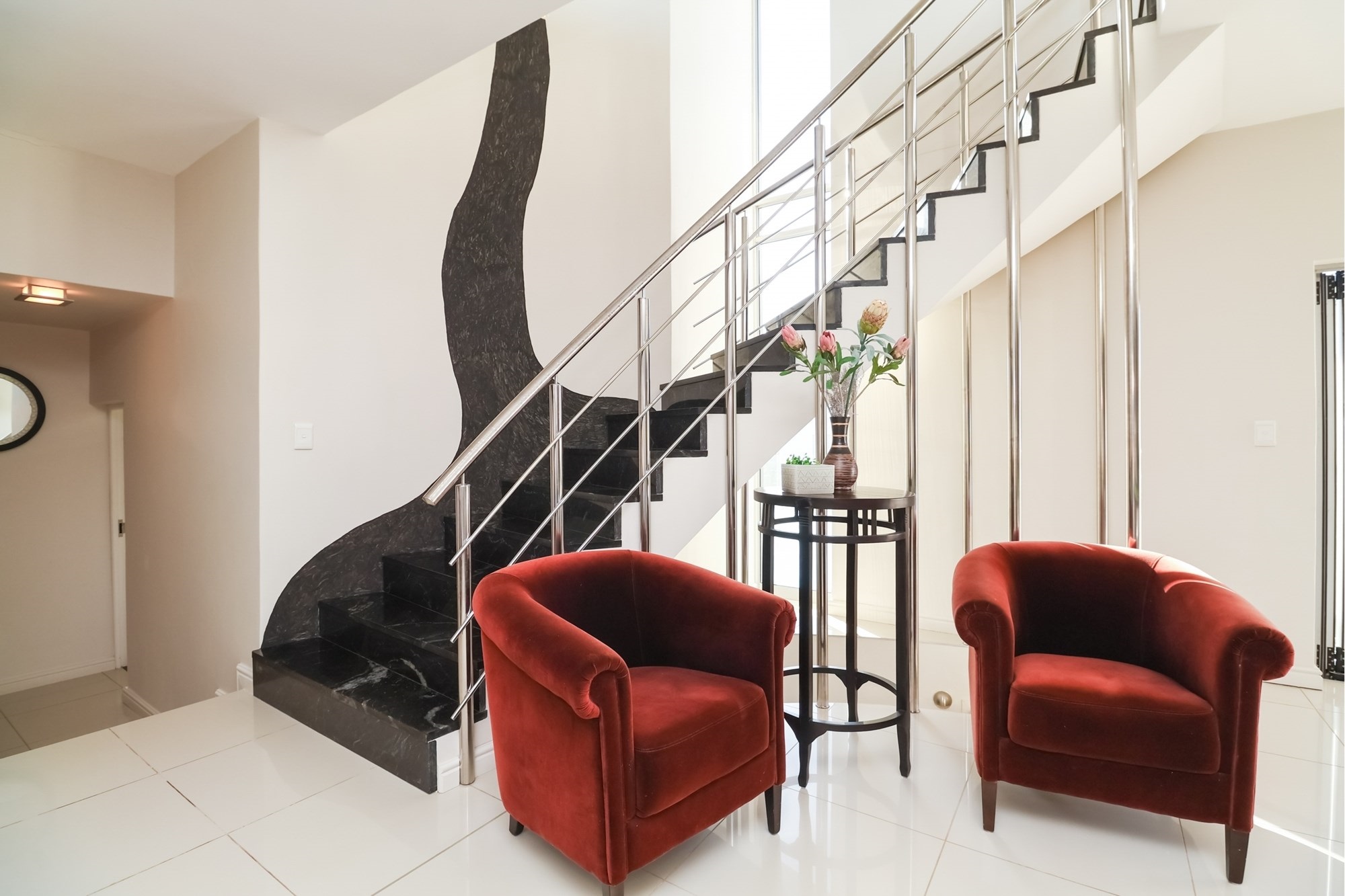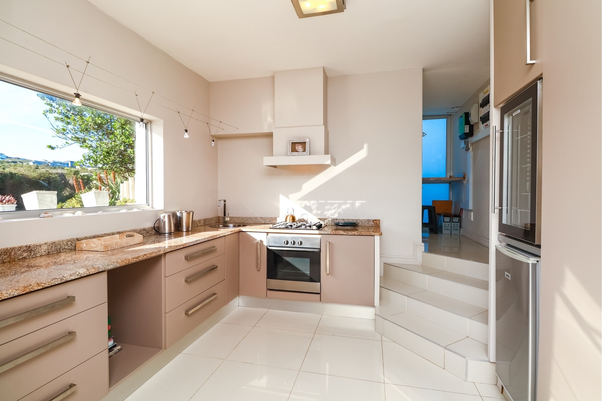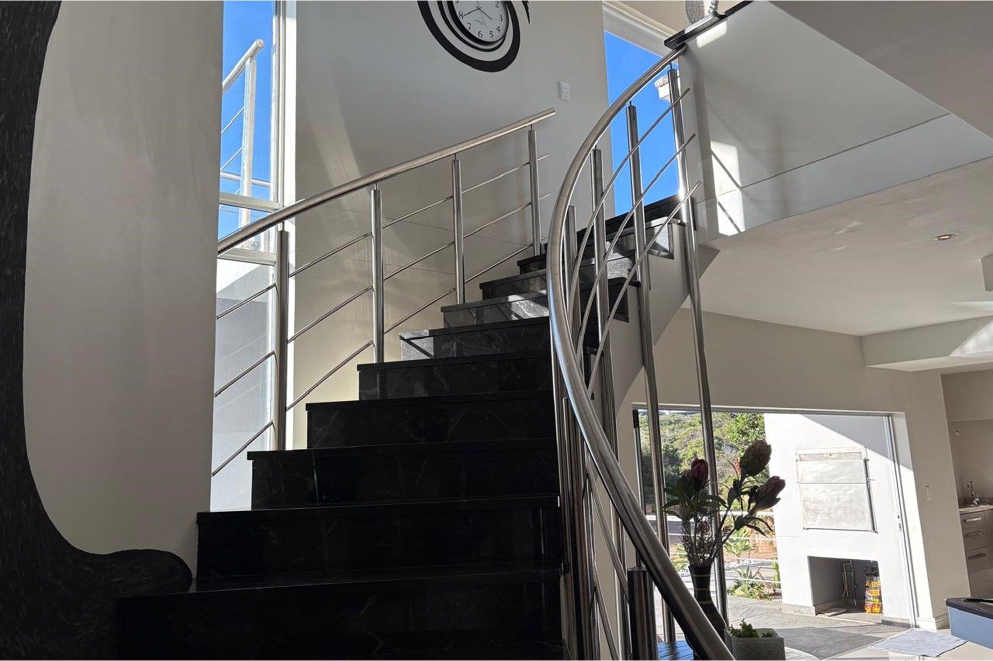 As you step inside, you are greeted by a spacious open-plan entertainment area that features a custom-built bar, a pool table, and a striking architectural granite-topped helical staircase that serves as a captivating centerpiece. Fold-away stacker doors seamlessly connect the interior to an expansive outdoor entertainment space, where a sparkling rim-flow pool overlooks the mesmerizing Indian Ocean and the lush fairways of the award-winning golf course. The ground floor includes a modern gourmet kitchen with a wine cooler and separate scullery, as well as three comfortable bedrooms, two of which are en-suite and offer uninterrupted sea views.
