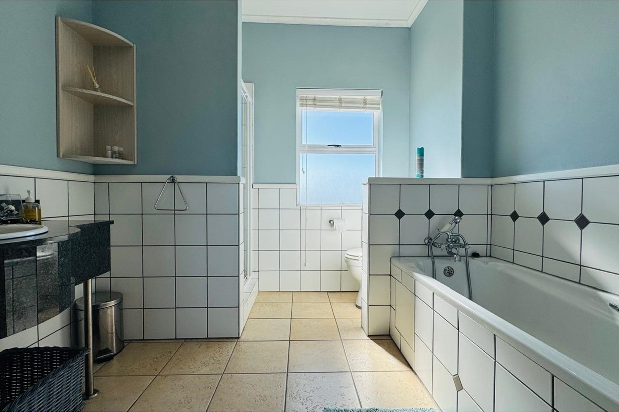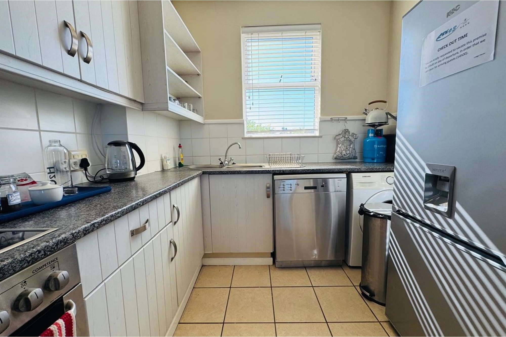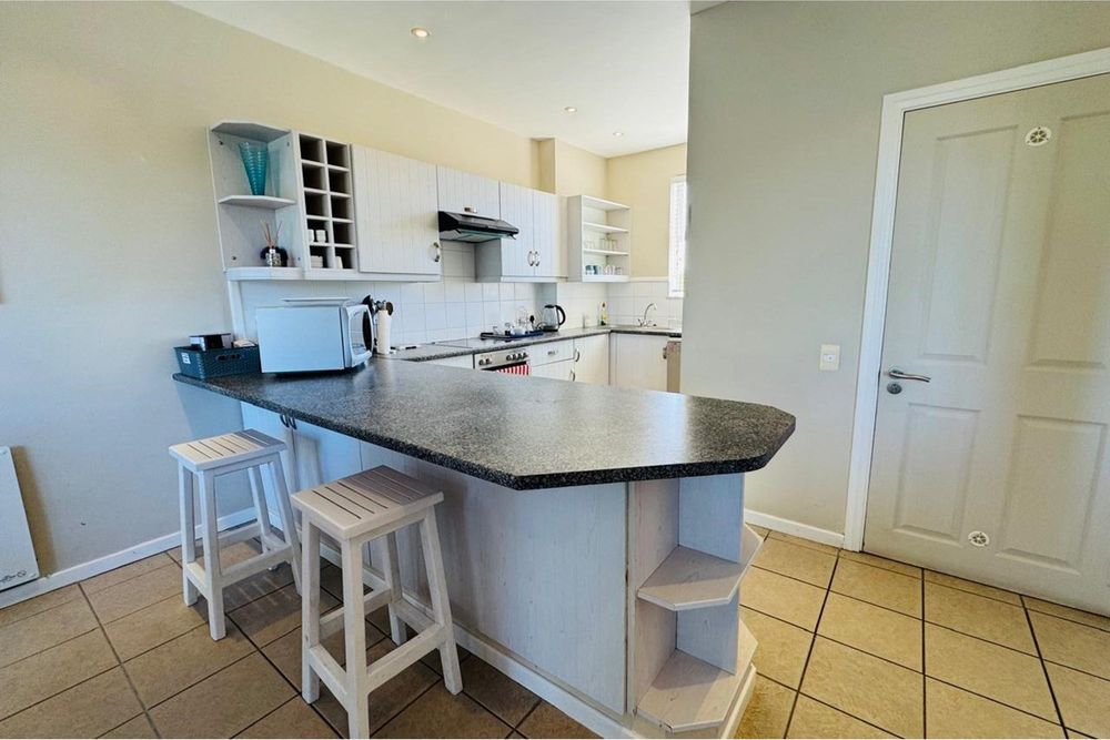 On the ground floor, you`ll find an open-plan living area that includes a spacious lounge opening onto a private patio, complete with a built-in braai and a generous lawn that leads directly to the pool. The adjoining dining area and well-appointed kitchen, equipped with a breakfast nook, under-counter oven, and hob, create a harmonious living space.