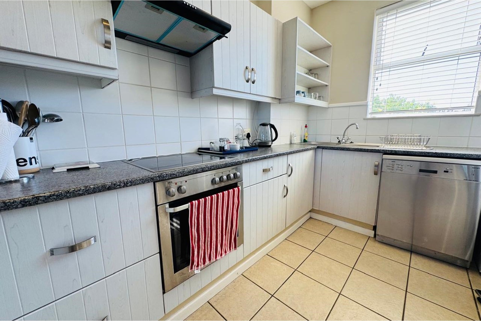 Both en-suite bedrooms are located on the first floor, featuring laminated flooring and picturesque views of the expansive communal pool and serene surroundings.
