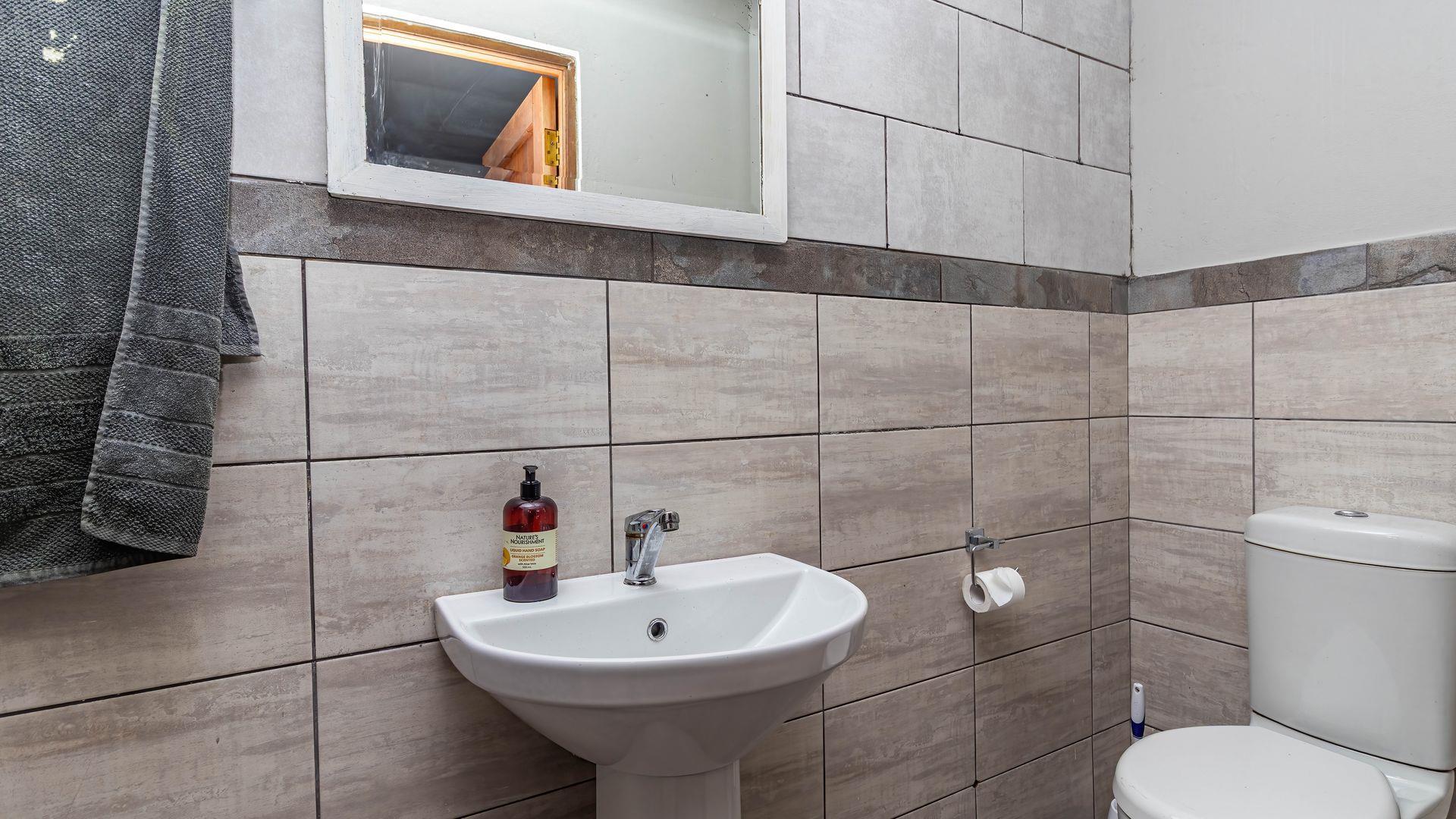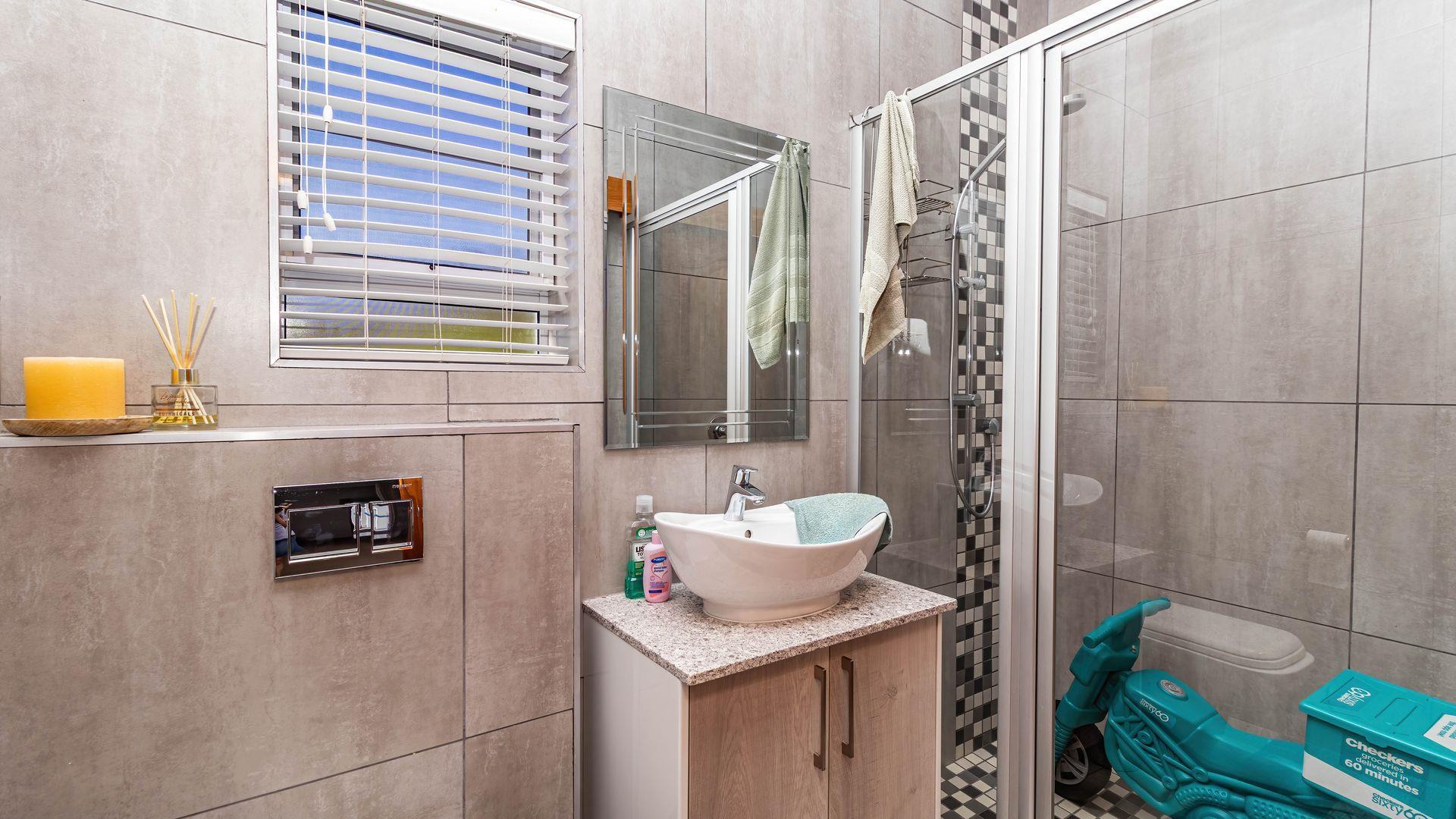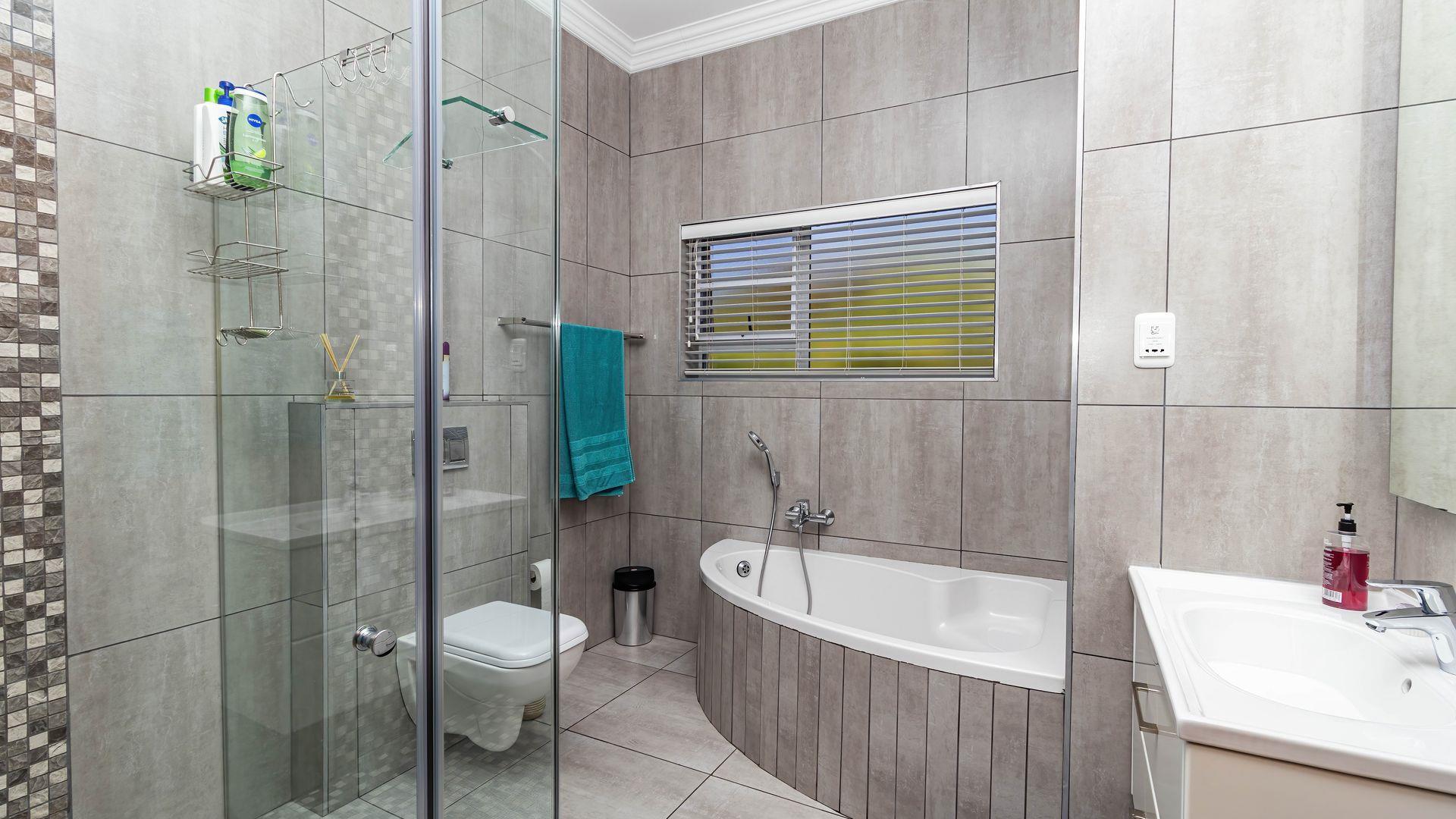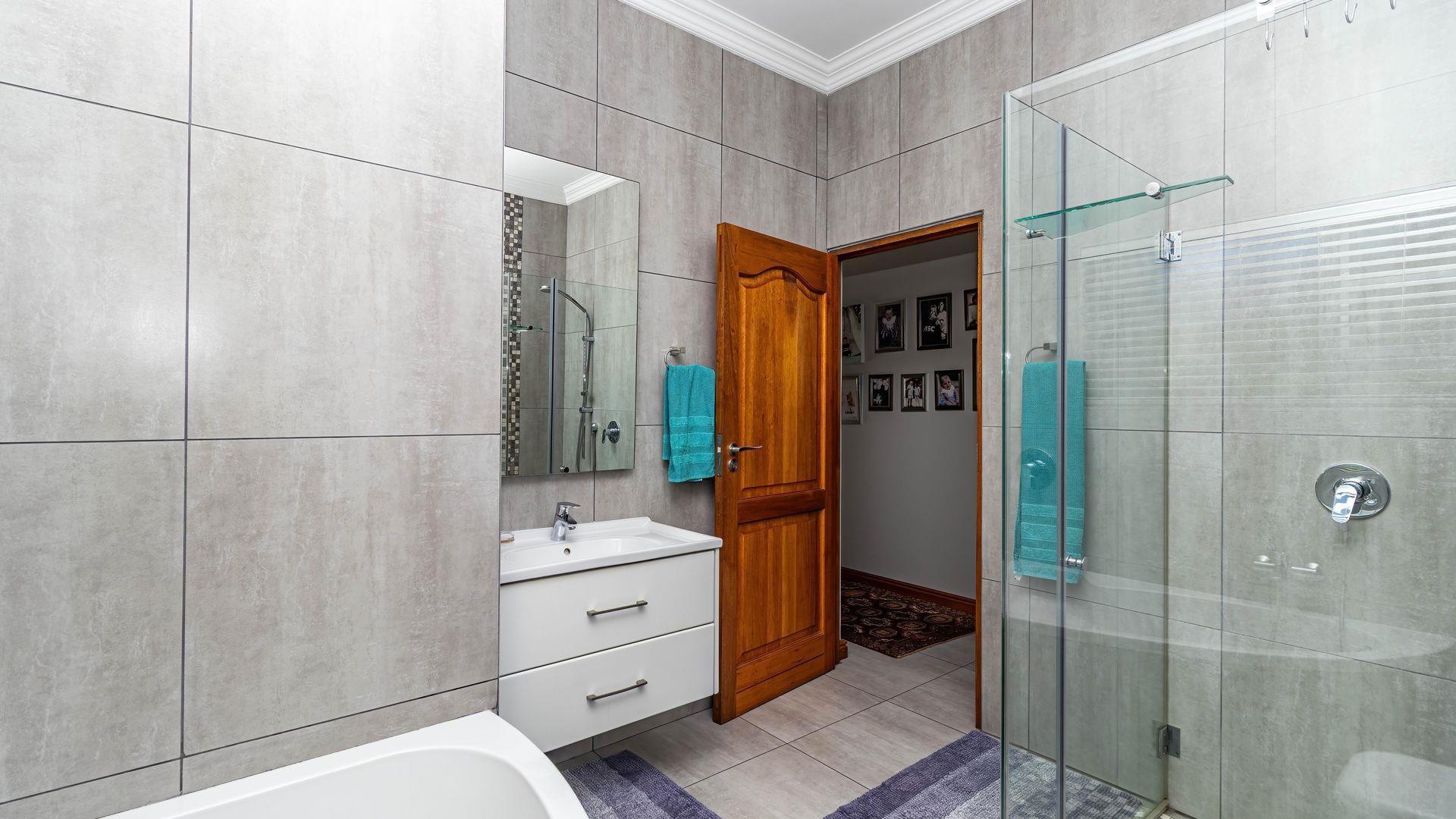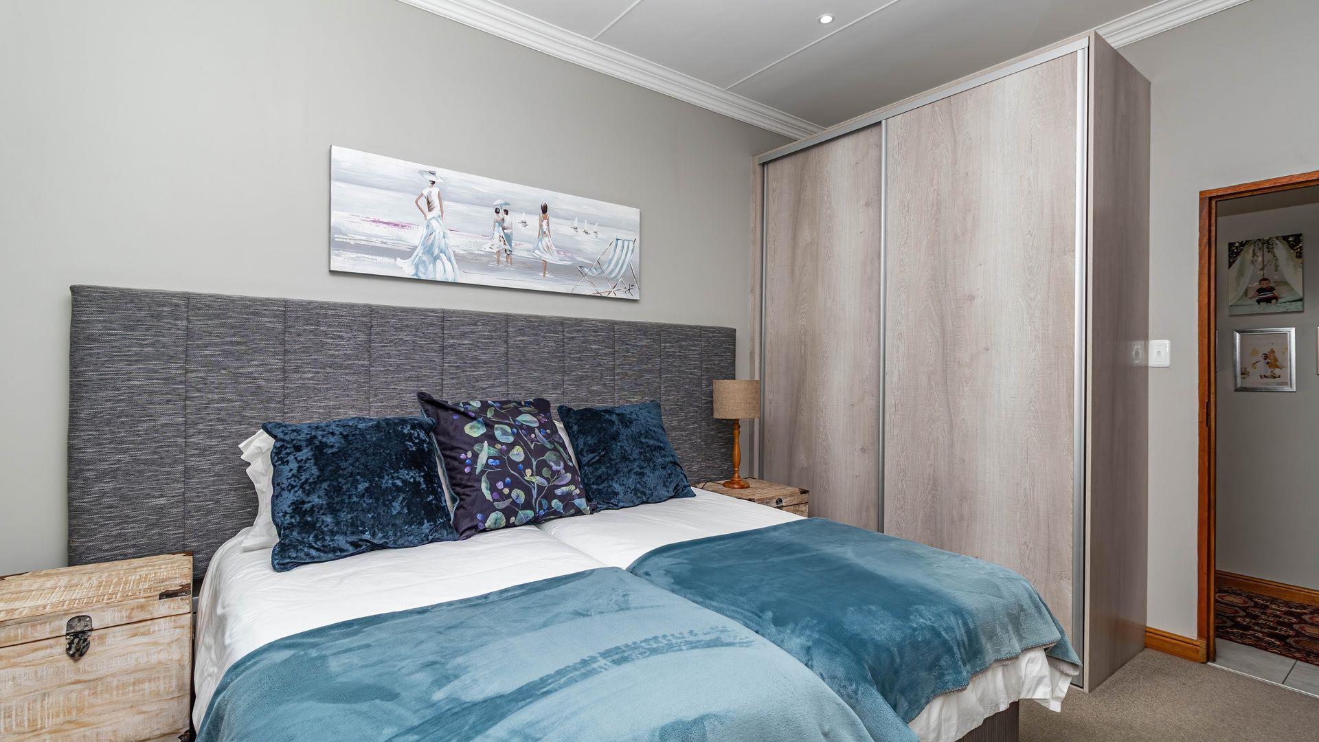 This stunning single-level home offers an open layout that surrounds a central courtyard with a pool, creating a serene flow between all living spaces. Sliding and stacking doors enhance the interior with natural light, while the indoor braai area seamlessly connects to the dining room, lounge, and an entertainment room featuring a built-in bar. Each area is adorned with generous windows that frame the picturesque surroundings. The residence boasts four bedrooms, each with direct outdoor access, including two with en-suite bathrooms. The main bedroom and lounge are equipped with air-conditioning, and the property benefits from a full solar system. Ample garaging and organized storage areas complete this thoughtfully designed home.