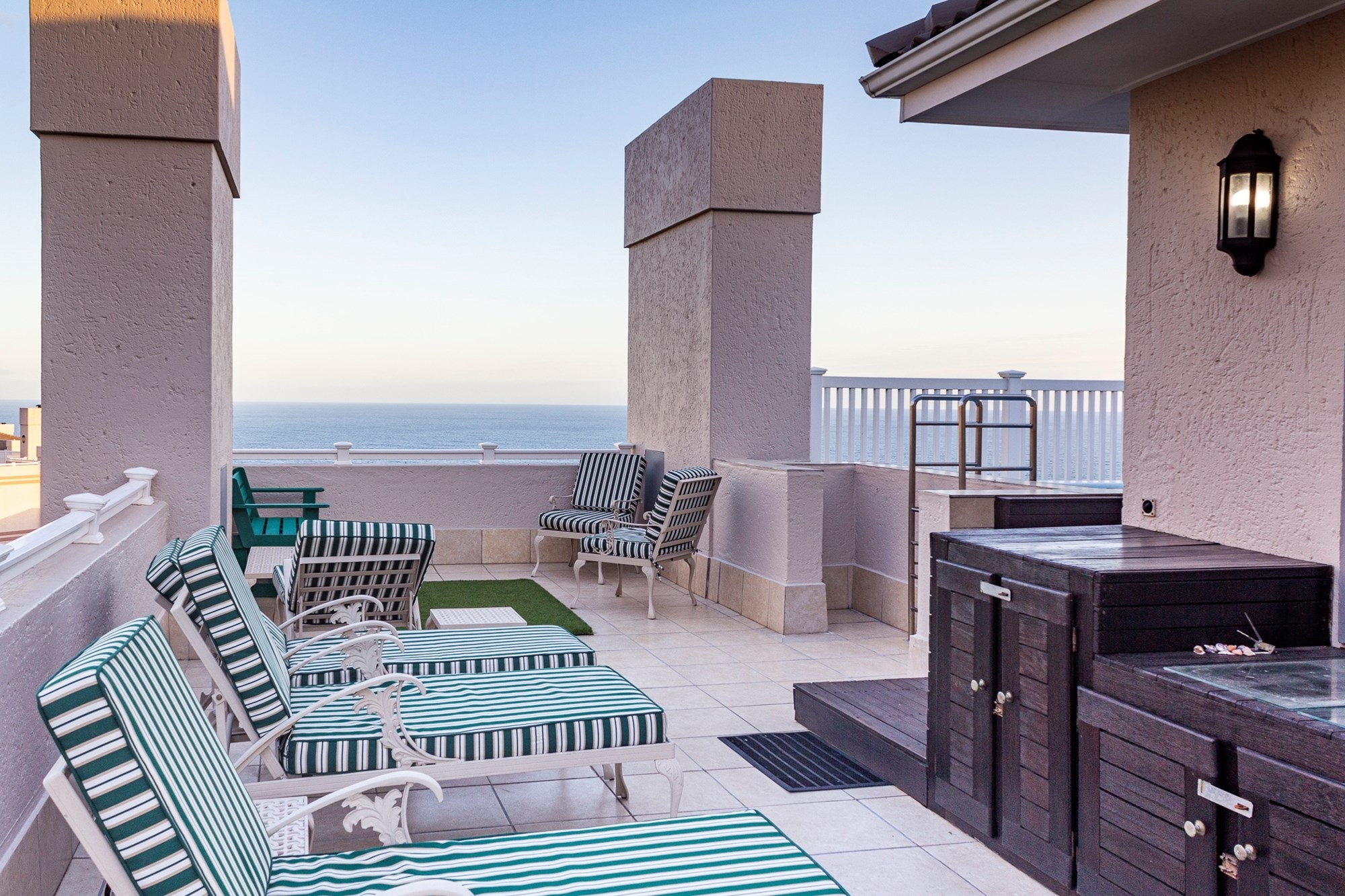 The open-plan kitchen and living area create a seamless flow for both everyday living and entertaining, while large windows frame stunning ocean views. Step out and relax in your private jacuzzi, perfectly positioned to enjoy breathtaking sea vistas.