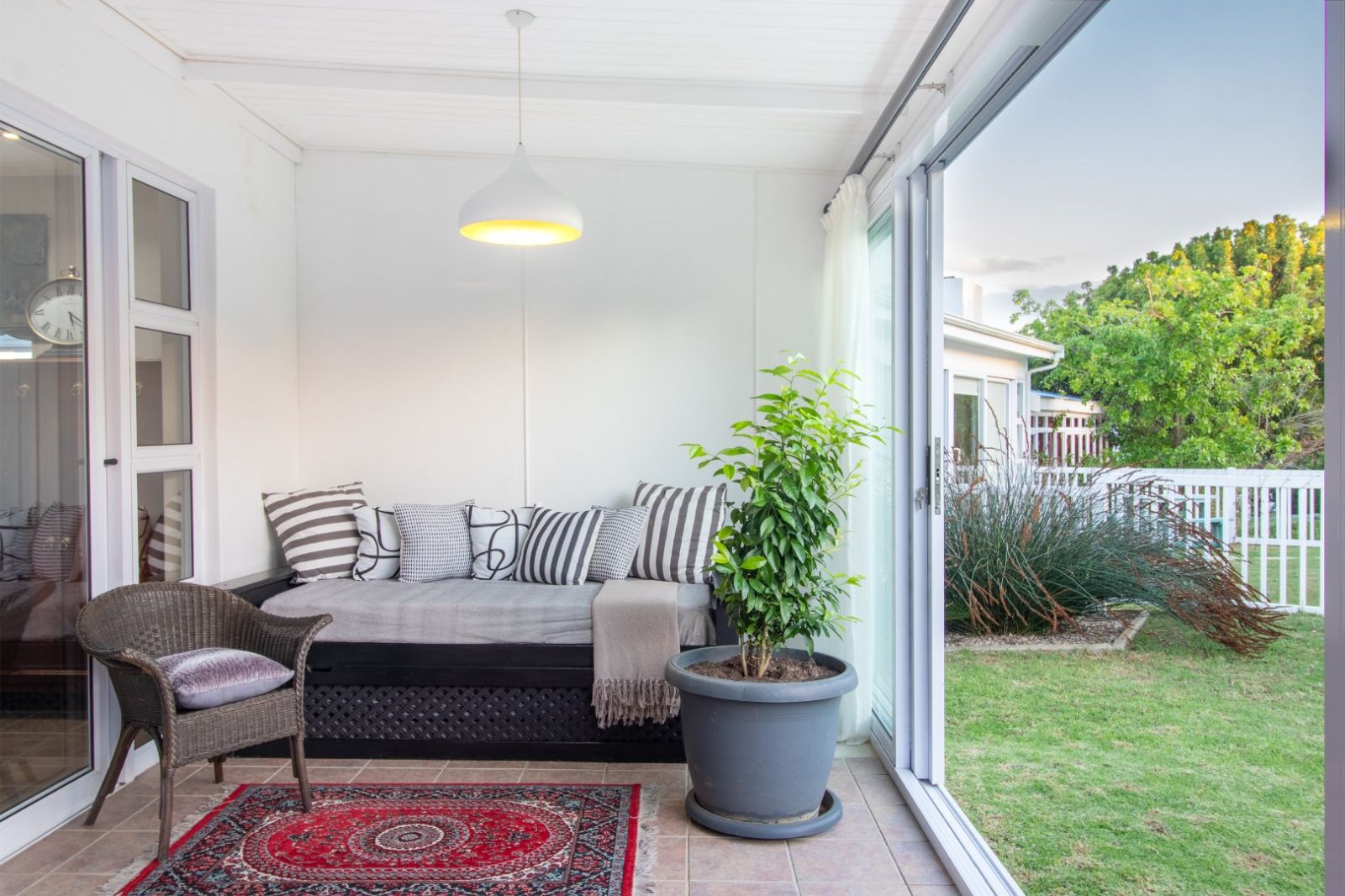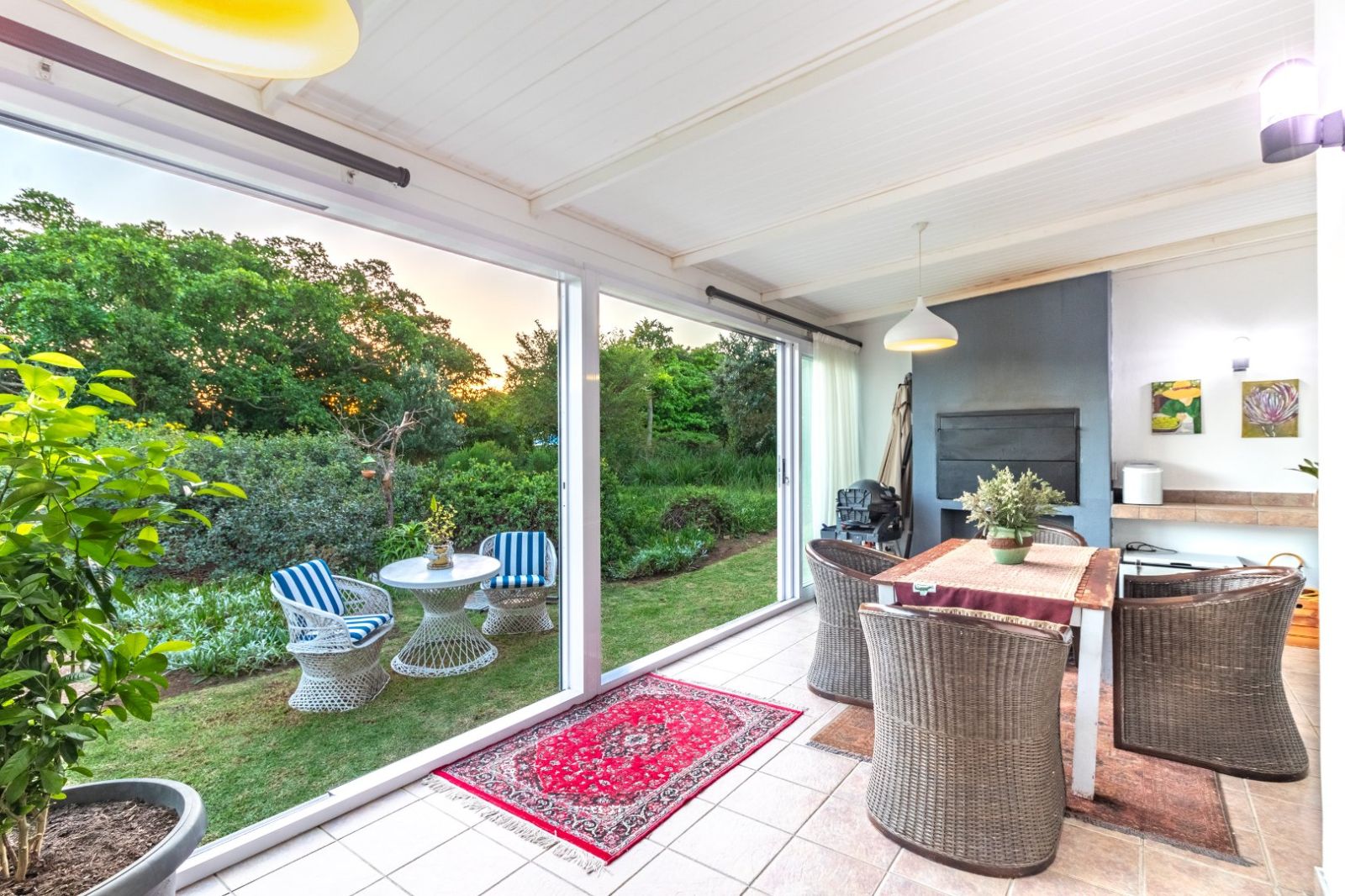 Featuring three spacious bedrooms with en-suite bathrooms, a cozy lounge with fireplace, and an enclosed patio turned extra living space — perfect for entertaining with a built-in braai. A sparkling communal pool is just a short stroll away.