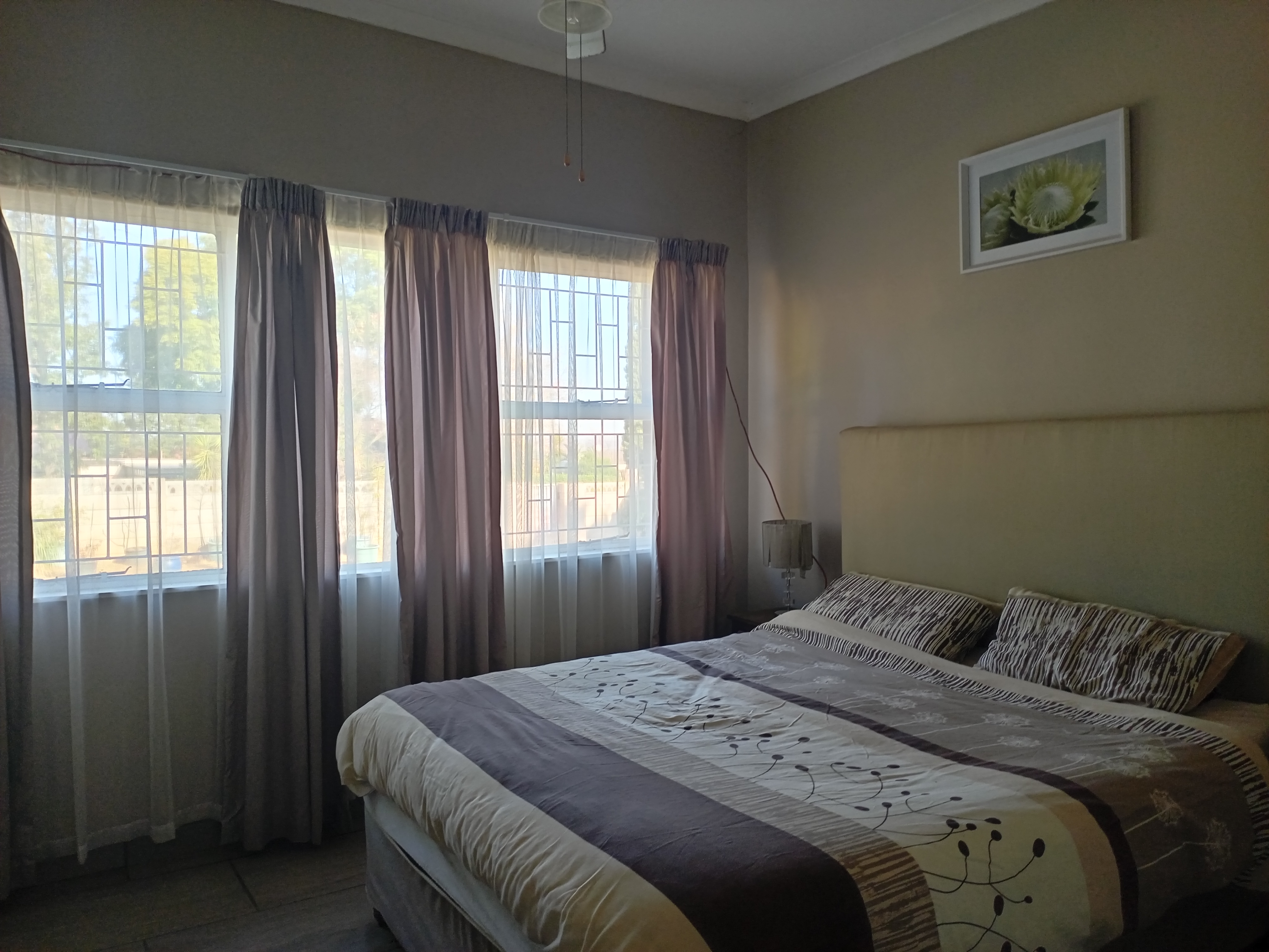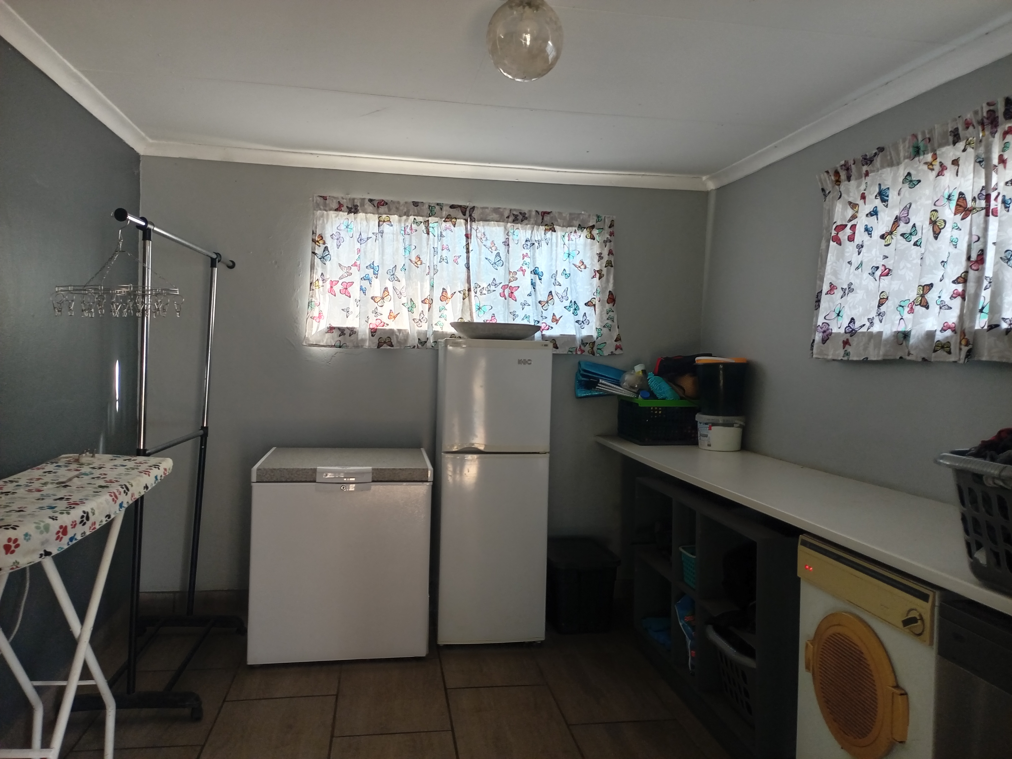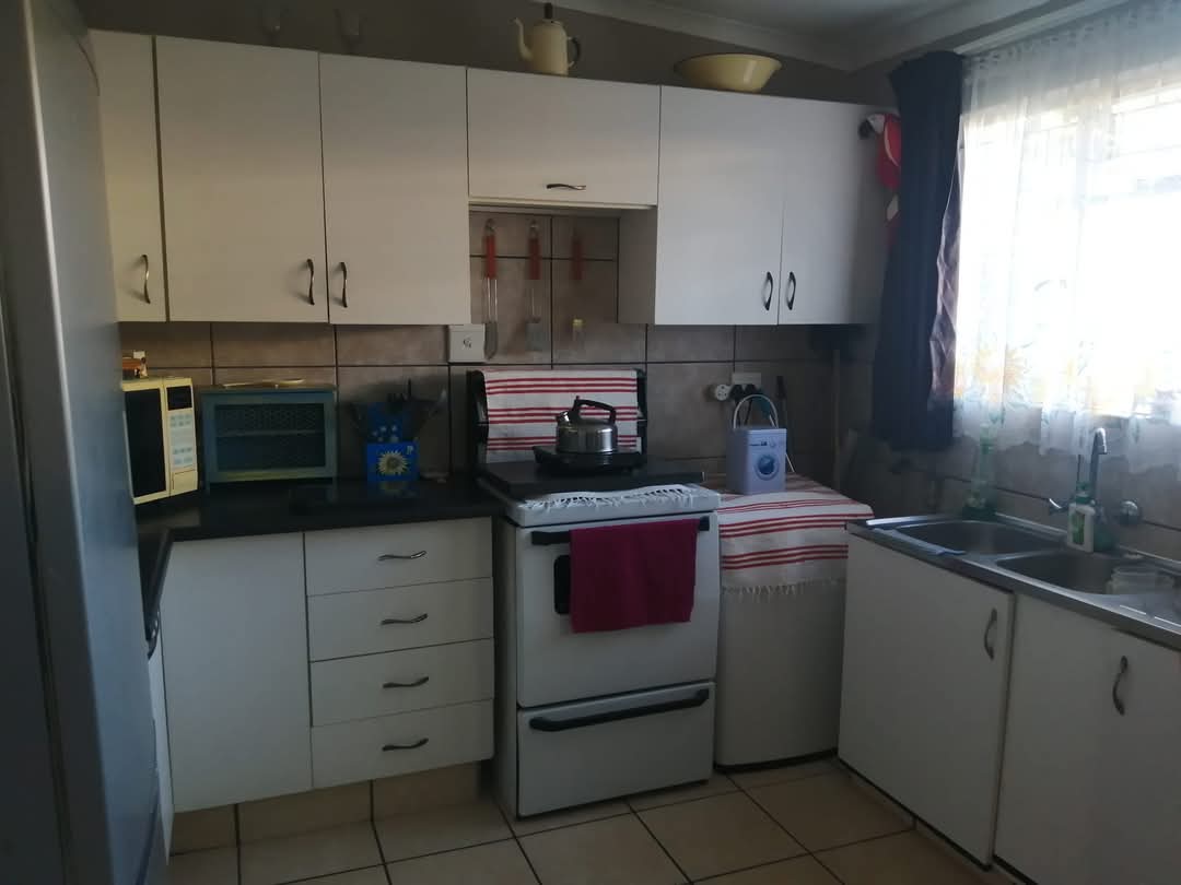 The Granny Flat features an open-plan kitchen and dining/living area, along with a spacious bedroom that includes built-in cupboards and an en-suite bathroom with a bath, shower, basin, and toilet. This flat is also fully tiled and offers prepaid electricity, with potential rental income of R4000.00.