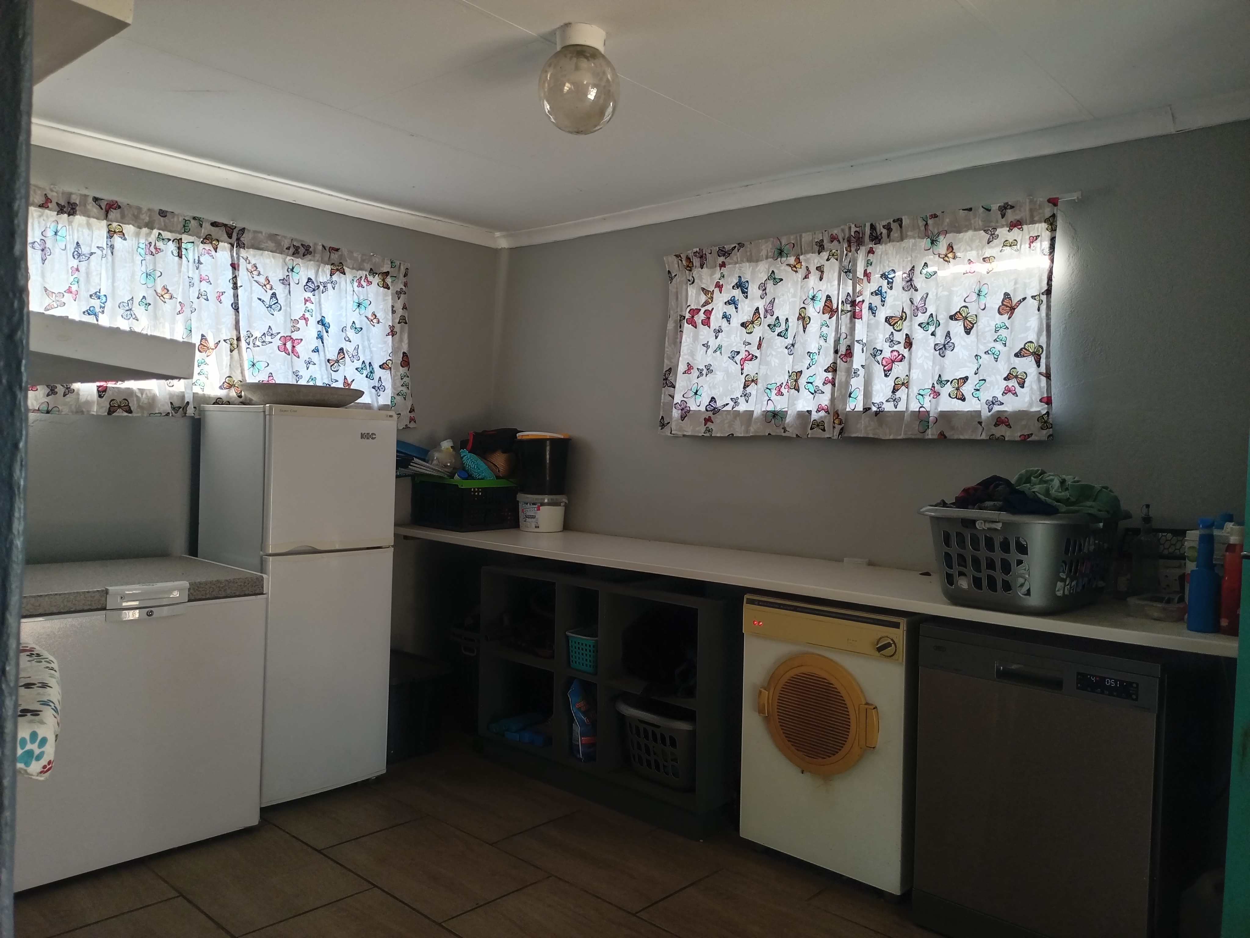 The kitchen is a spacious delight, offering plenty of storage options and seamlessly connecting to a laundry area for added convenience.