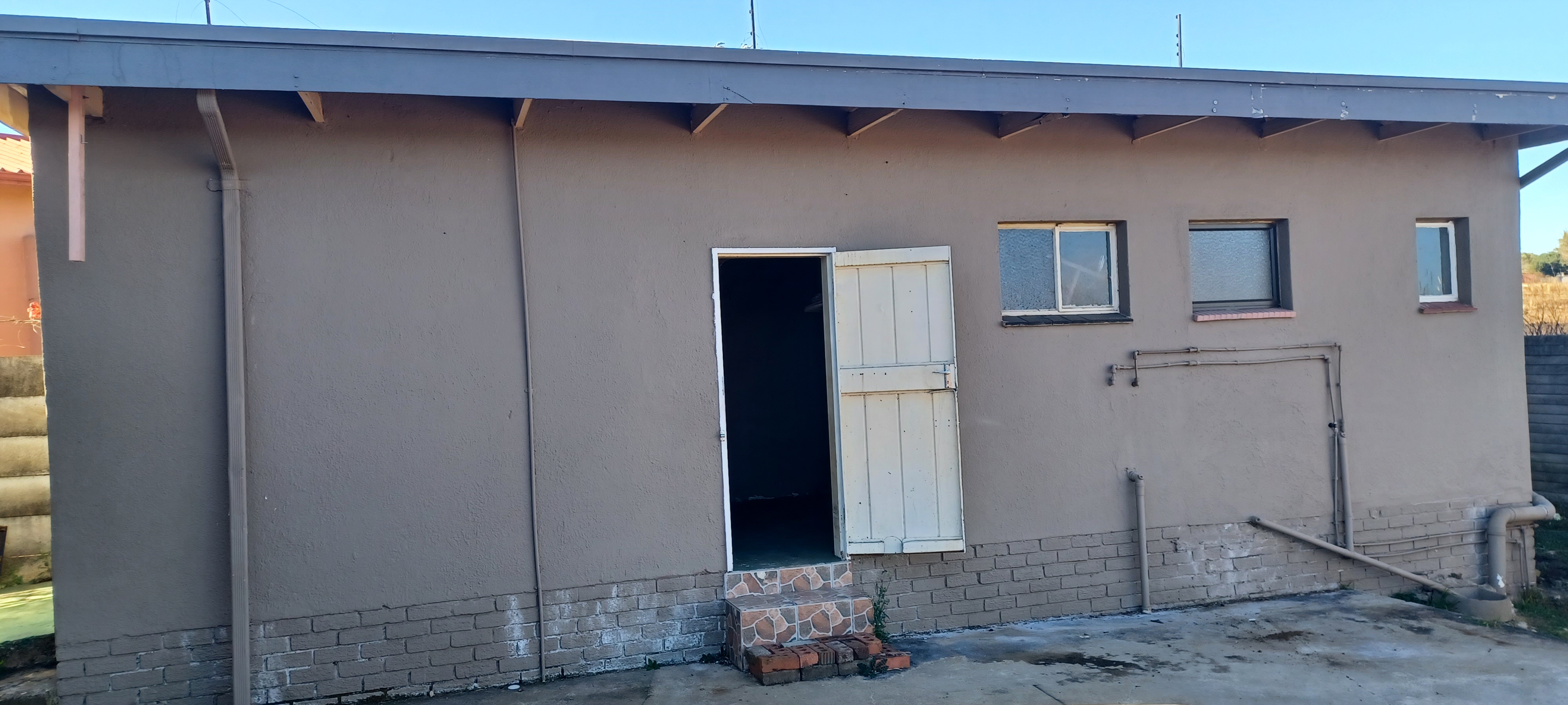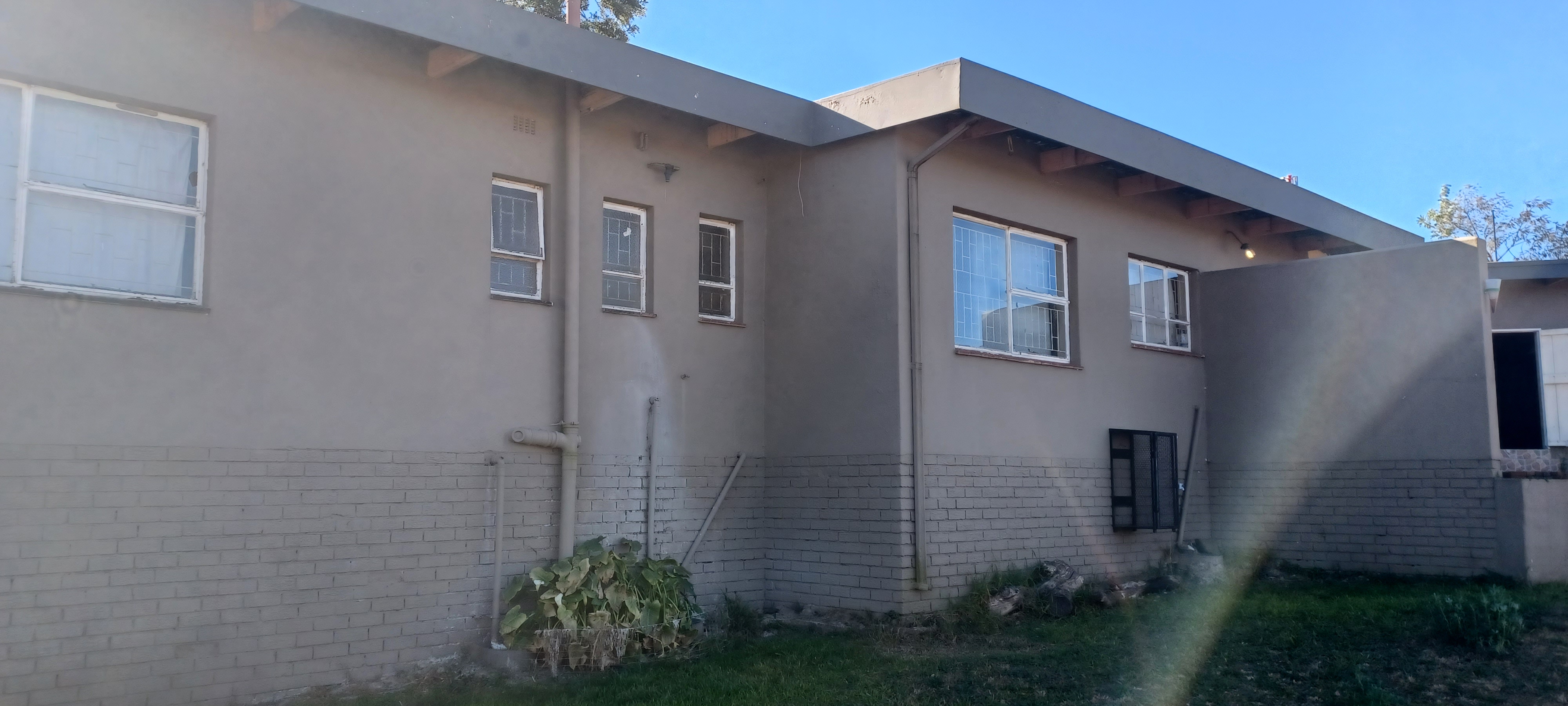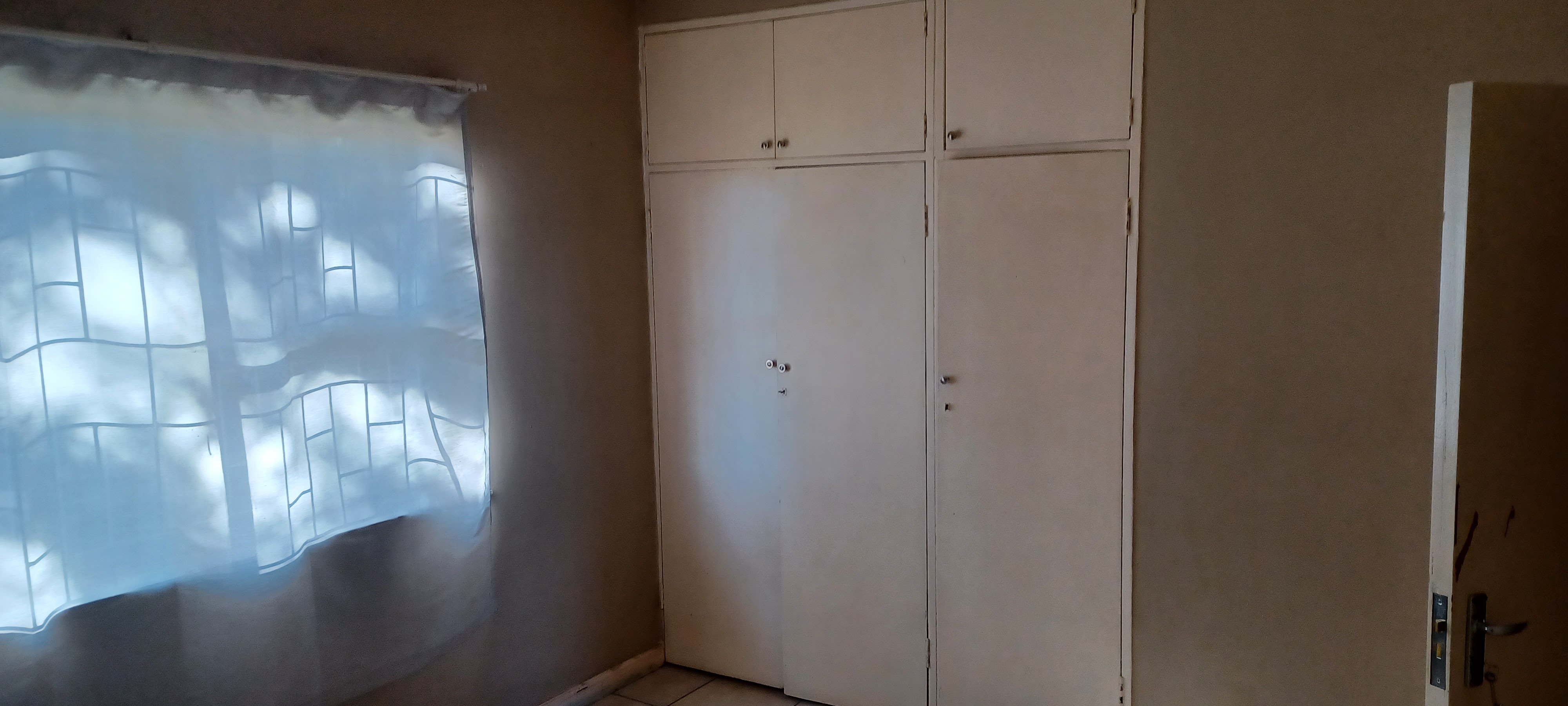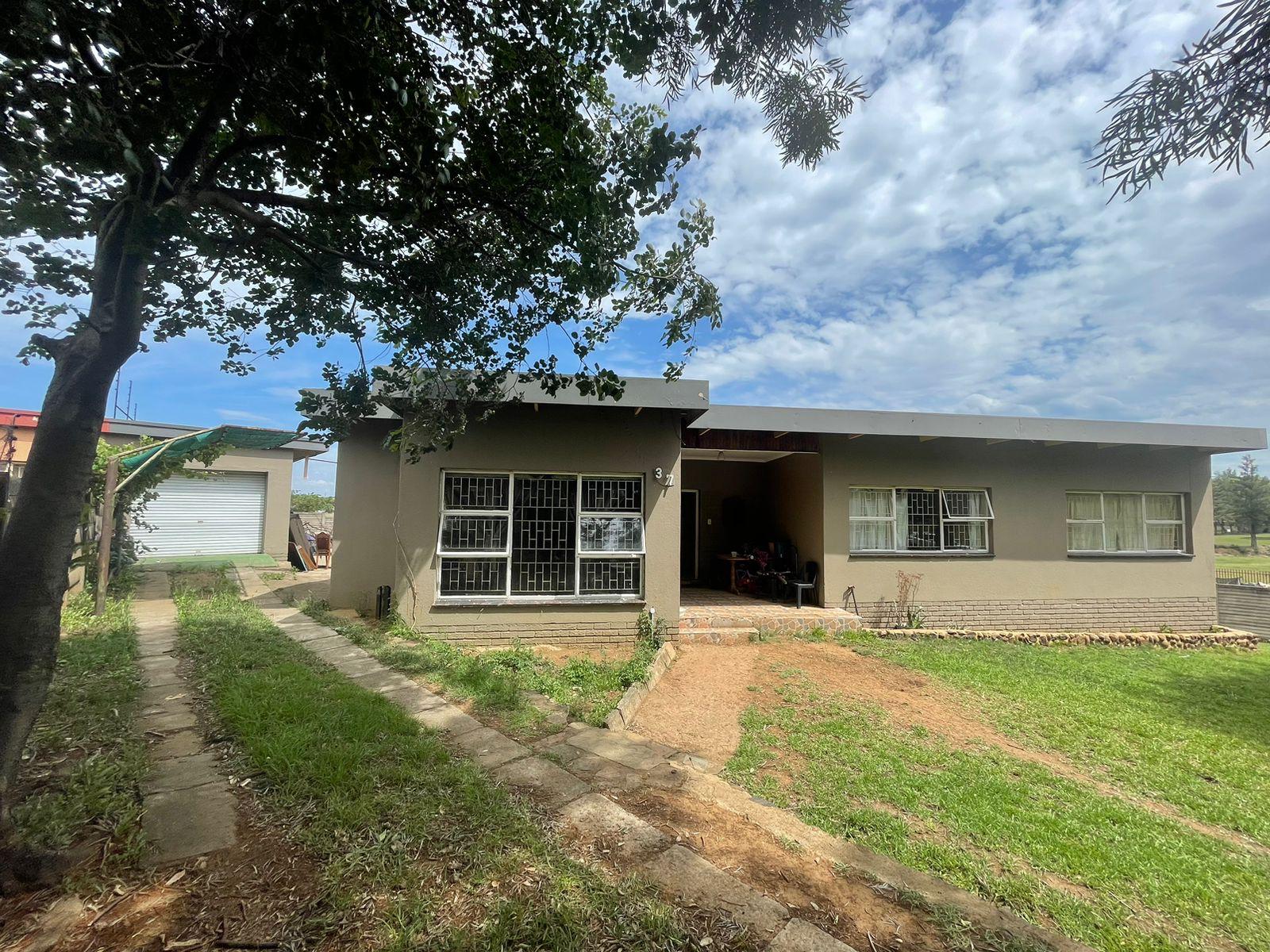 The property features a one-car garage with servant's quarters at the rear. Inside, the house is fully tiled and boasts a spacious lounge-dining area. It includes a modest kitchen, four bedrooms with built-in cupboards, and two bathrooms.