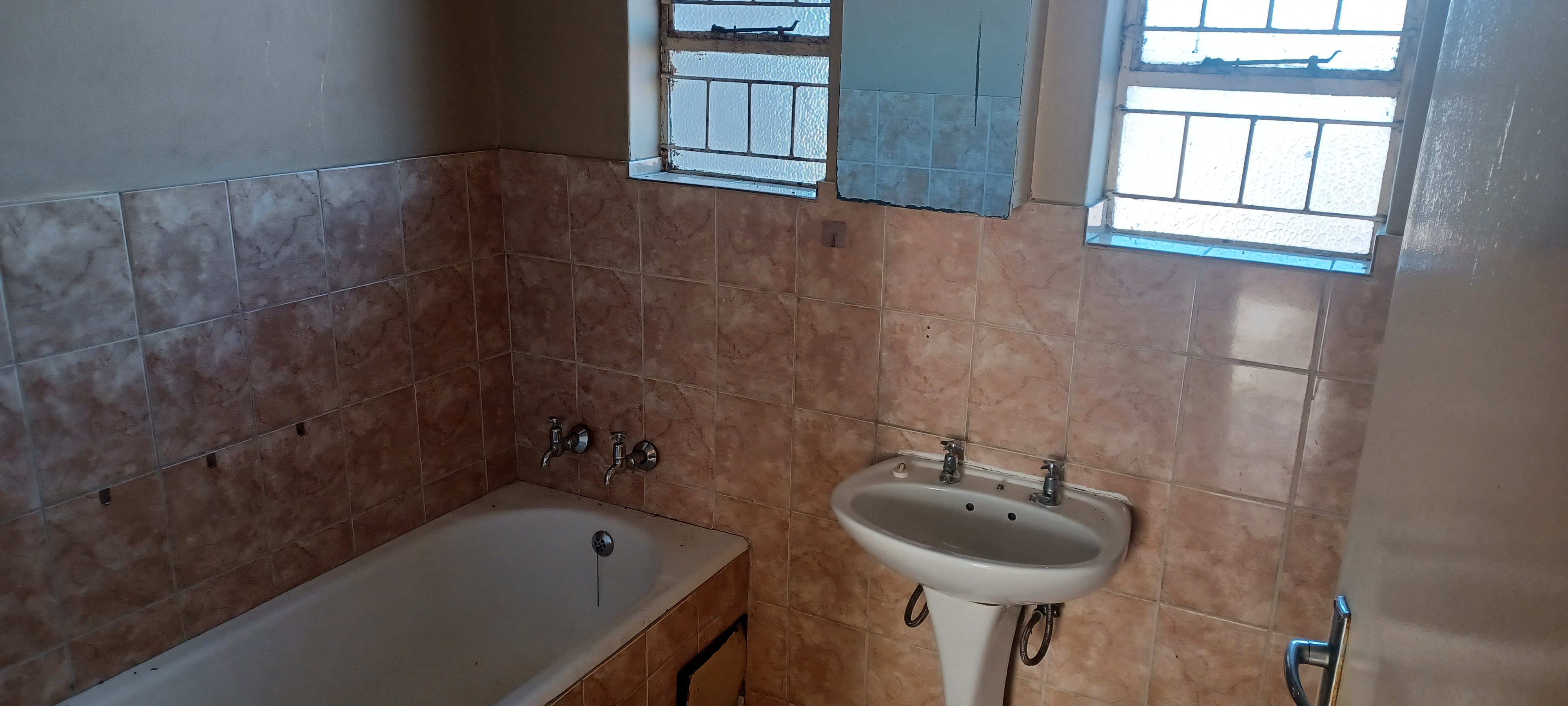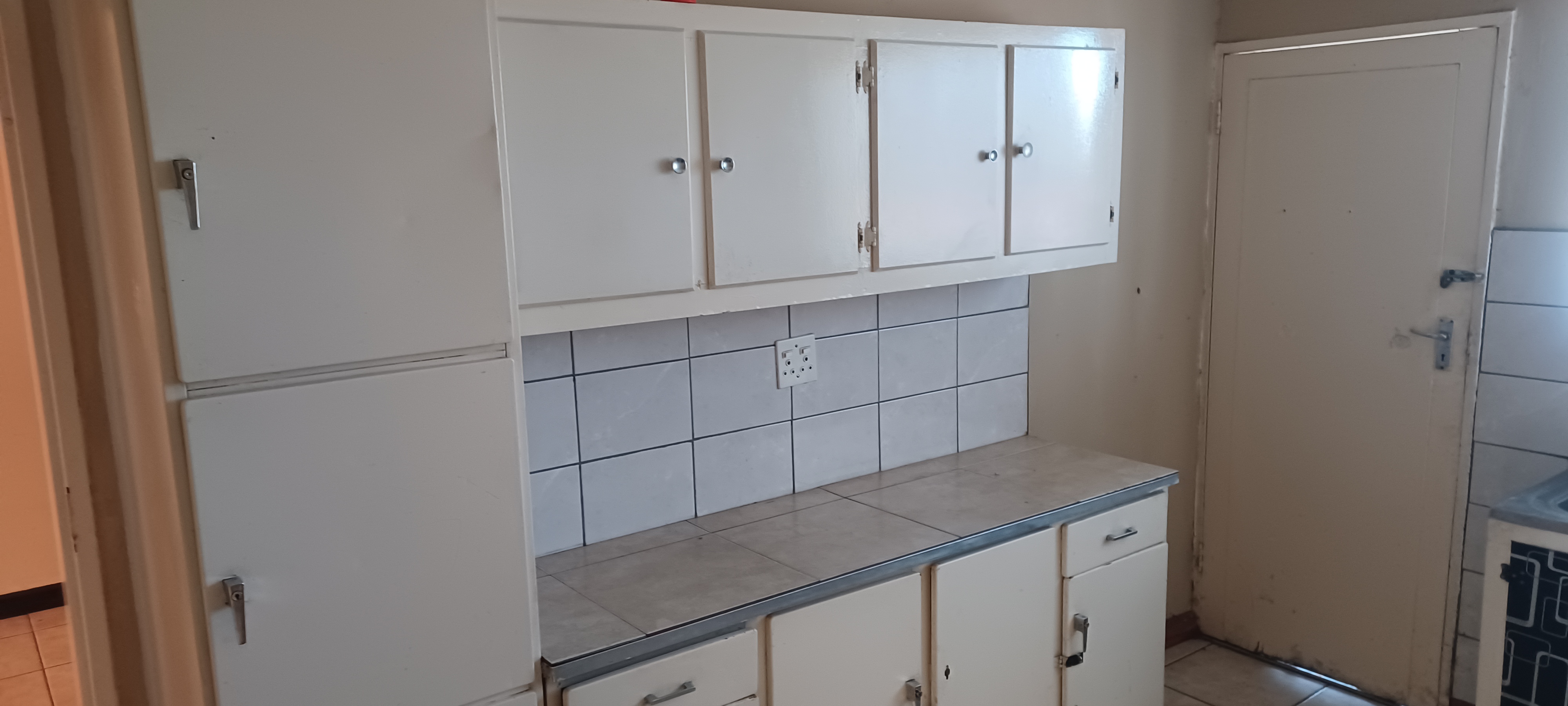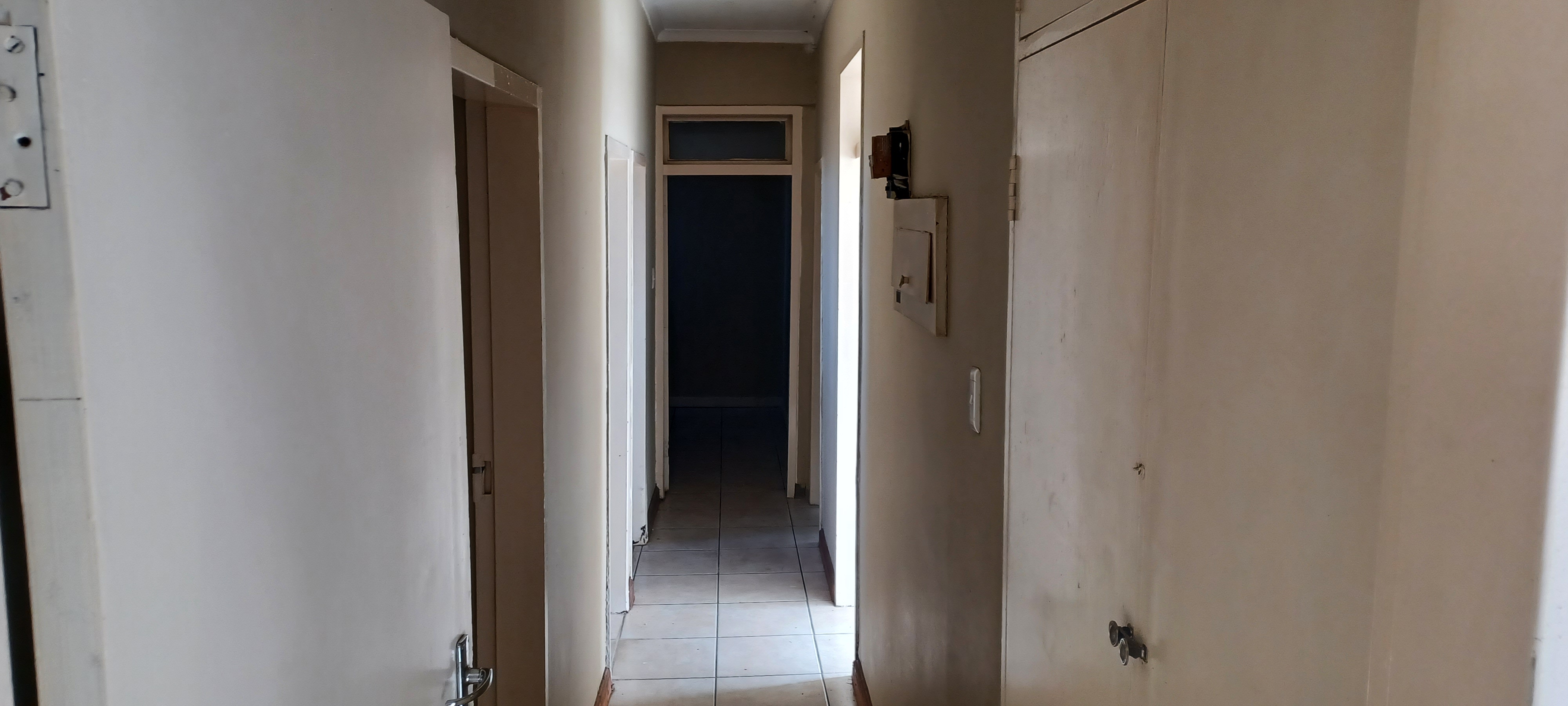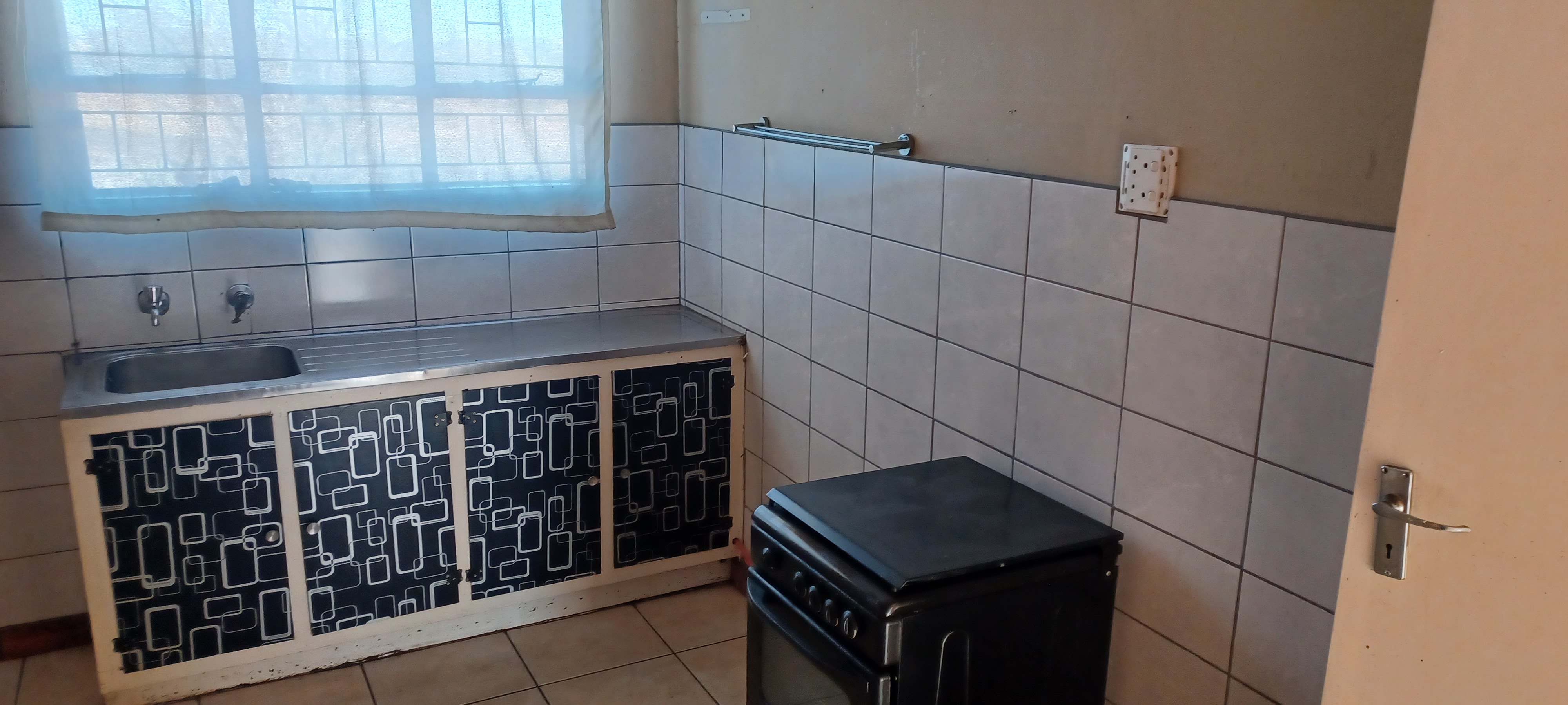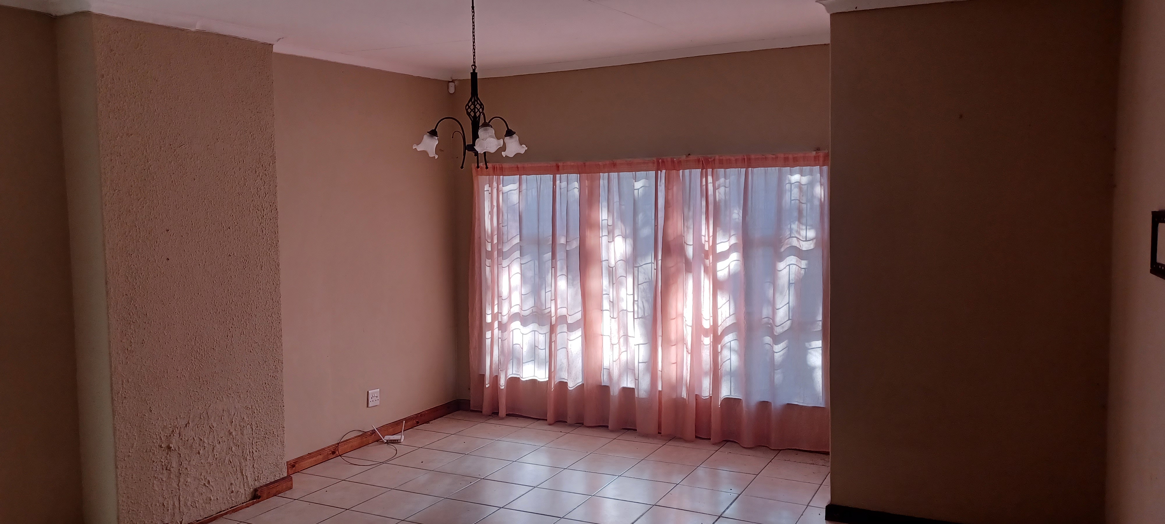 The property features a one-car garage with servant's quarters at the rear. Inside, the house is fully tiled and boasts a spacious lounge-dining area. It includes a modest kitchen, four bedrooms with built-in cupboards, and two bathrooms.
