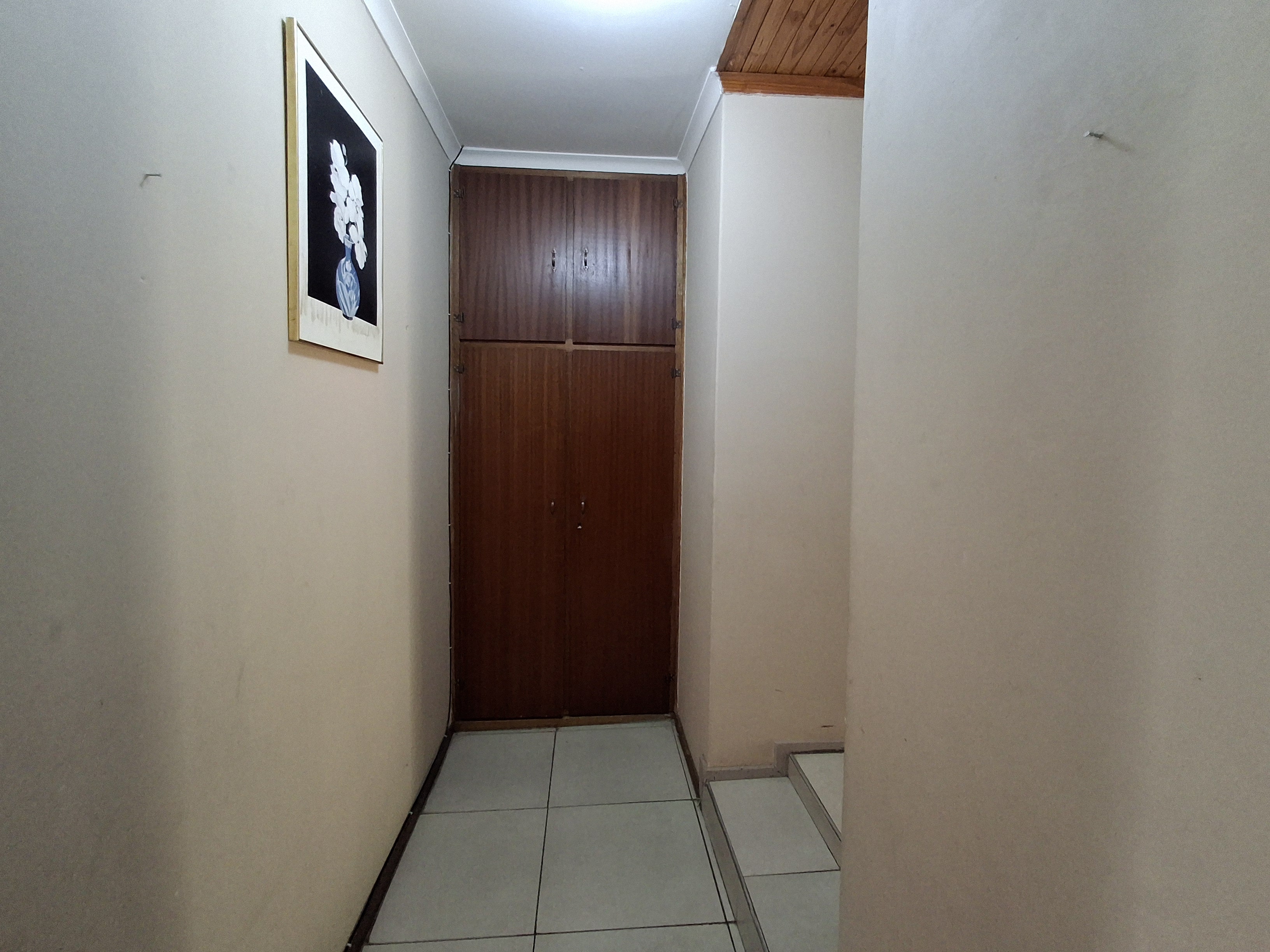 The home boasts four well-sized bedrooms, complemented by two bathrooms, including a primary suite with a walk-in closet and en-suite bathroom. Additional storage is abundant, with built-in cupboards lining the passage. The entire house is elegantly tiled for easy maintenance.